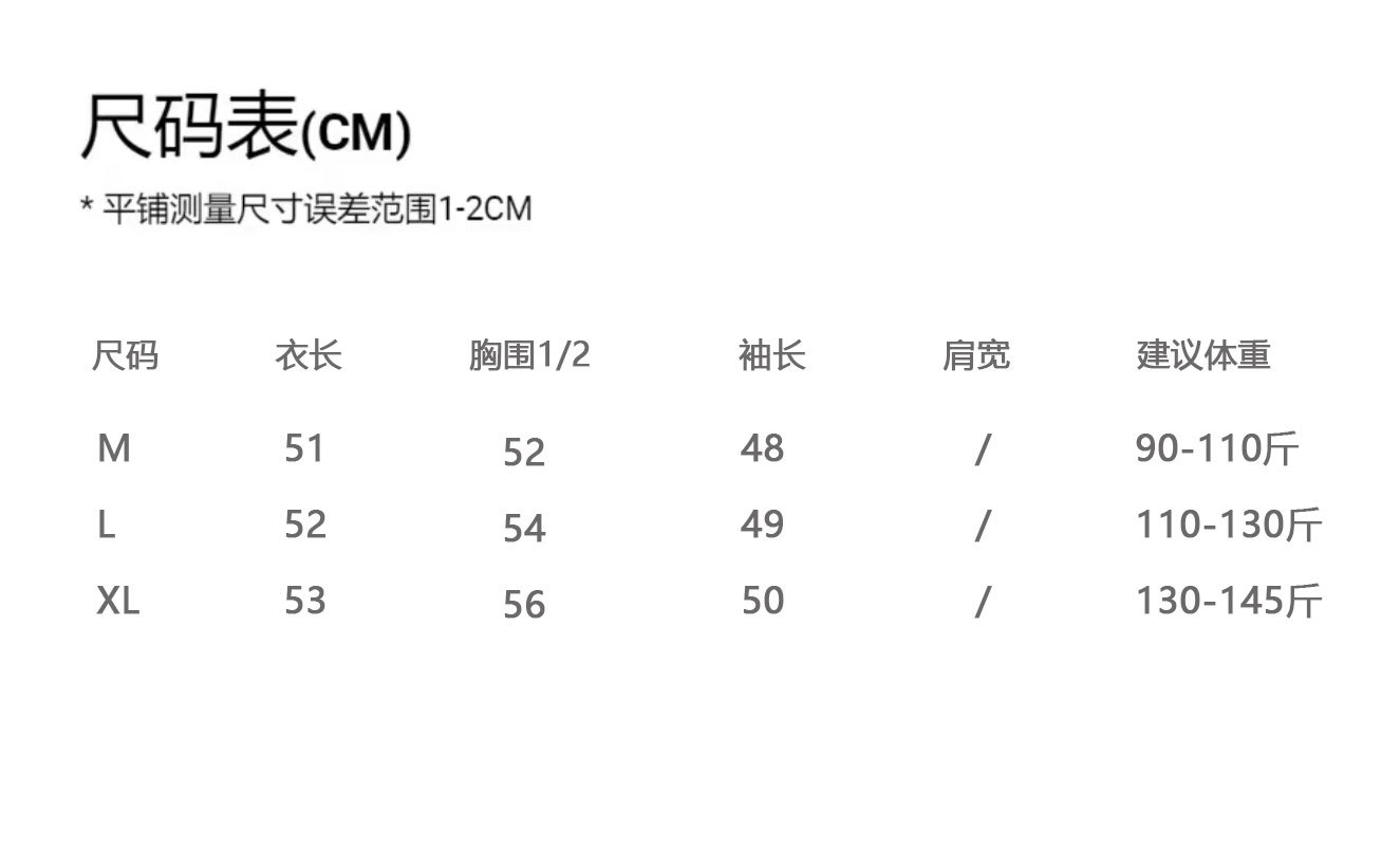 码数:M(建议90-110斤),L(建议110-130斤),XL(建议130-145斤)
