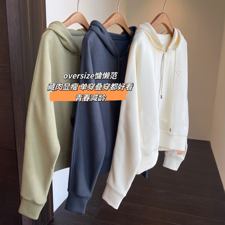 【高品质五明治空气层连帽卫衣】宽松韩版拉链开衫 减龄连帽卫衣 简约百搭