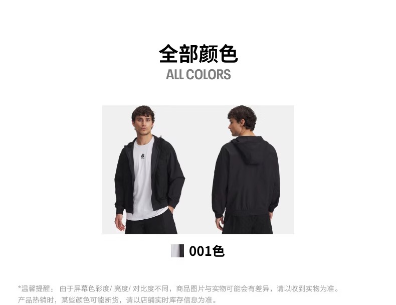 【12.13圣诞专享礼遇】安德玛UA男士CURRY系列休闲宽松健身运动外套1390353-110