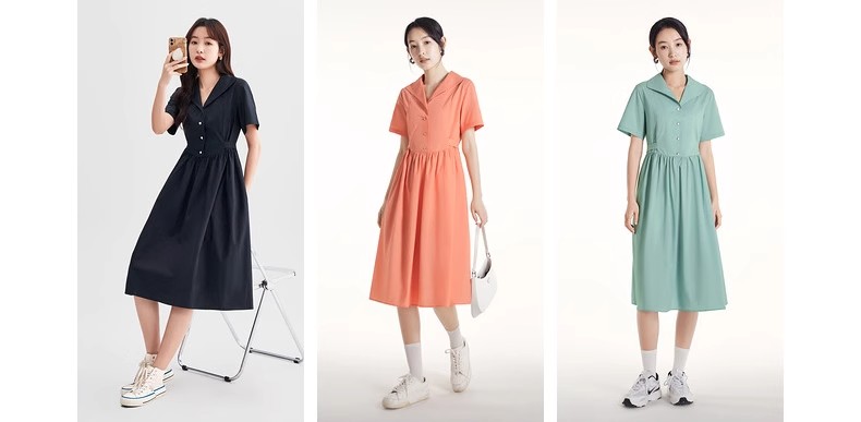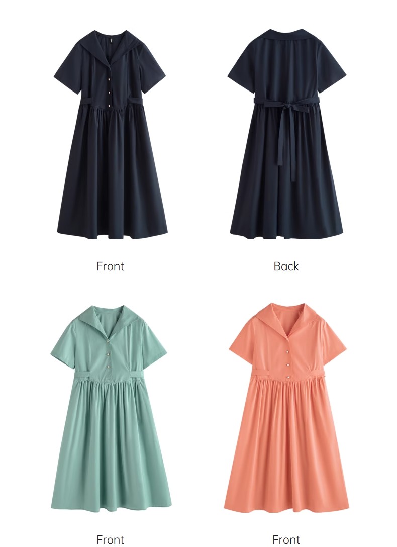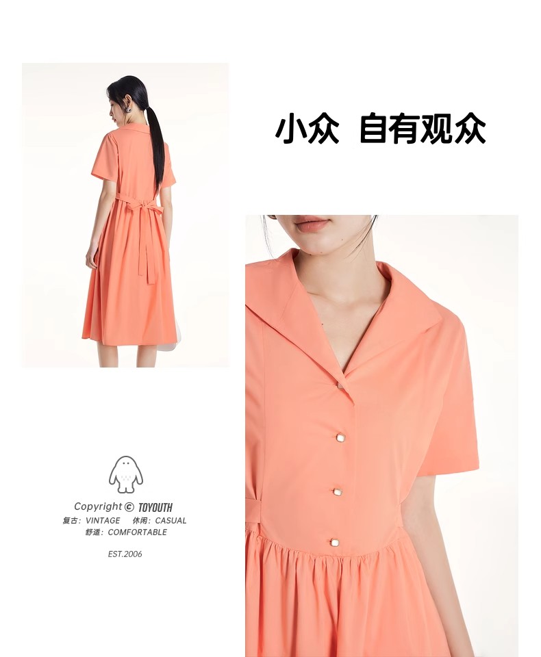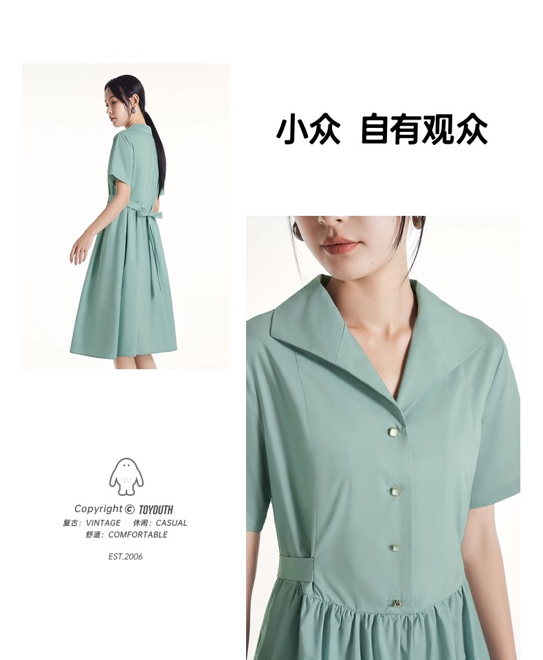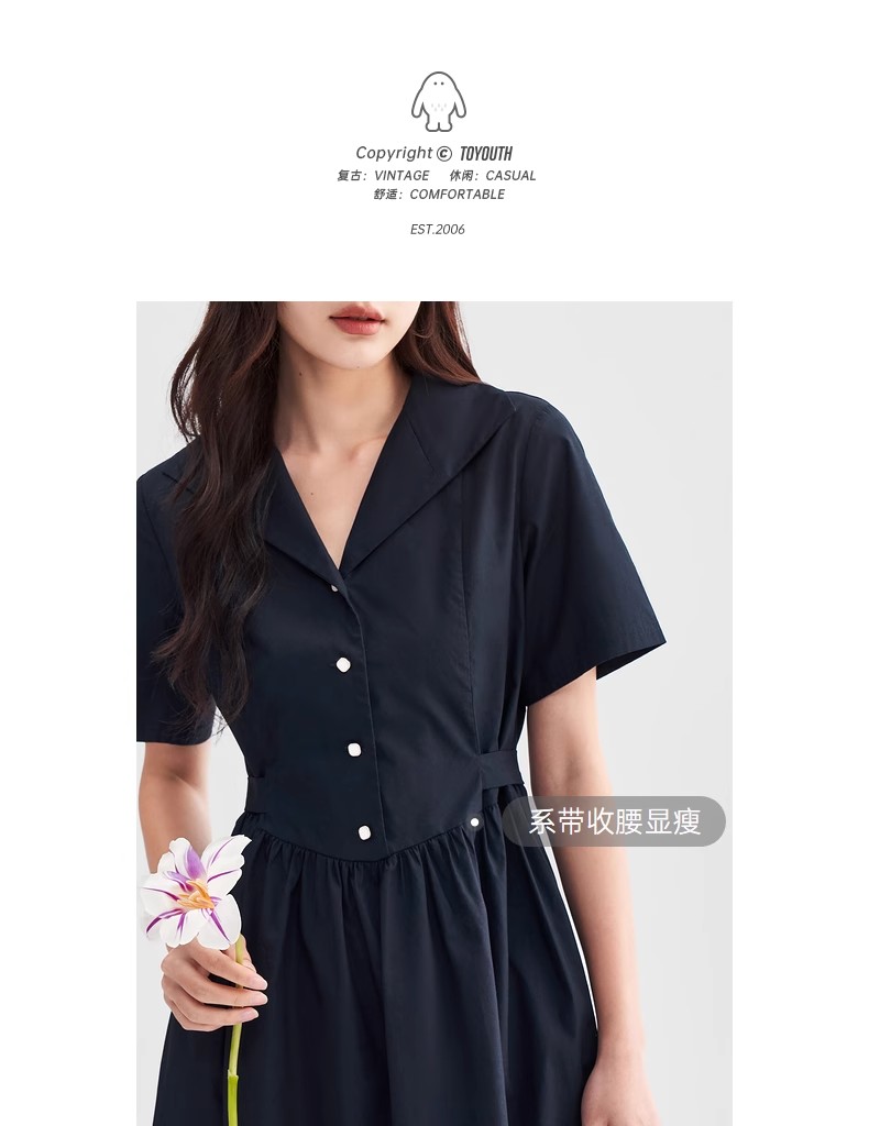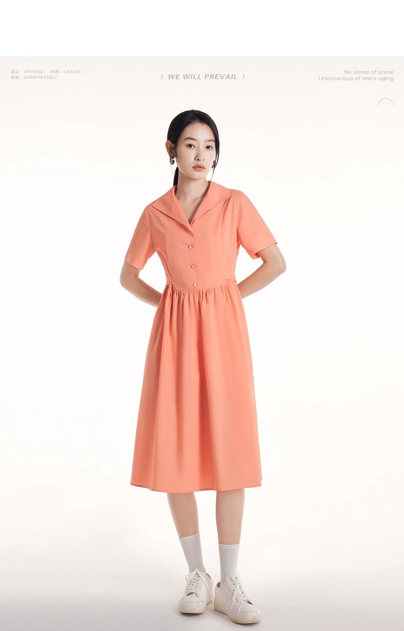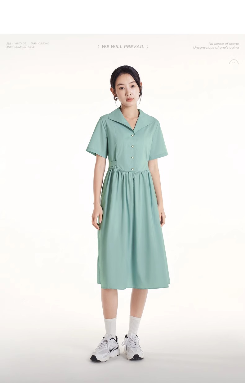 初语法式休闲气质连衣裙女2025夏季新款收腰显瘦通勤短袖衬衫长裙