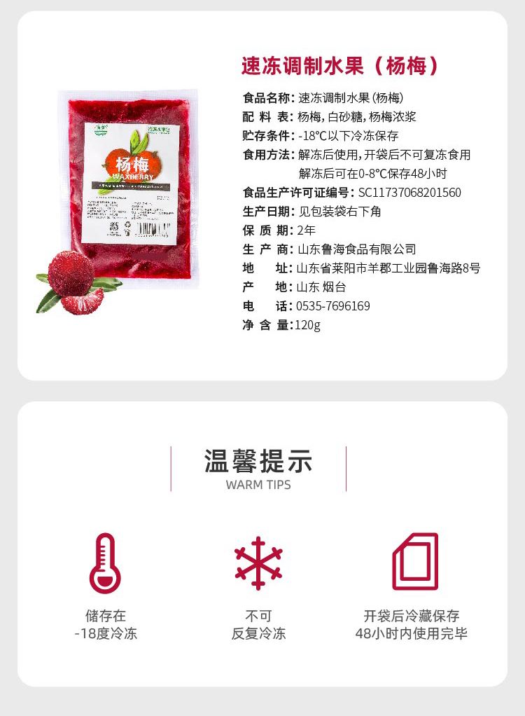 鲁海 速冻调制水果包 杨梅口味120g/袋 60袋/箱