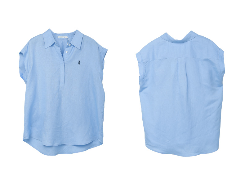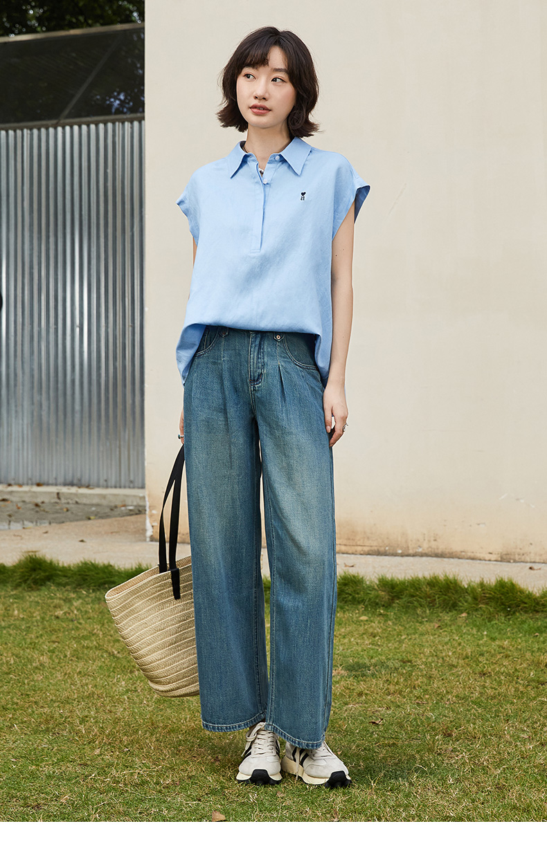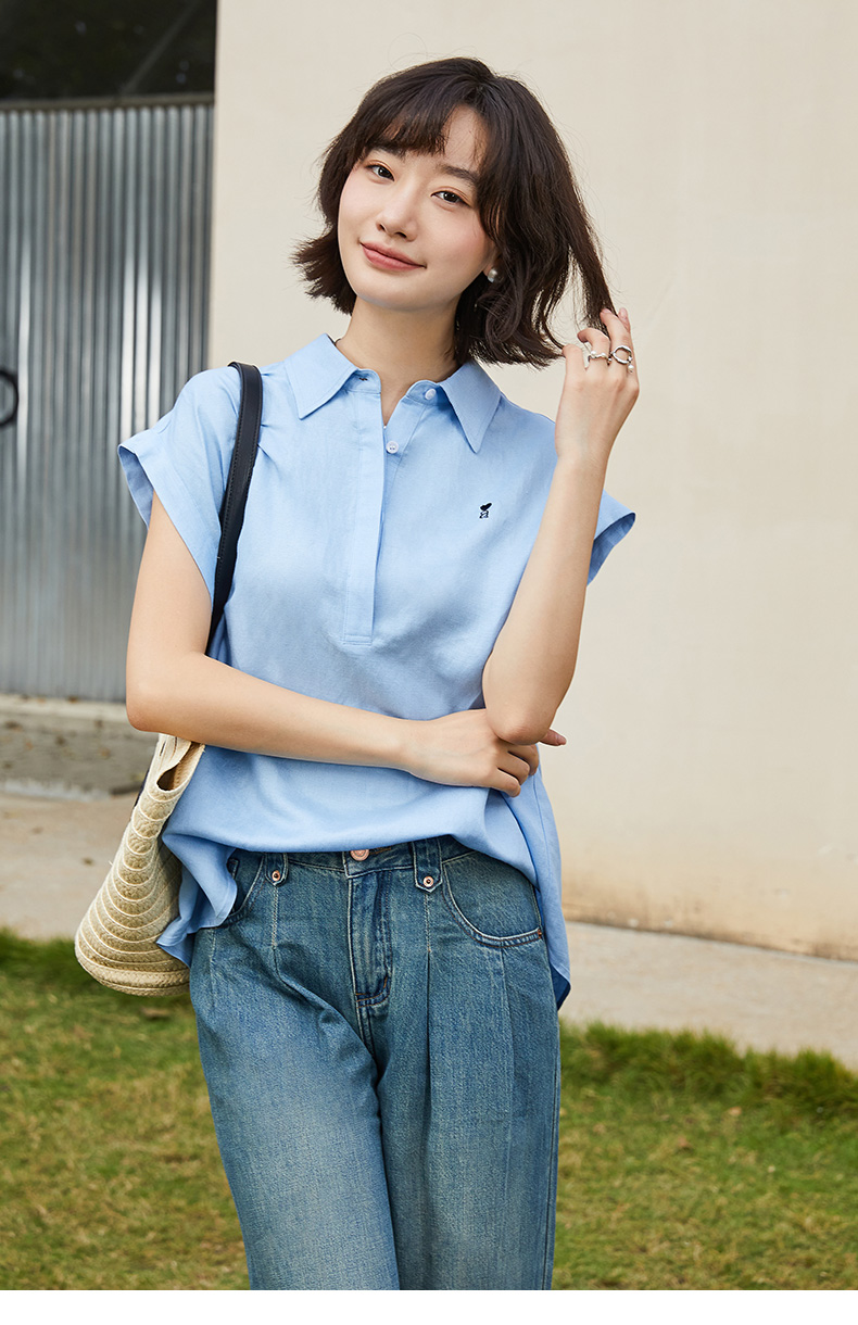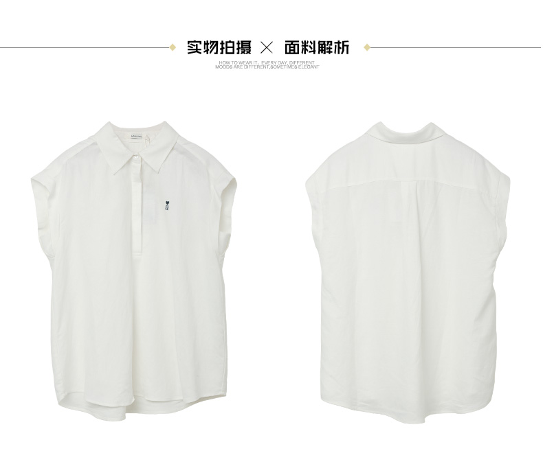 松弛感拉满!米白色爱心刺绣翻领半开襟小飞袖衬衫 夏季通勤百搭显瘦无袖上衣