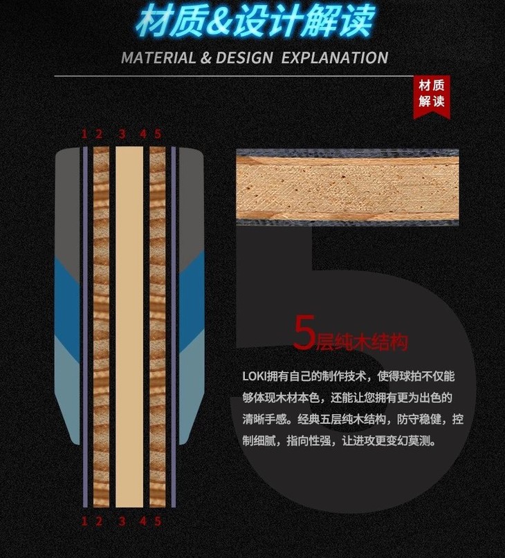 LOKI雷神王皓经典版五层纯木乒乓底板