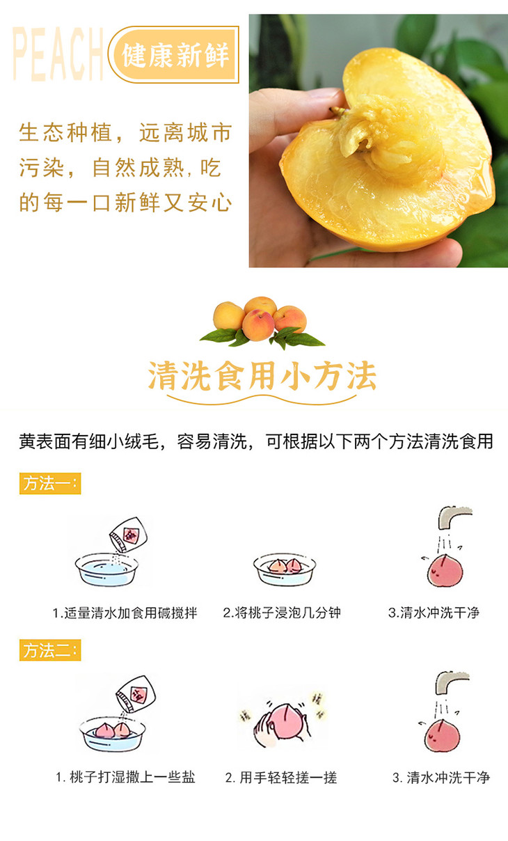 2.黄桃表皮带有微软的短绒毛,可清洗后直接食用或去皮食用