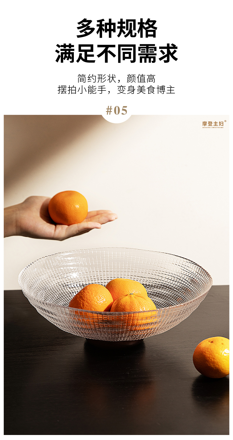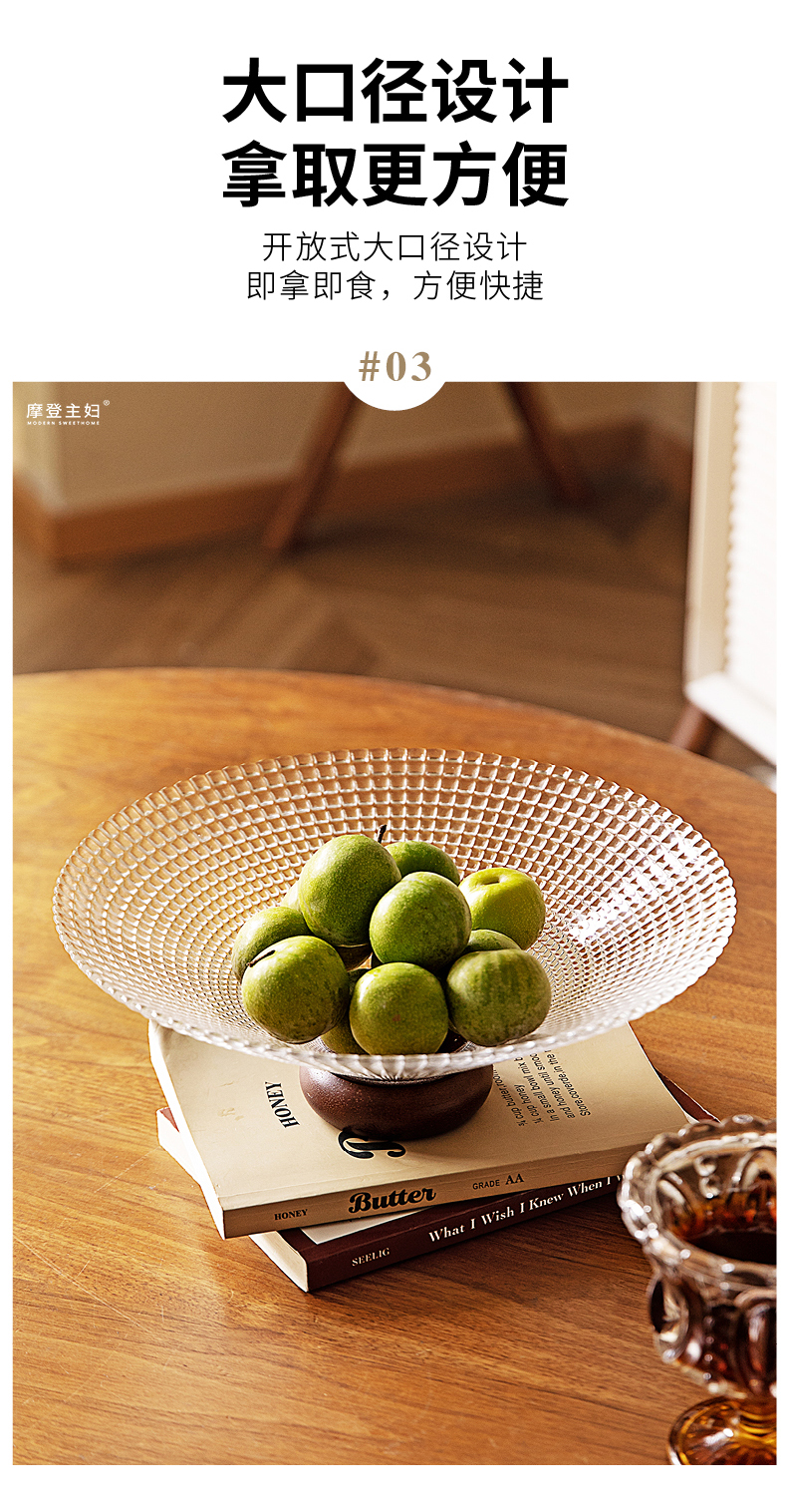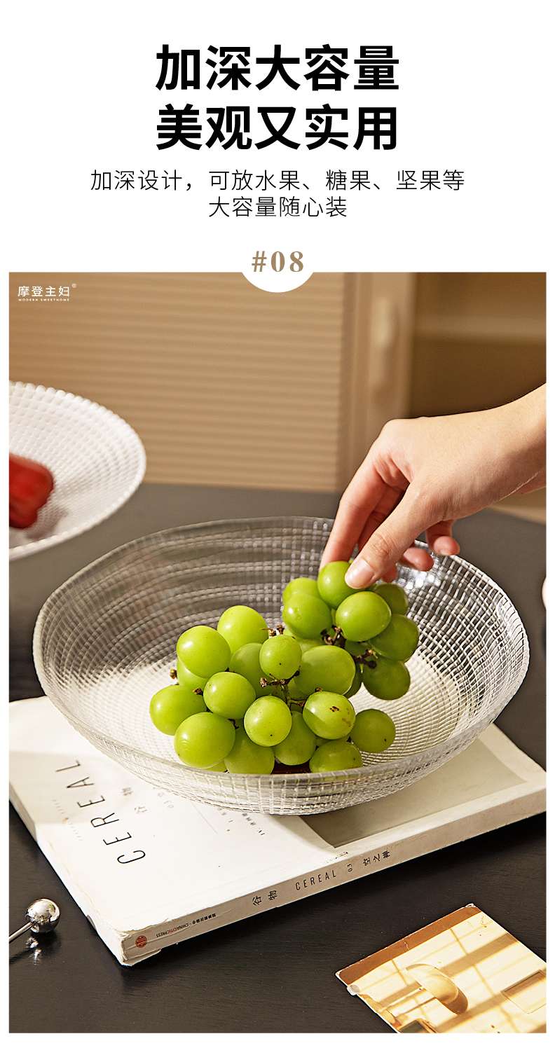 摩登主妇玻璃水果盘客厅茶几家用高端精致高颜值干果盘零食摆放盘