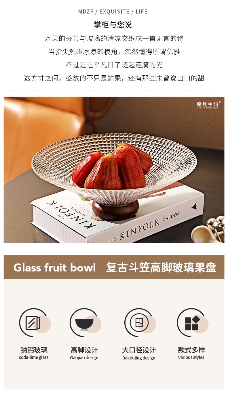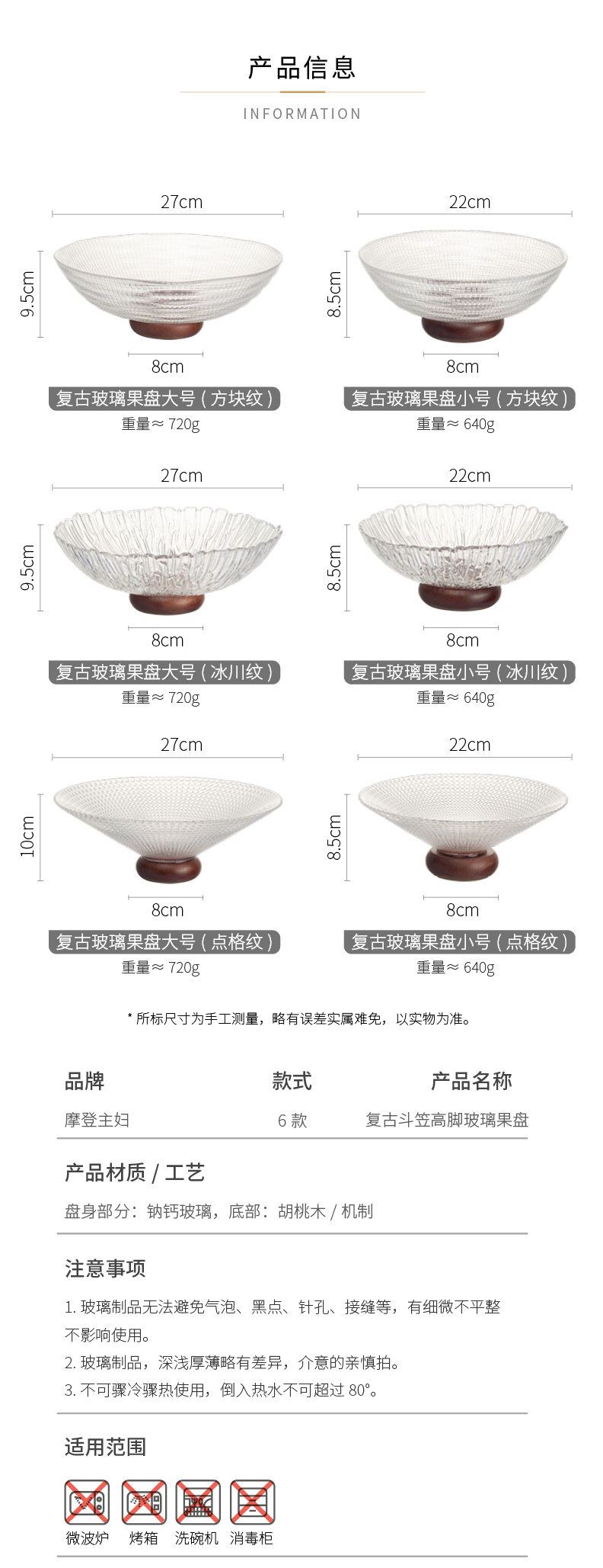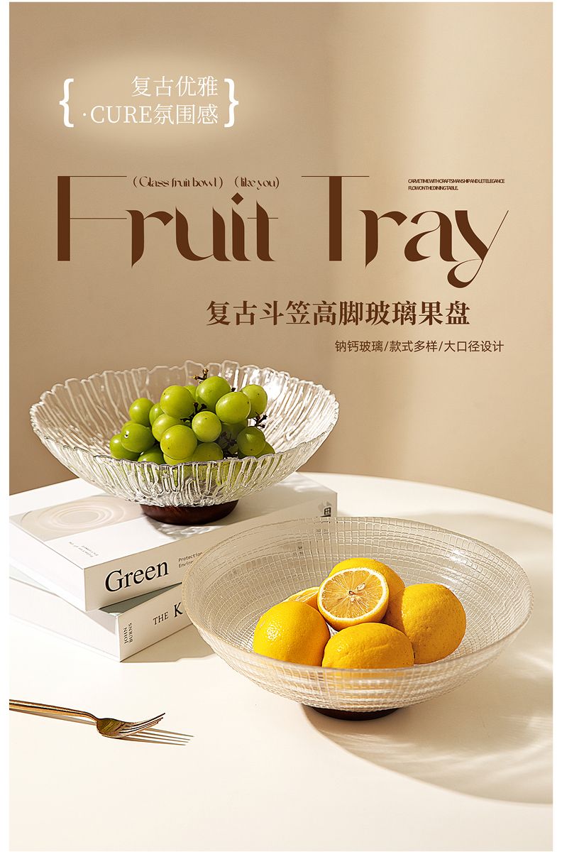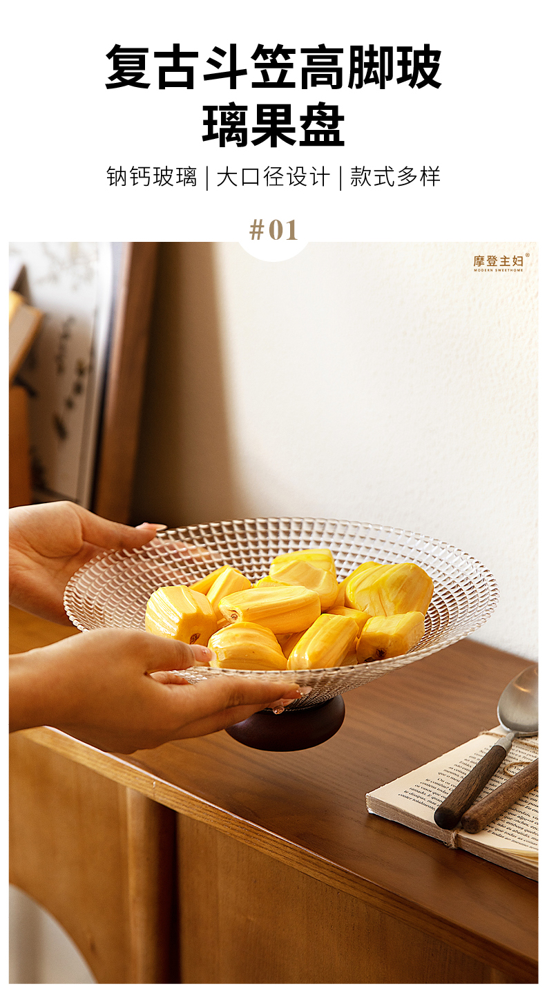 摩登主妇玻璃水果盘客厅茶几家用高端精致高颜值干果盘零食摆放盘