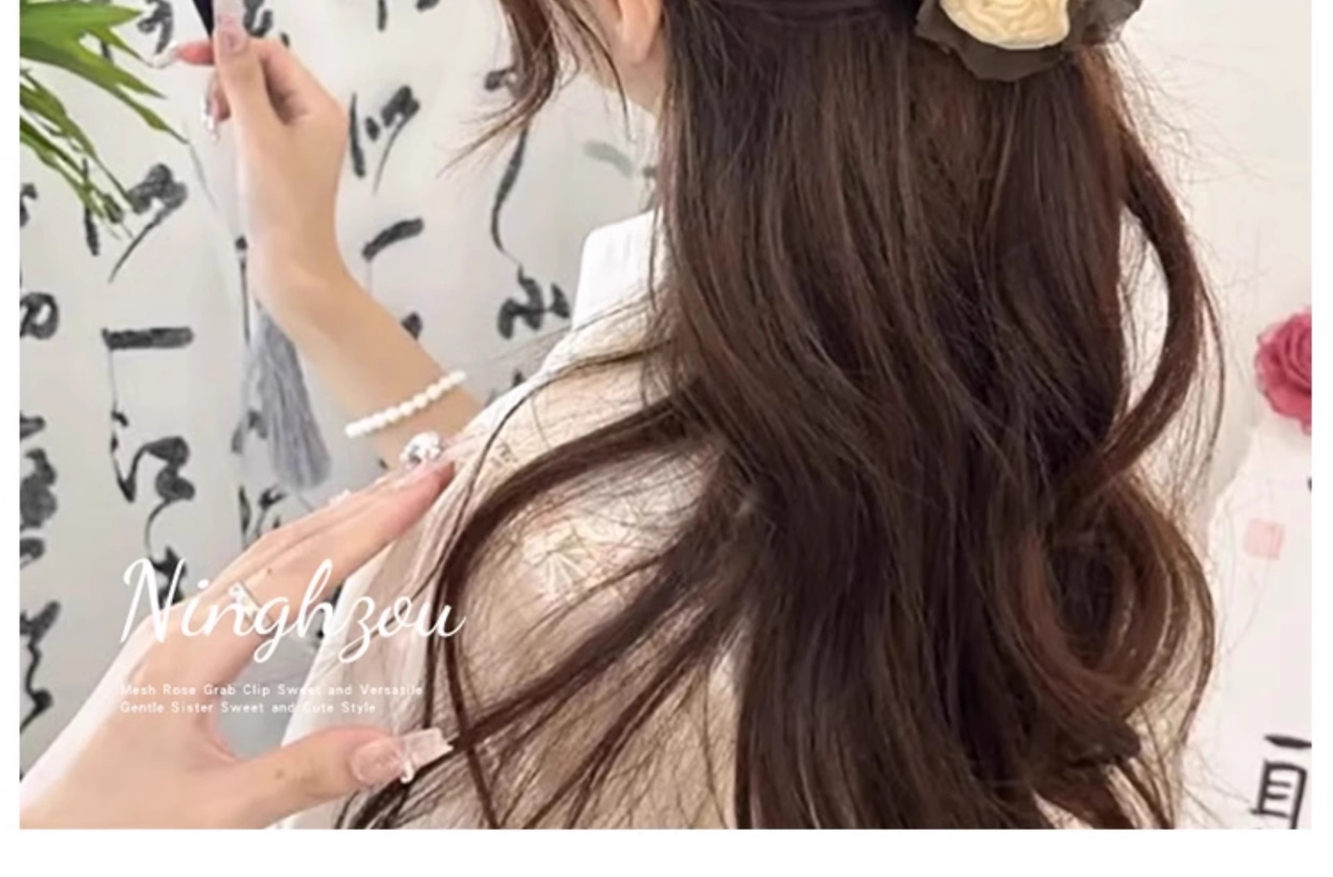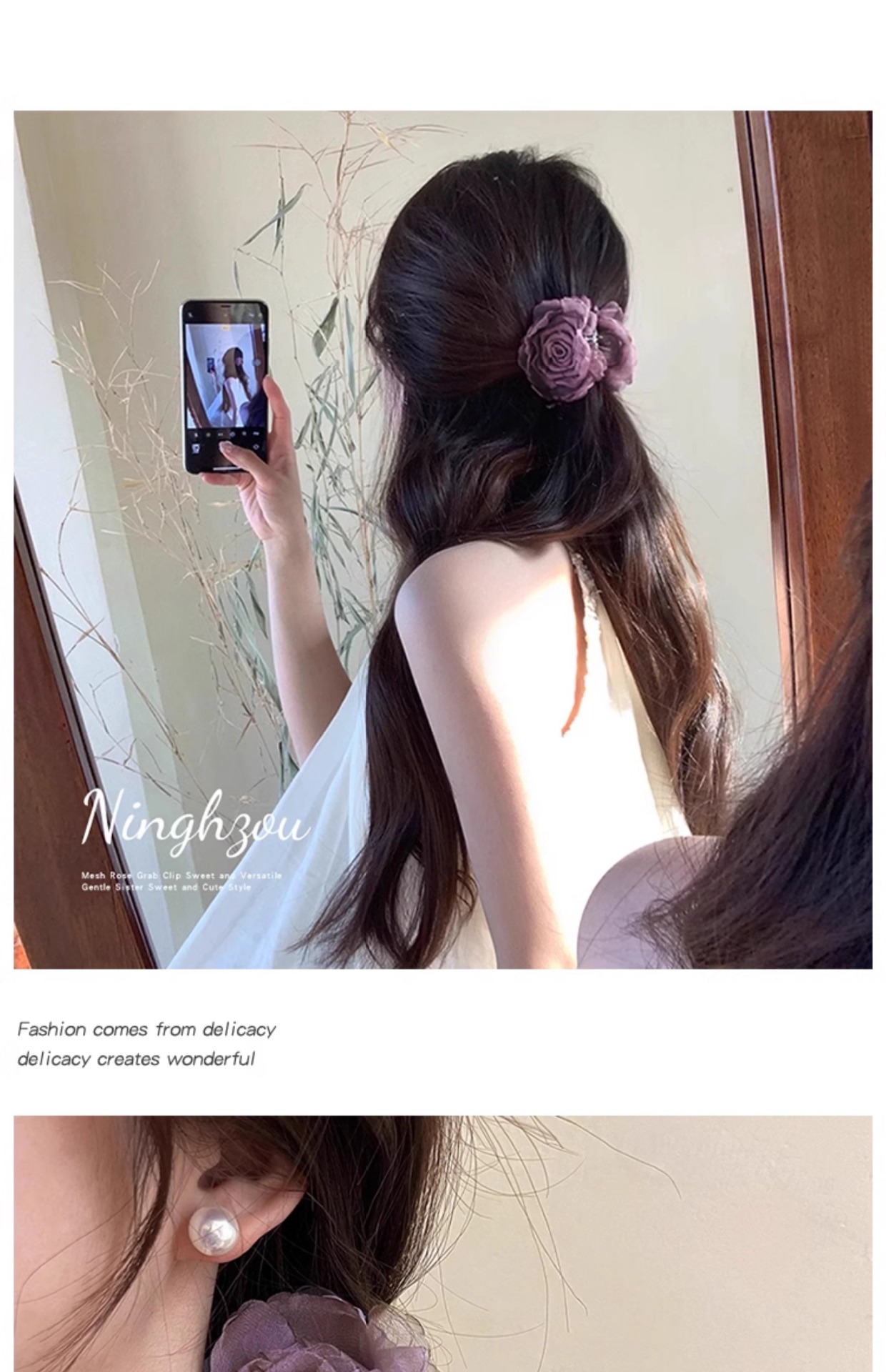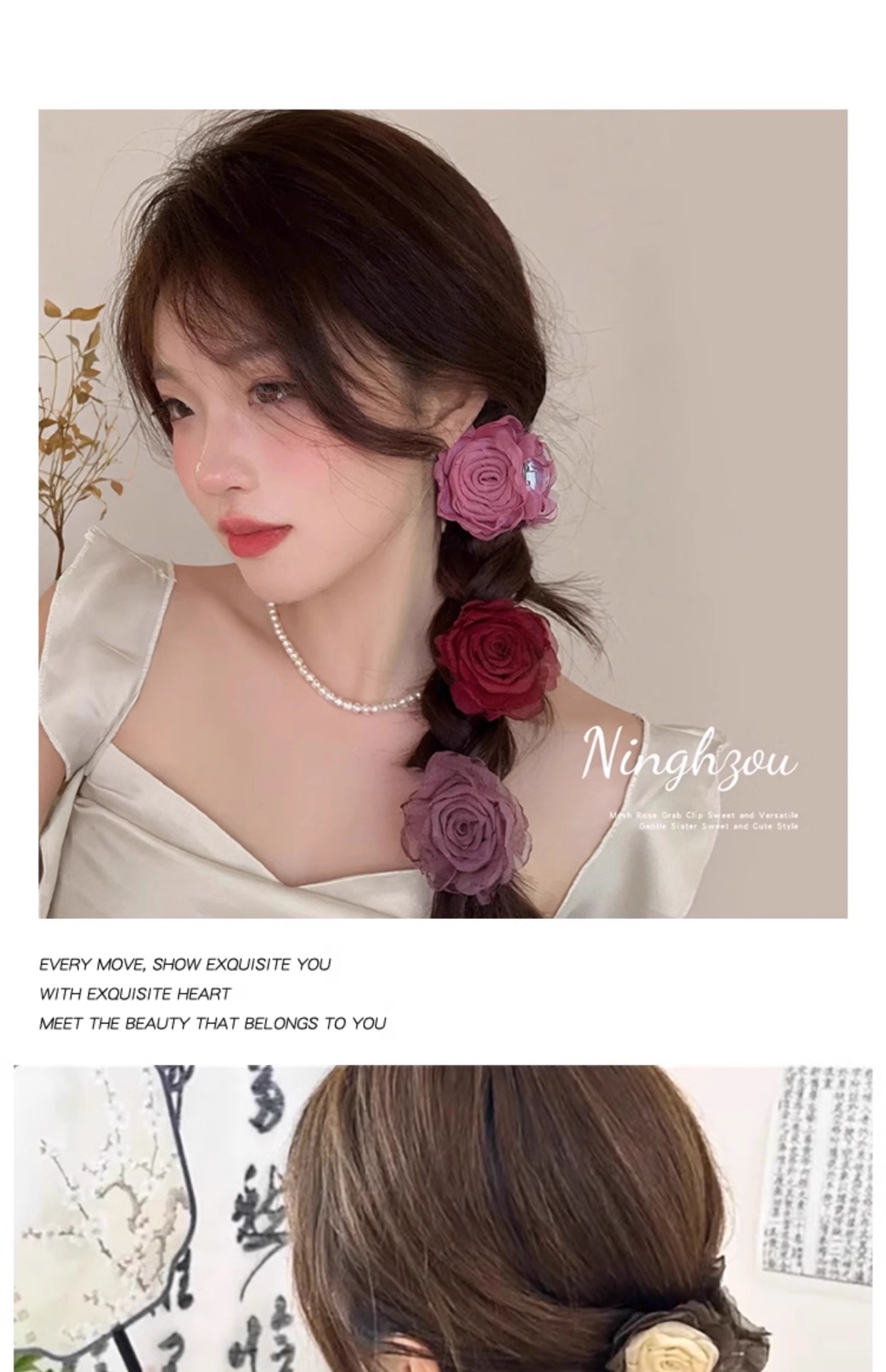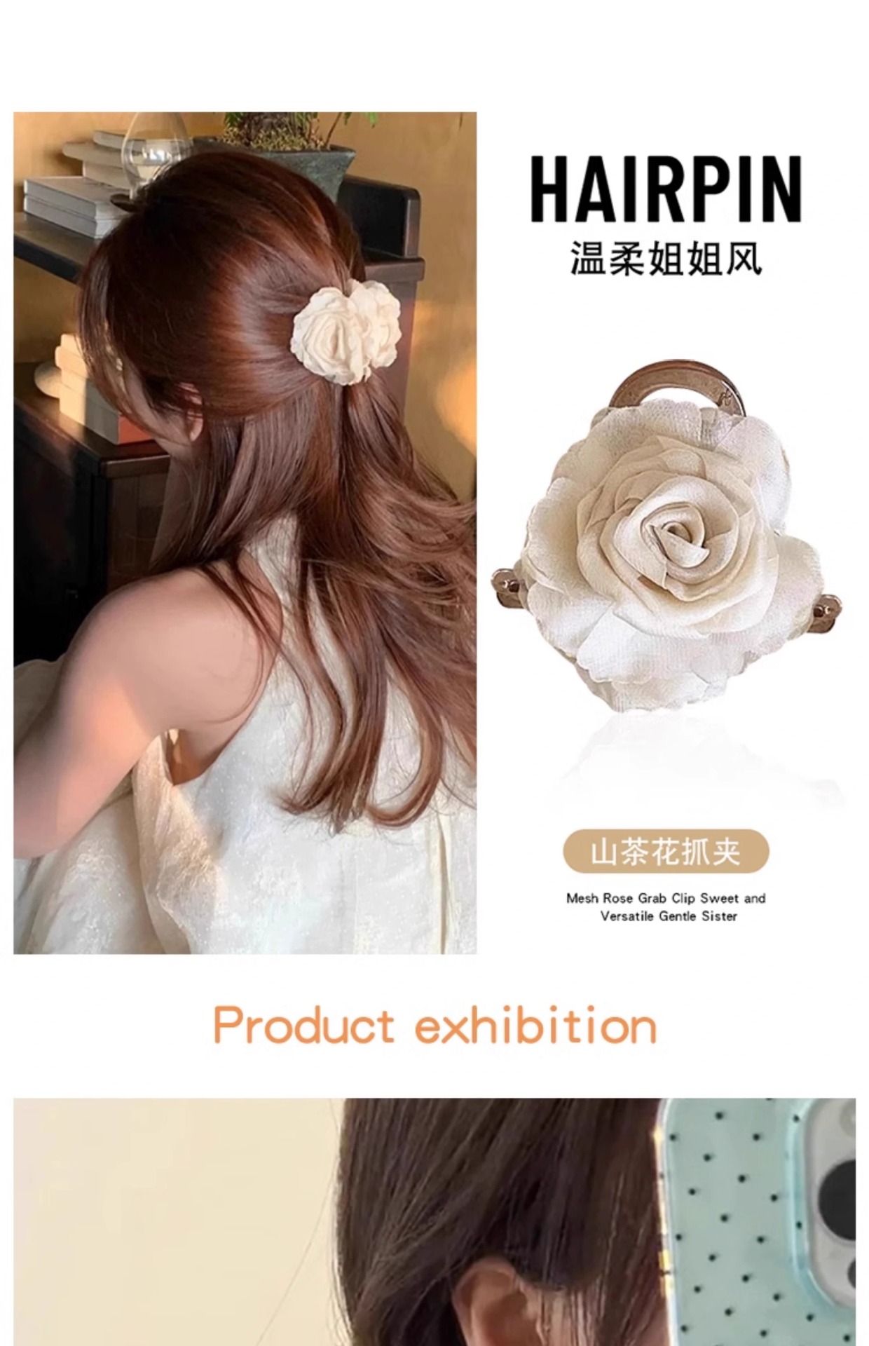 雀说 【2件】山茶花朵抓夹女后脑勺半扎发夹YC7584-4