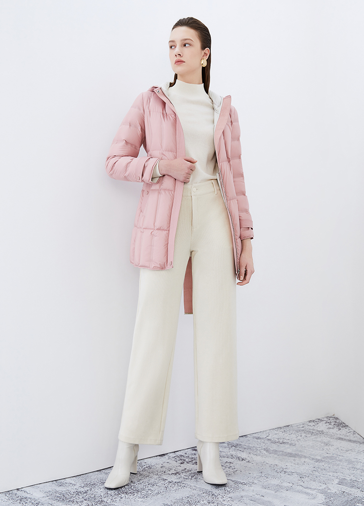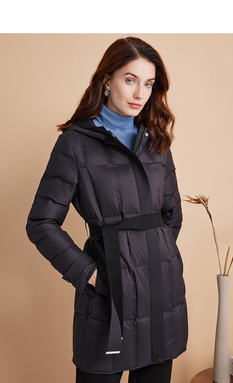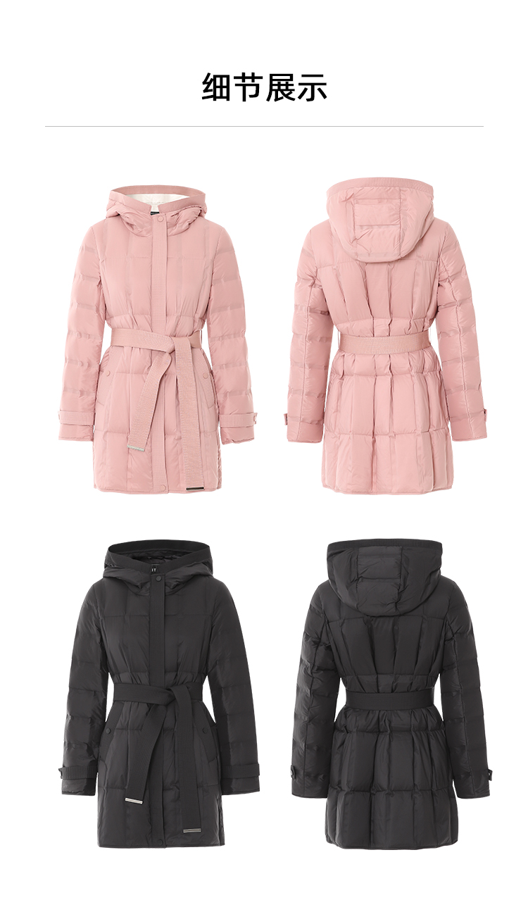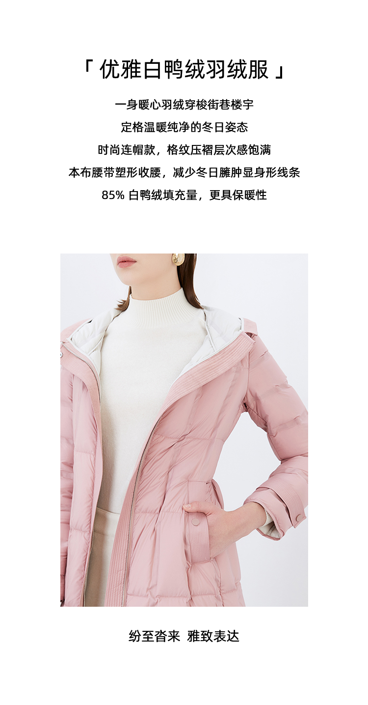 EITIE爱特爱冬季新款简约收腰显瘦保暖连帽羽绒服女7611303