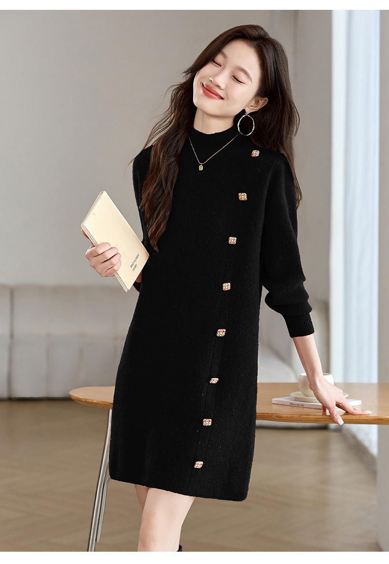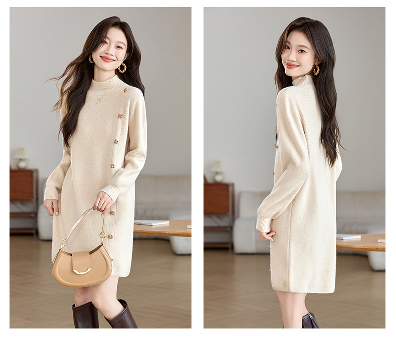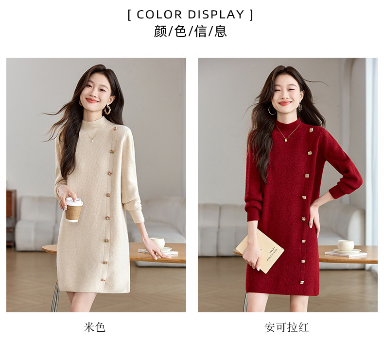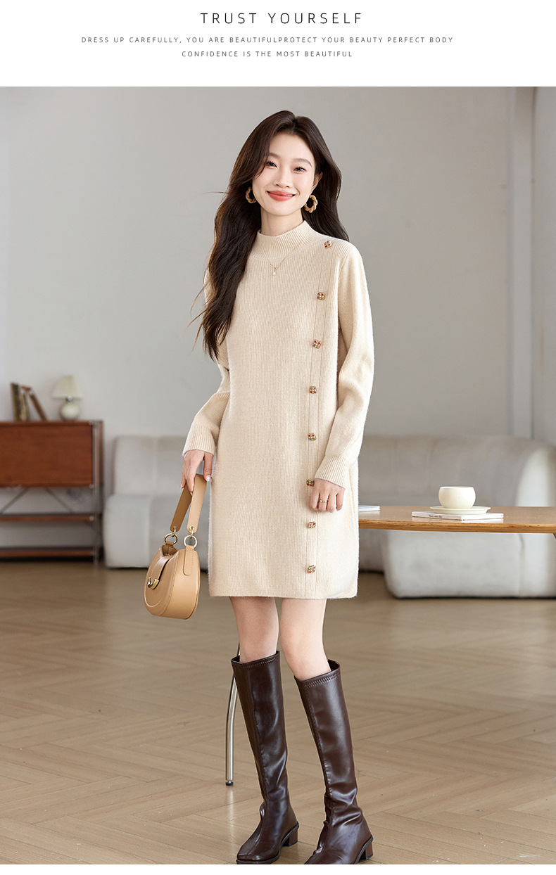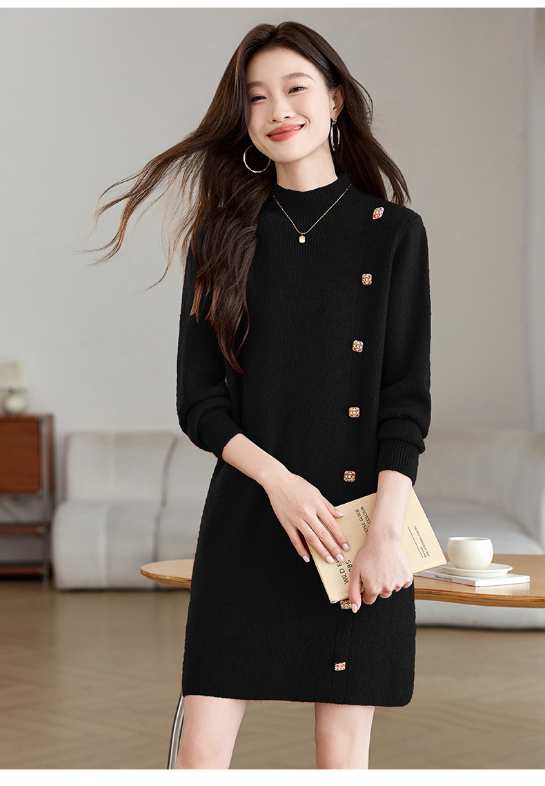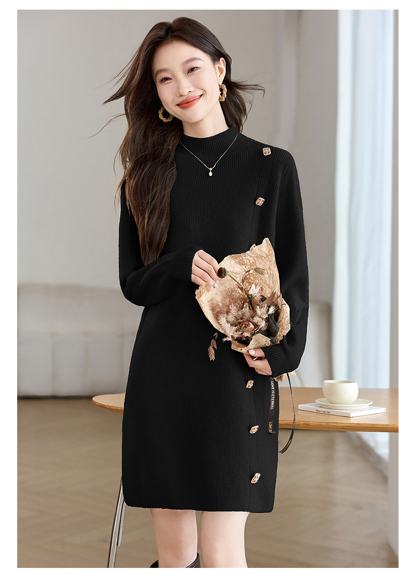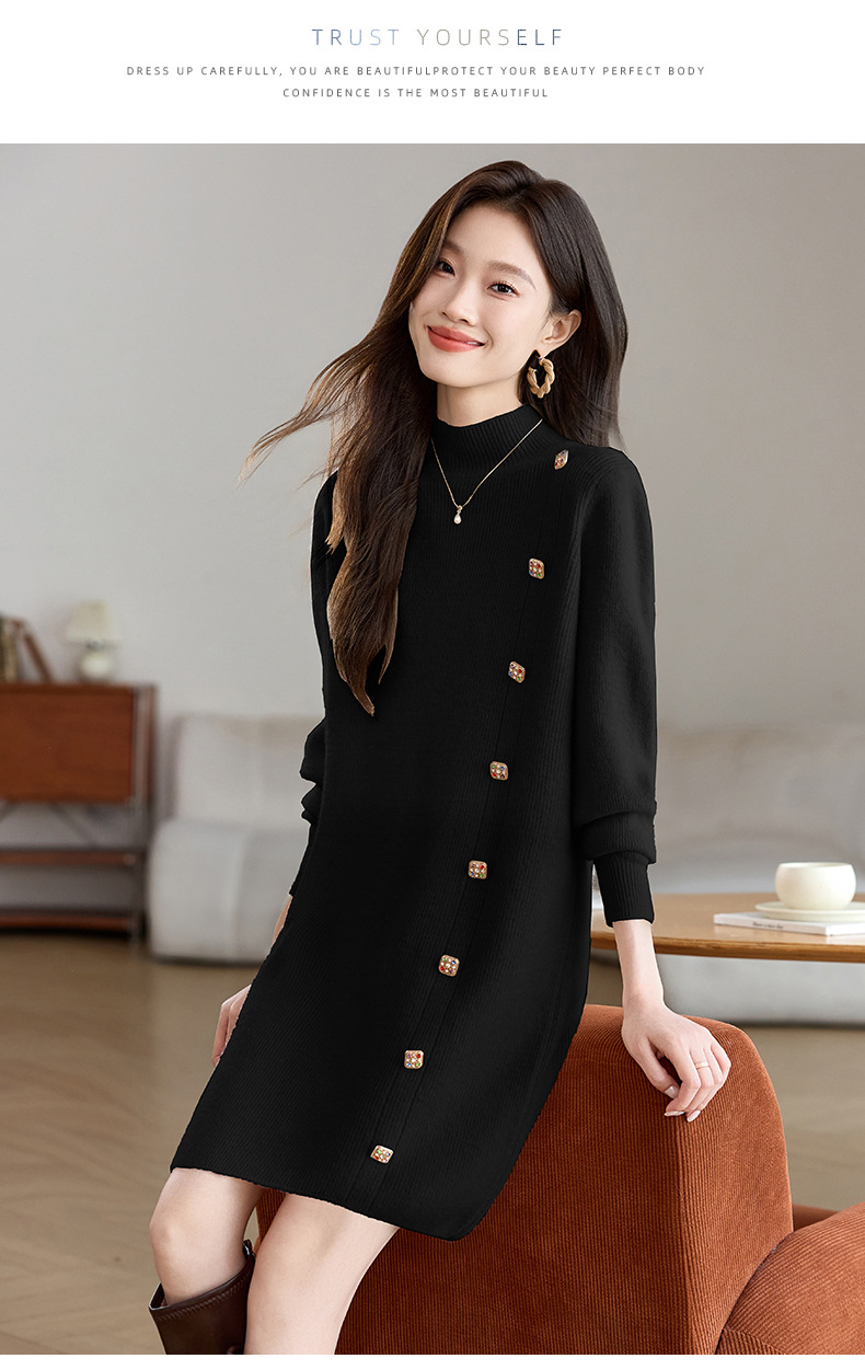 丁摩 半高领针织衫中长款打底连衣裙QL-W8508