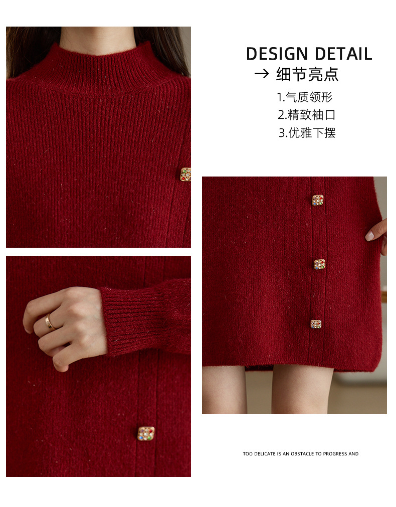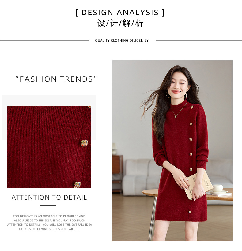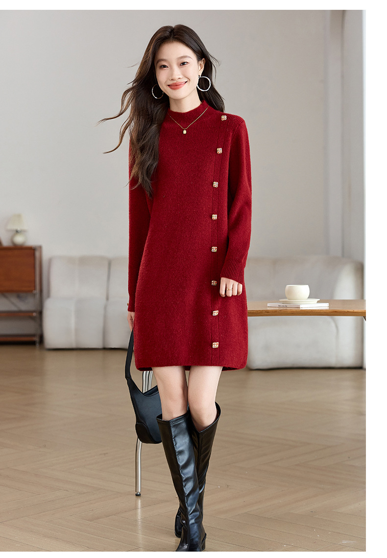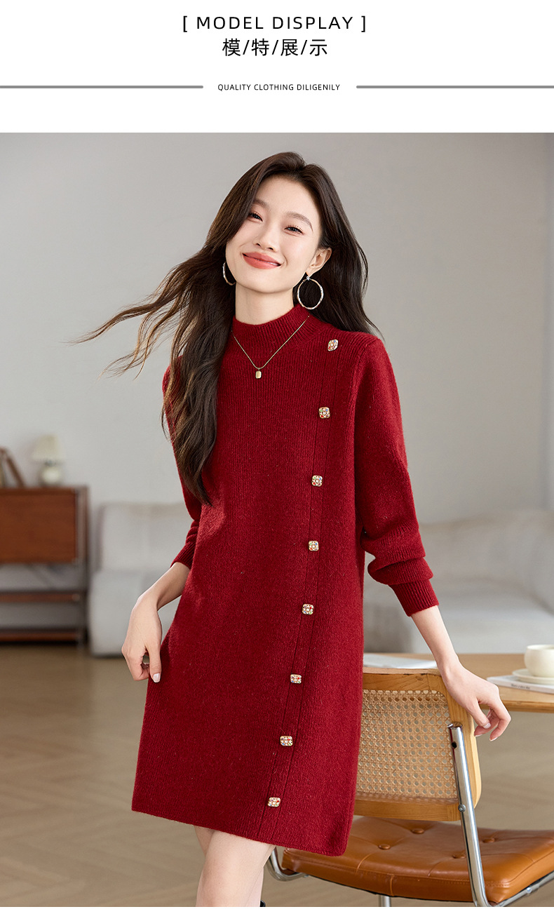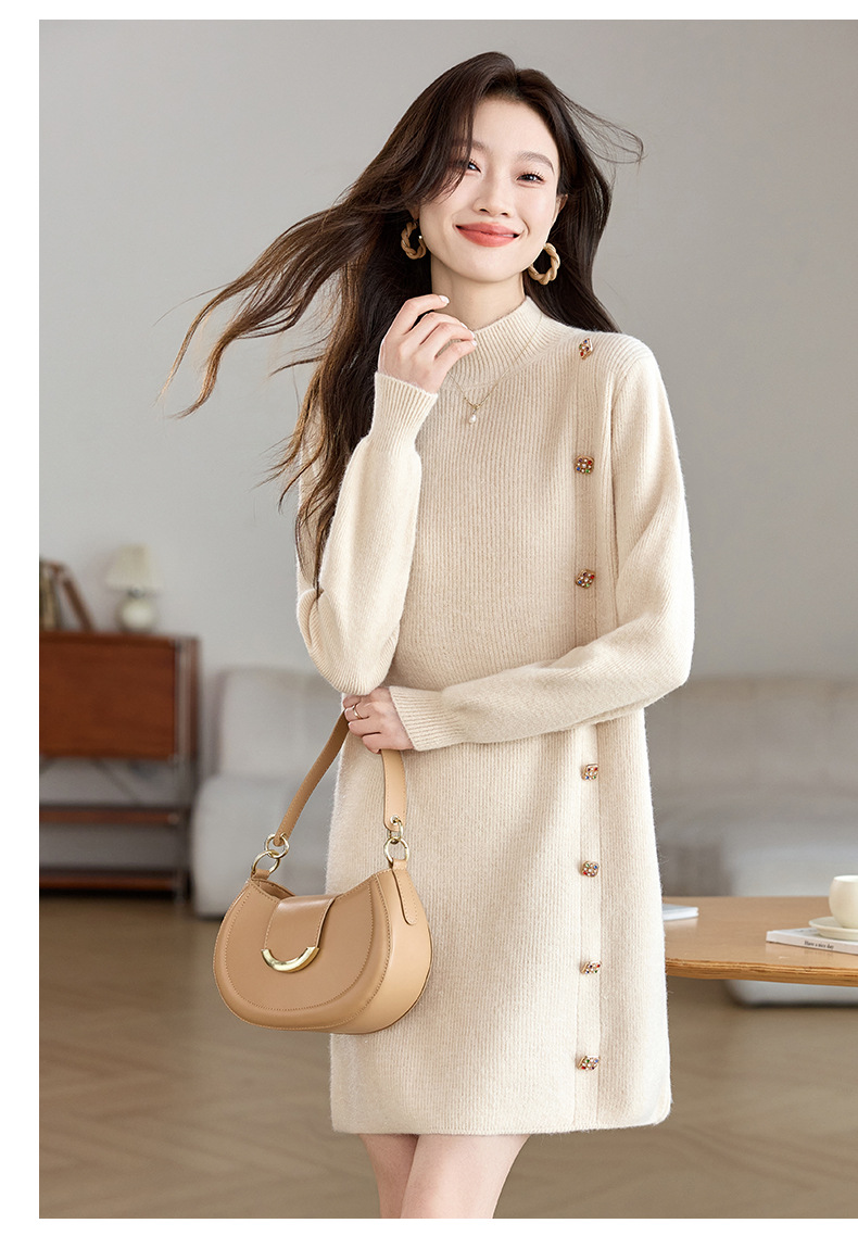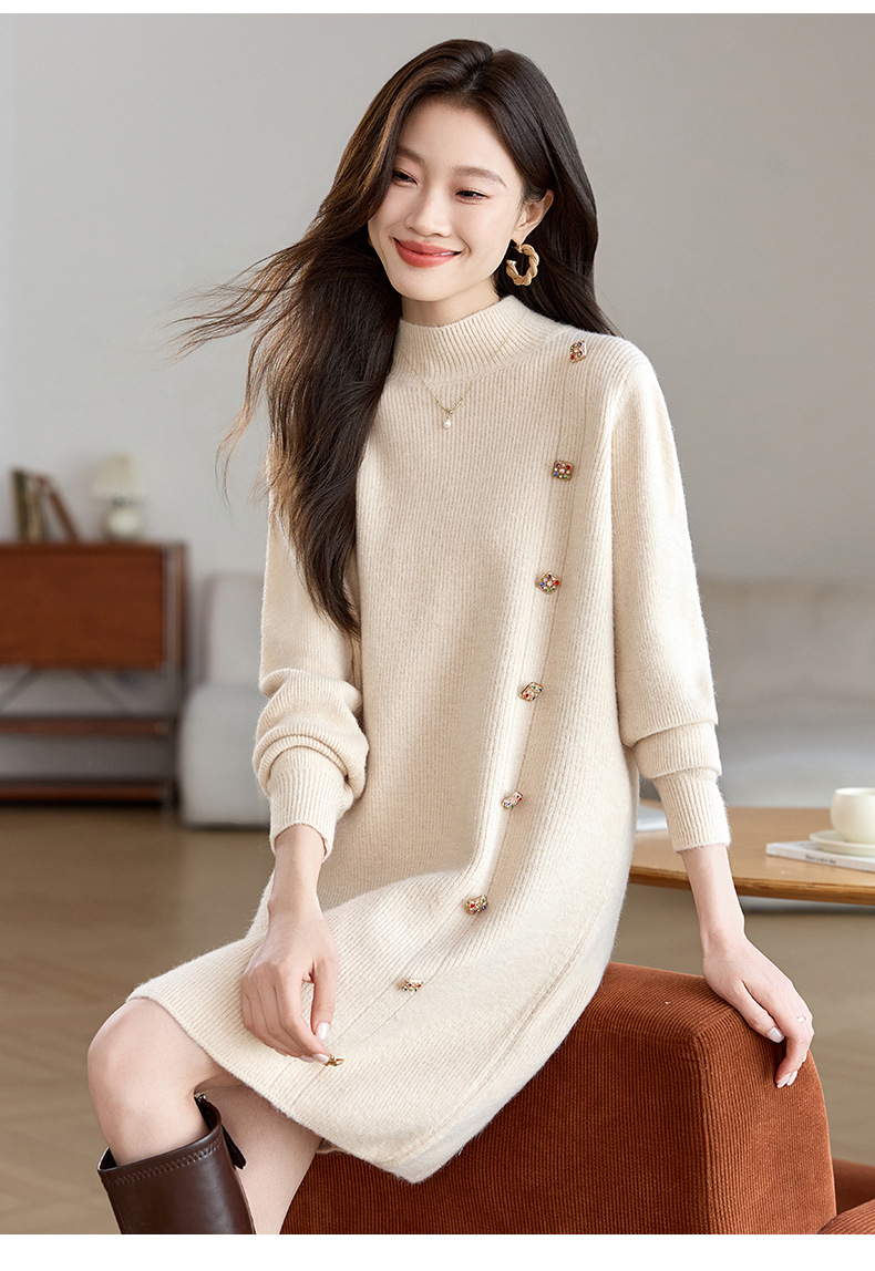 丁摩 半高领针织衫中长款打底连衣裙QL-W8508