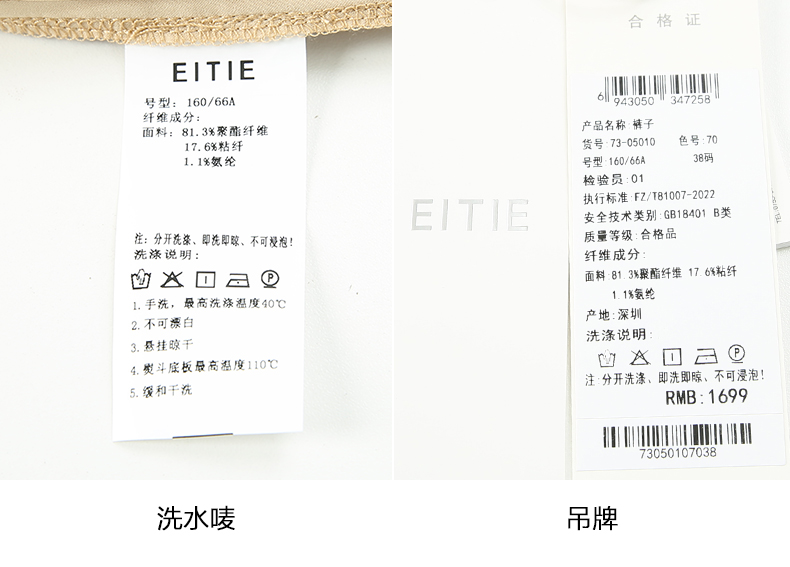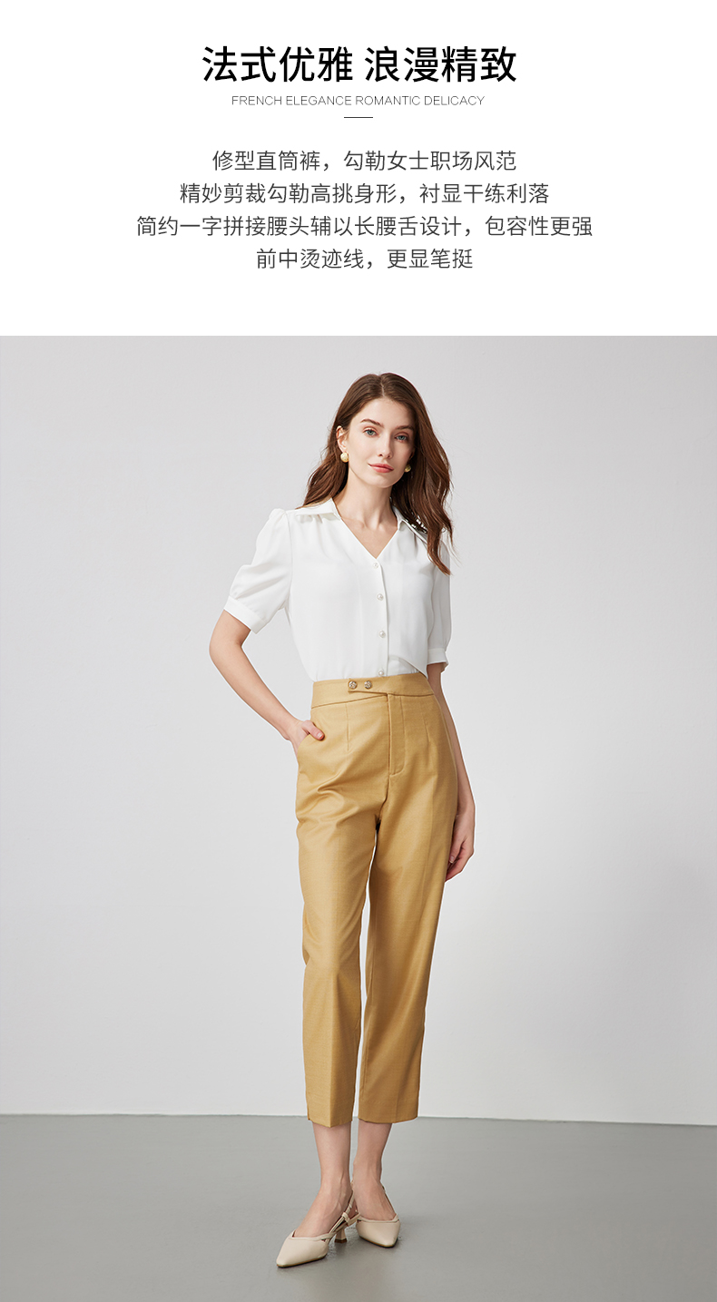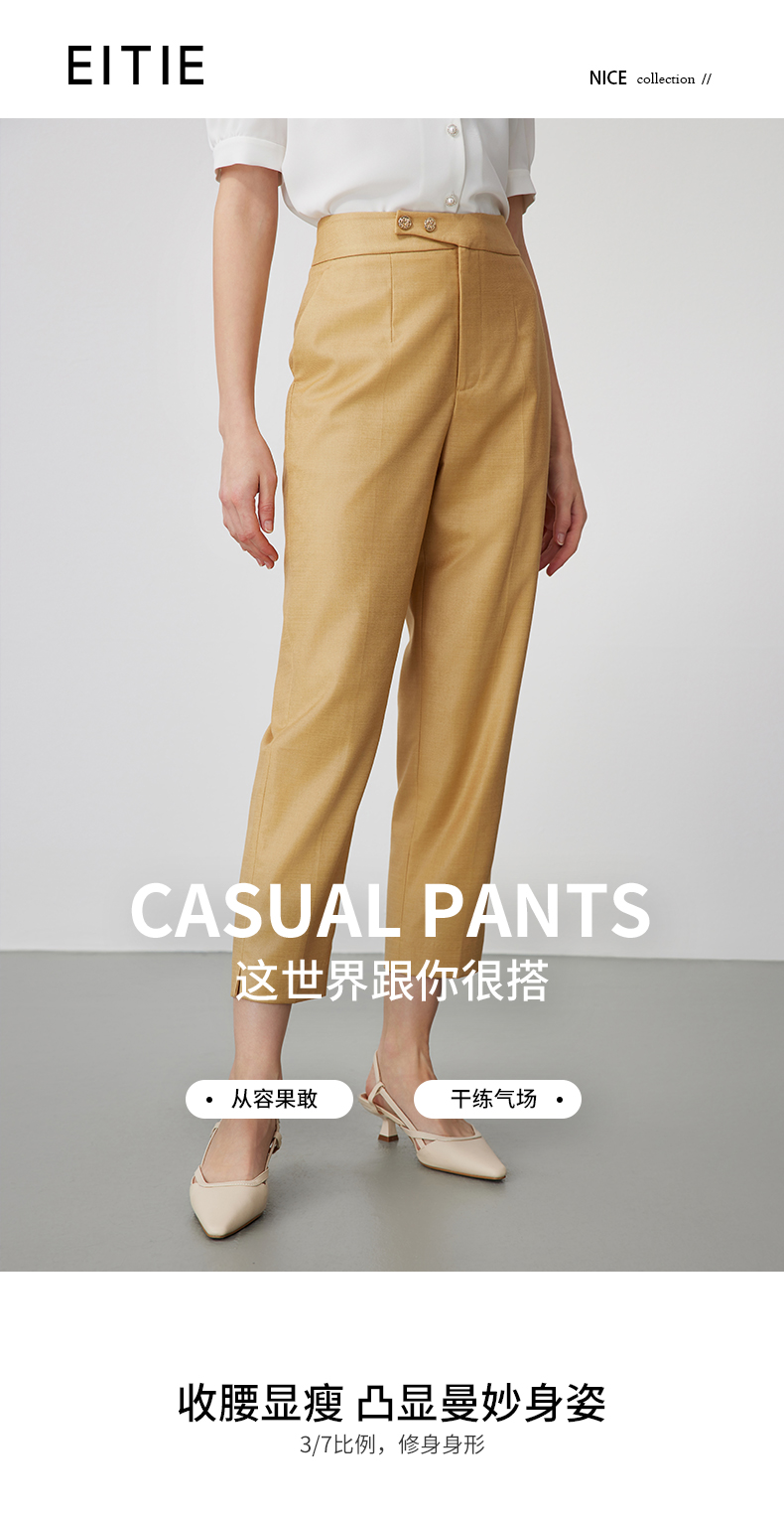EITIE爱特爱春新款高腰气质通勤显瘦裤子7305010