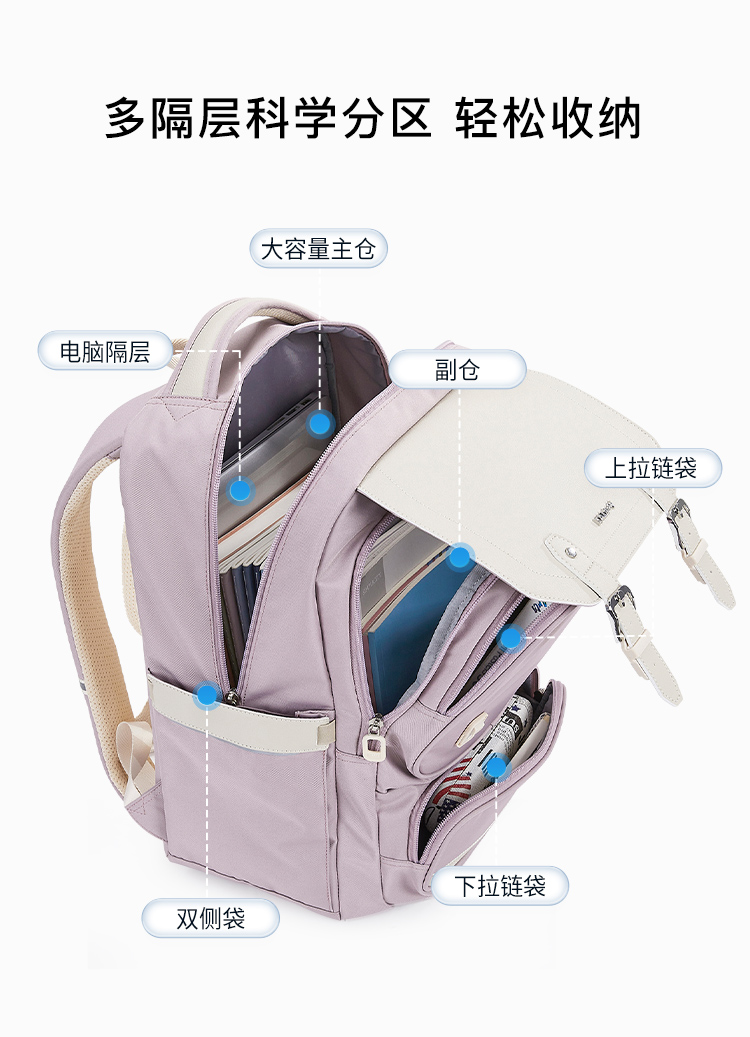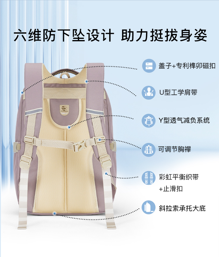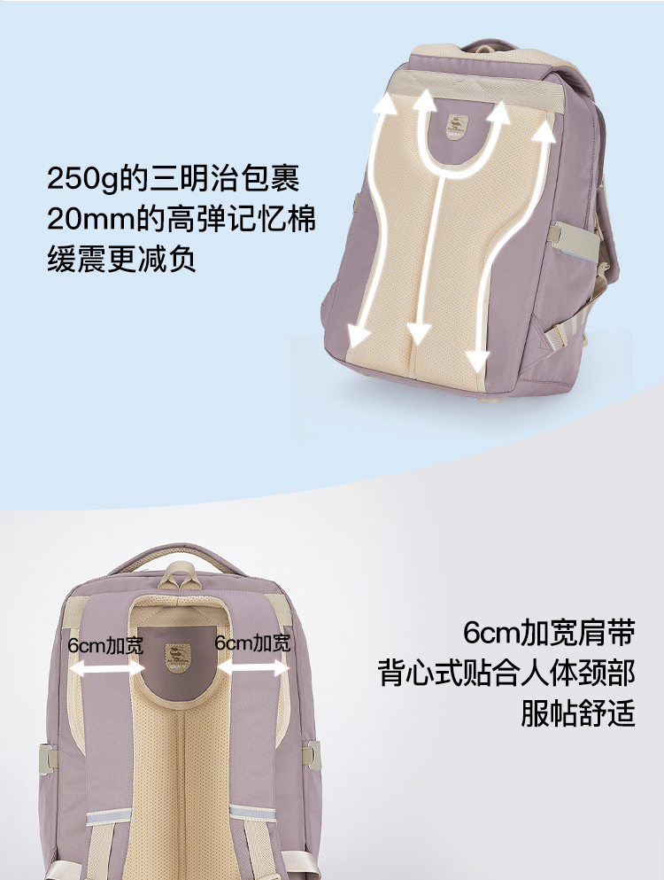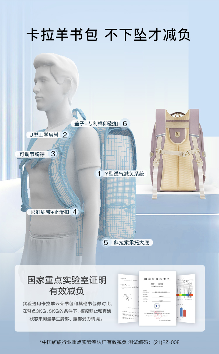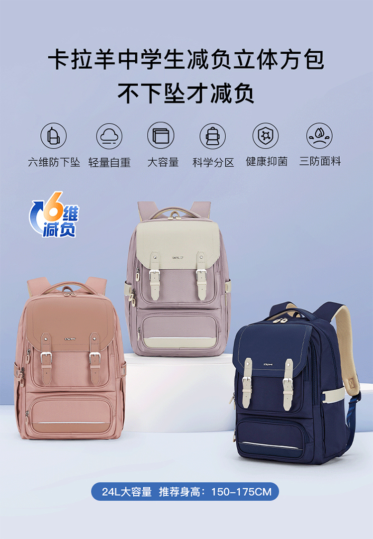 卡拉羊中学生24L/26L六维减负防下坠云朵书包 蒲公英CX5193/L
