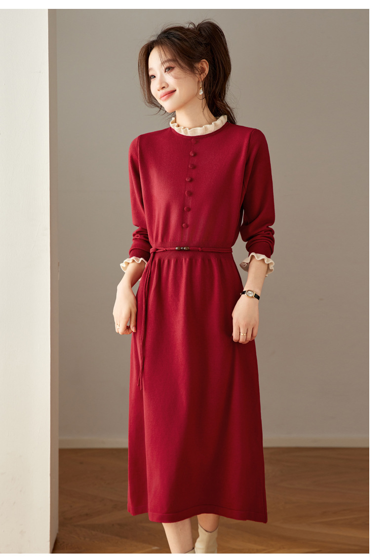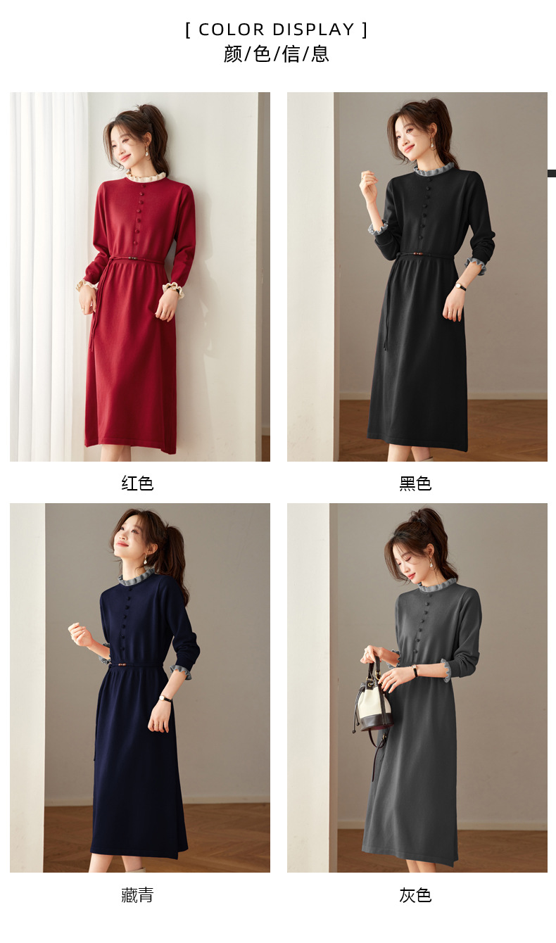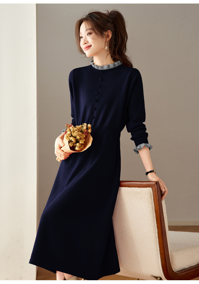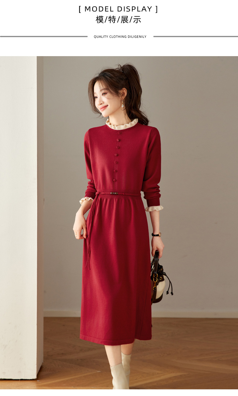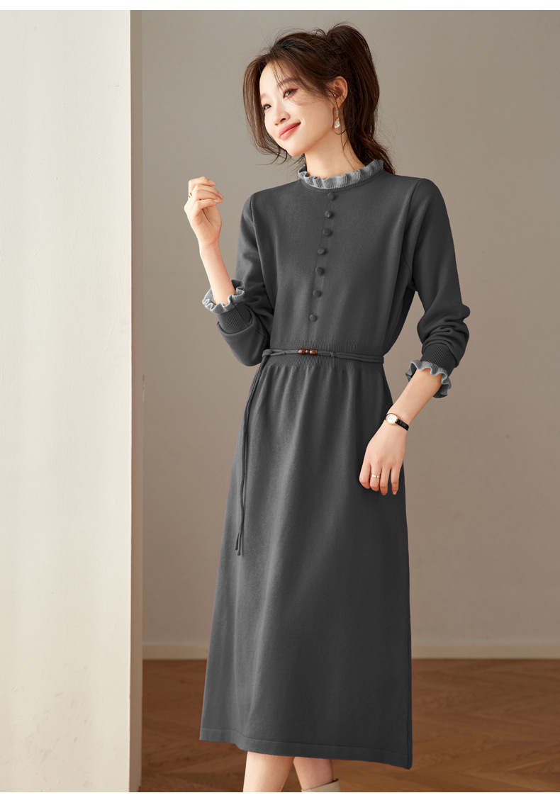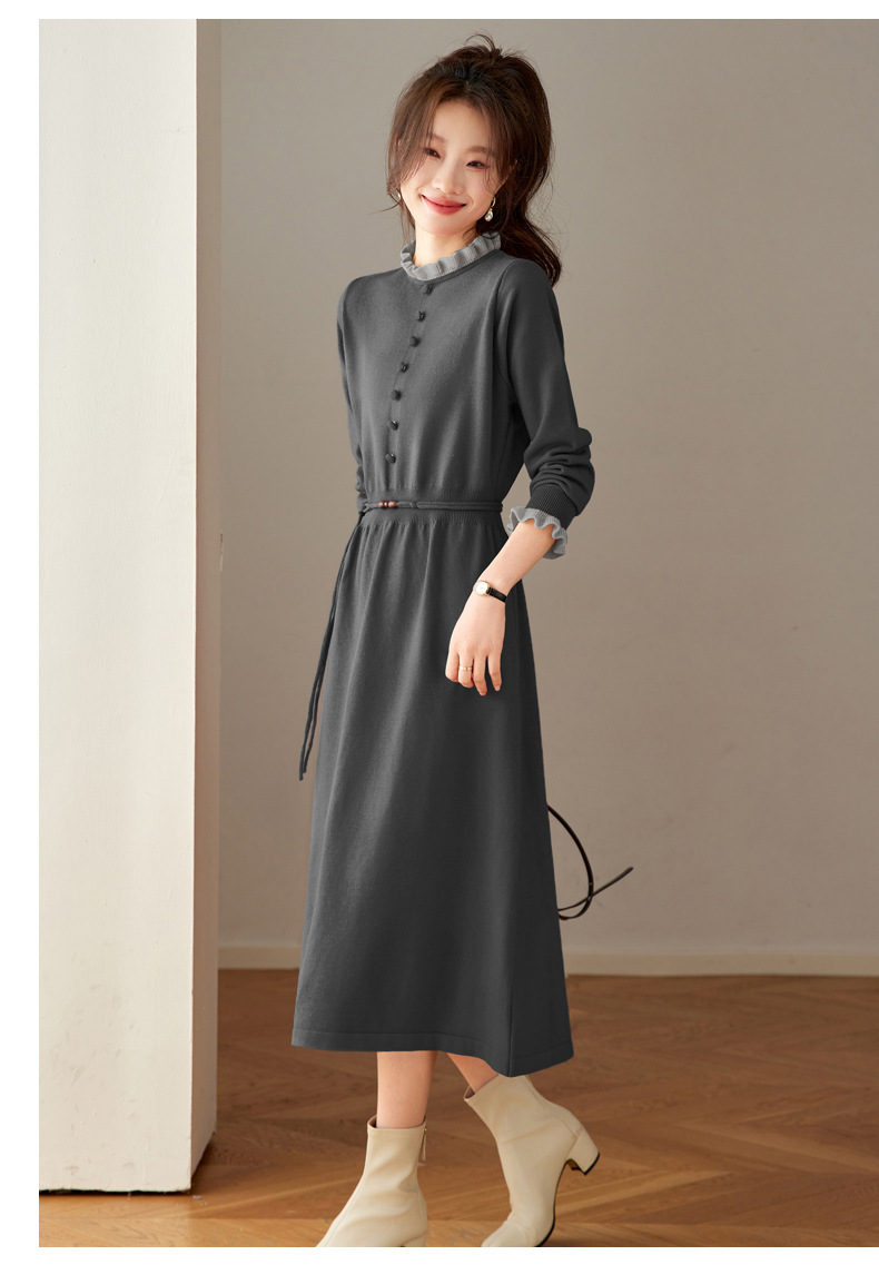 CC 8945木耳边连衣裙气质显瘦收腰毛衣裙