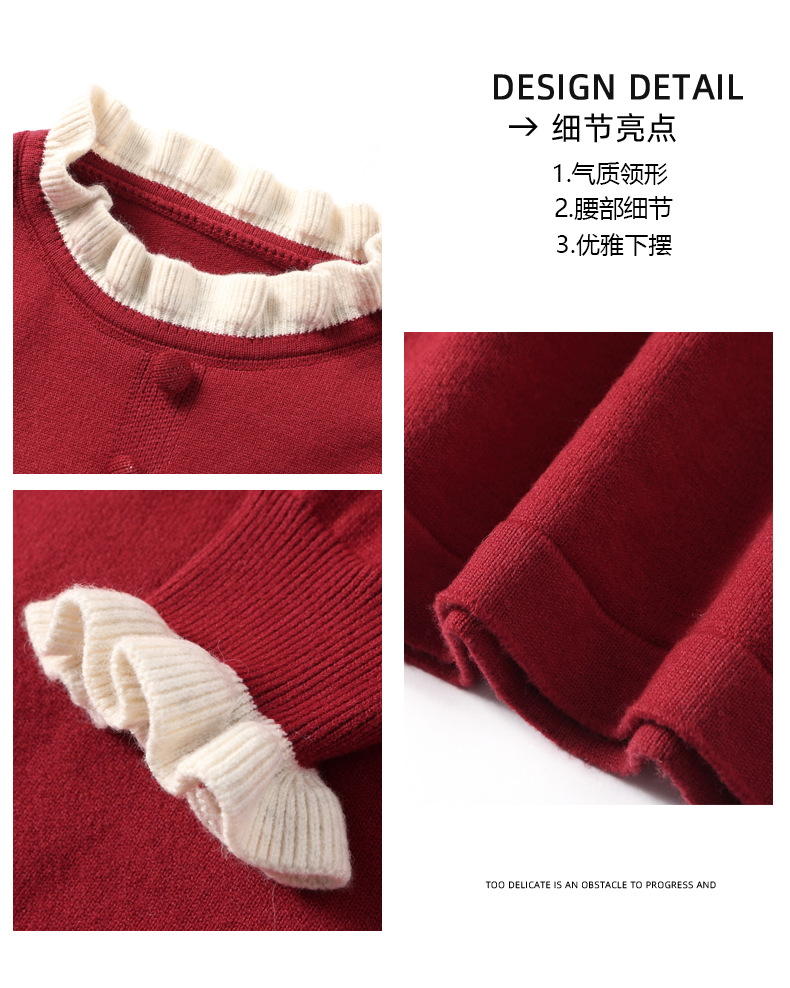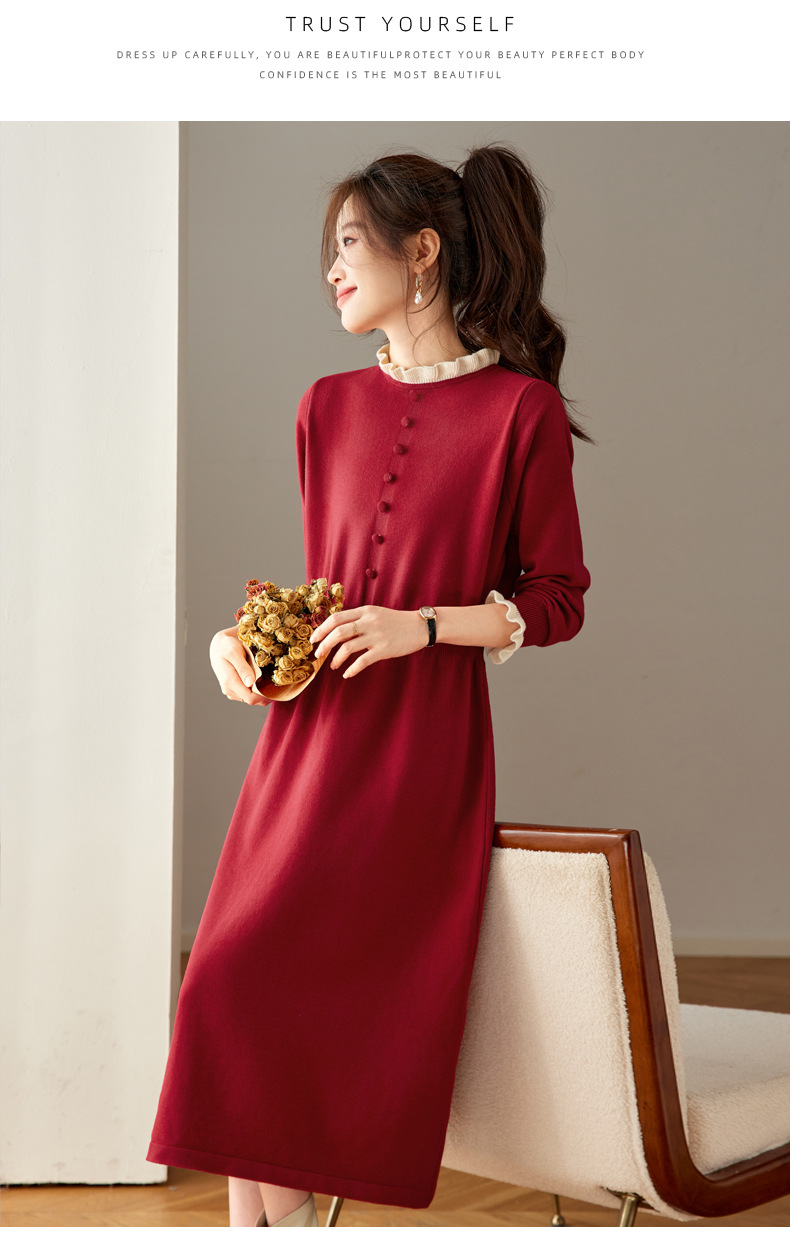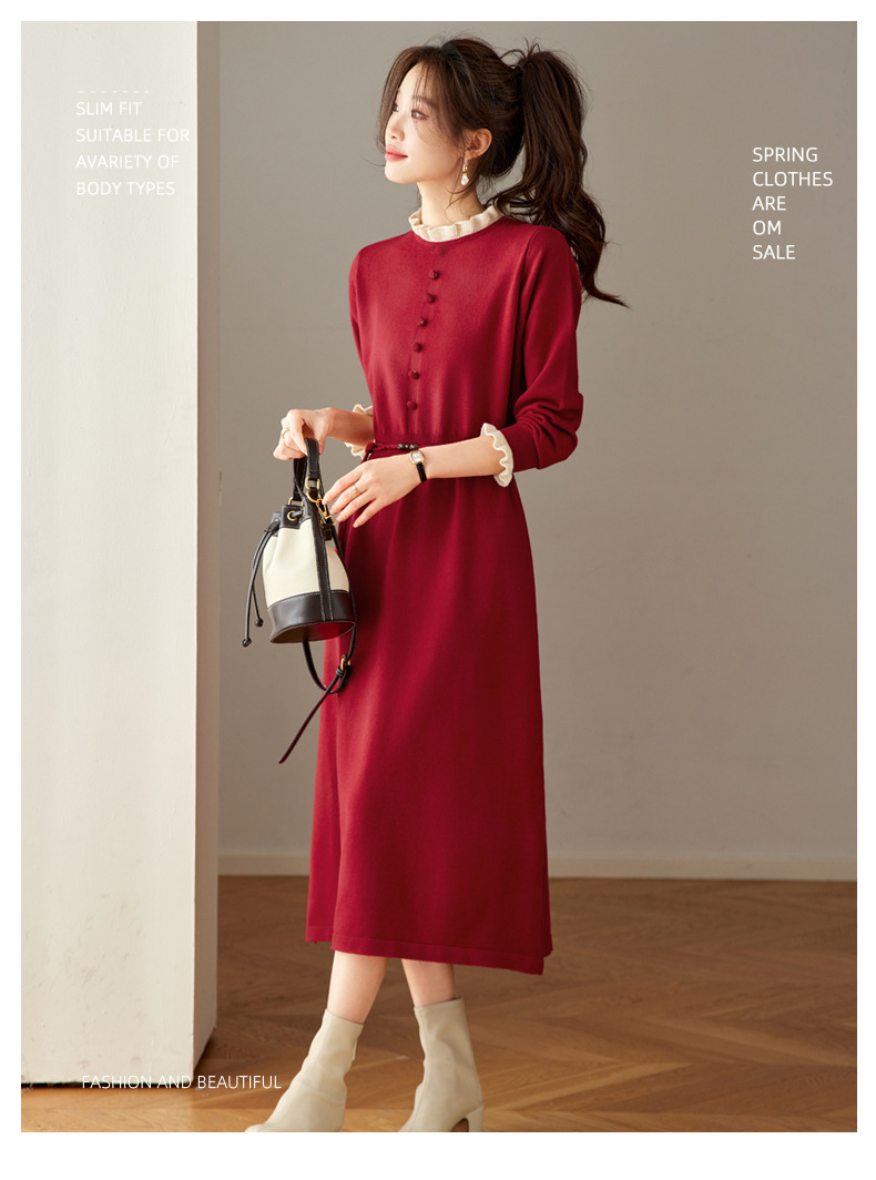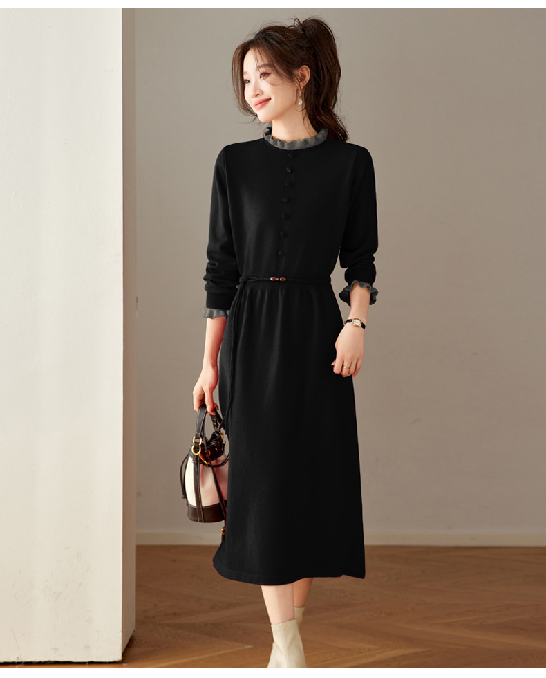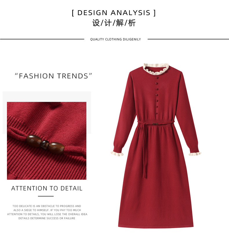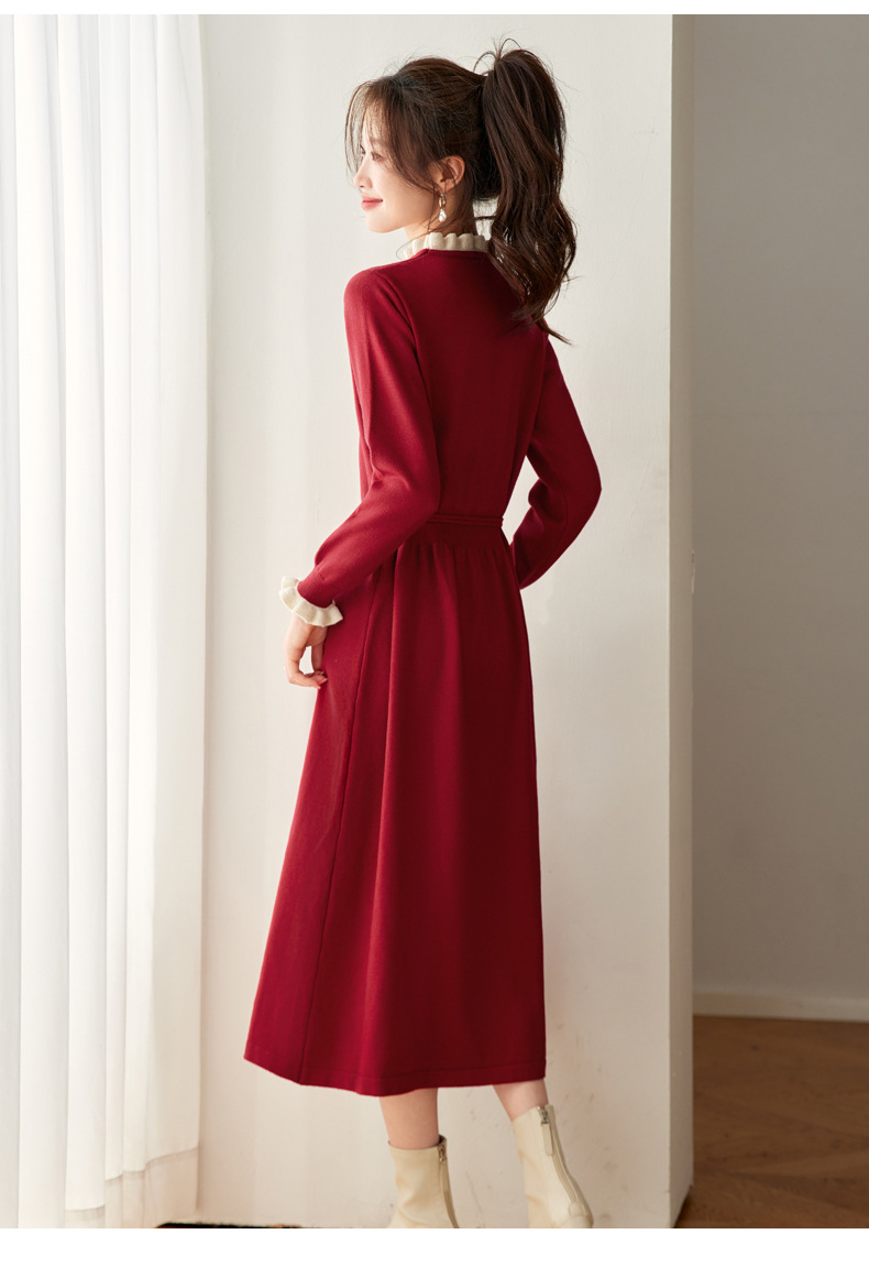 CC 8945木耳边连衣裙气质显瘦收腰毛衣裙