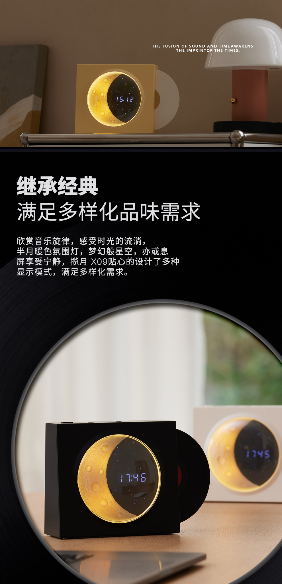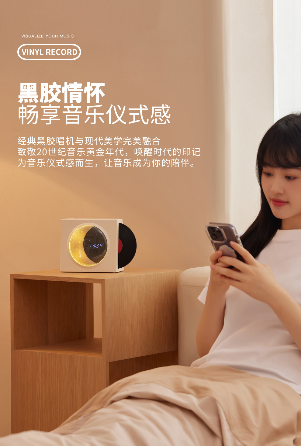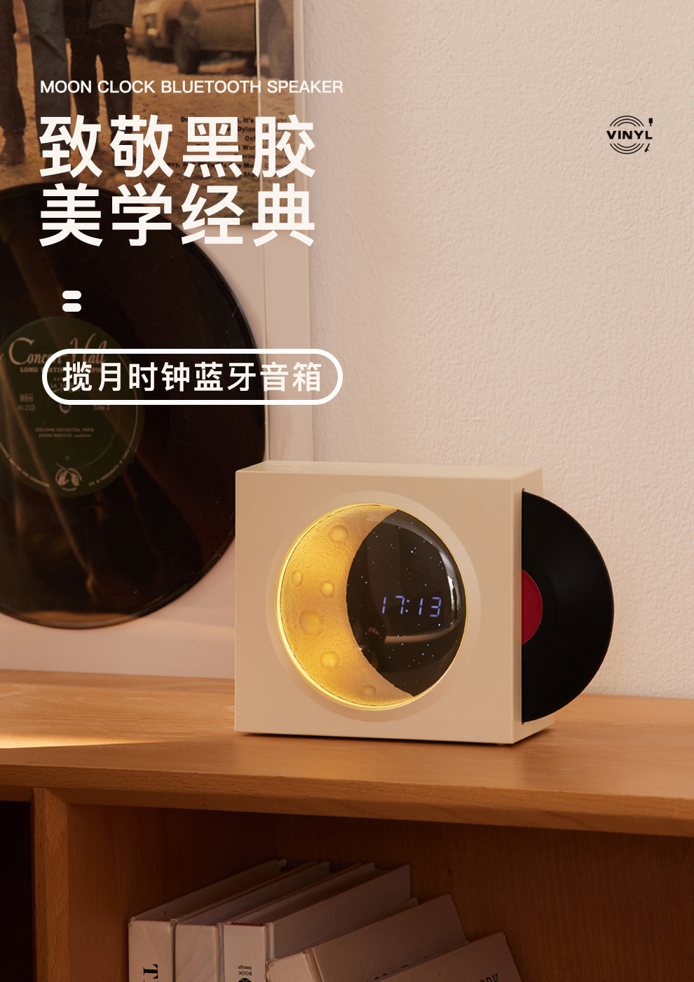 【复古黑胶唱片机】蓝牙音箱TF卡 音乐蓝牙音响 USB充电月亮时钟星空灯 七夕情人节礼物
