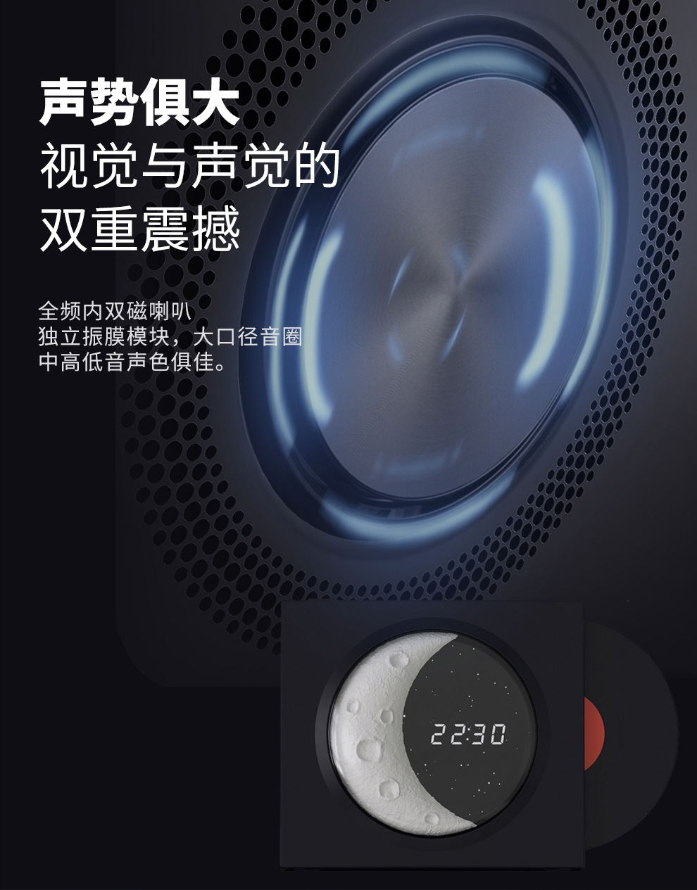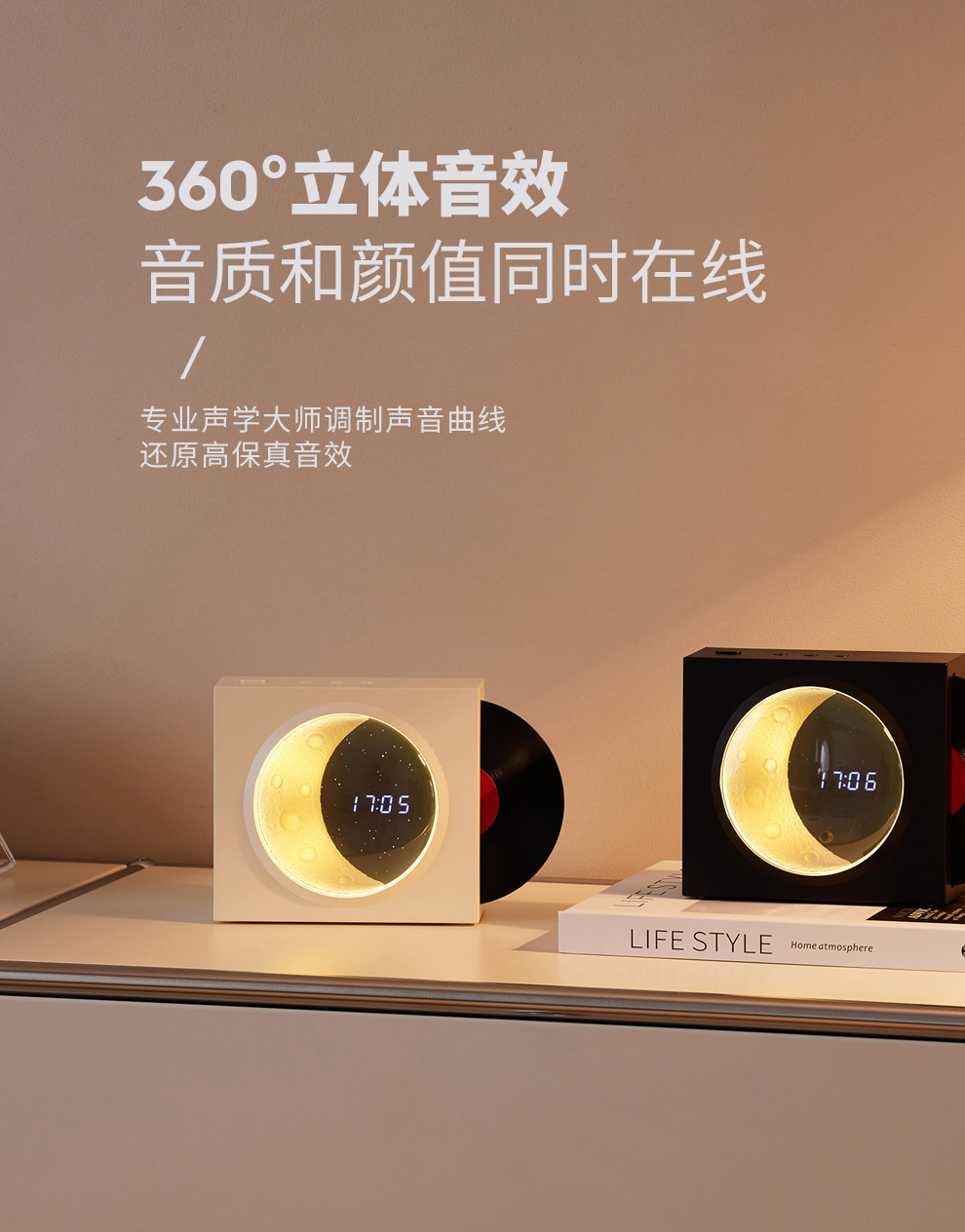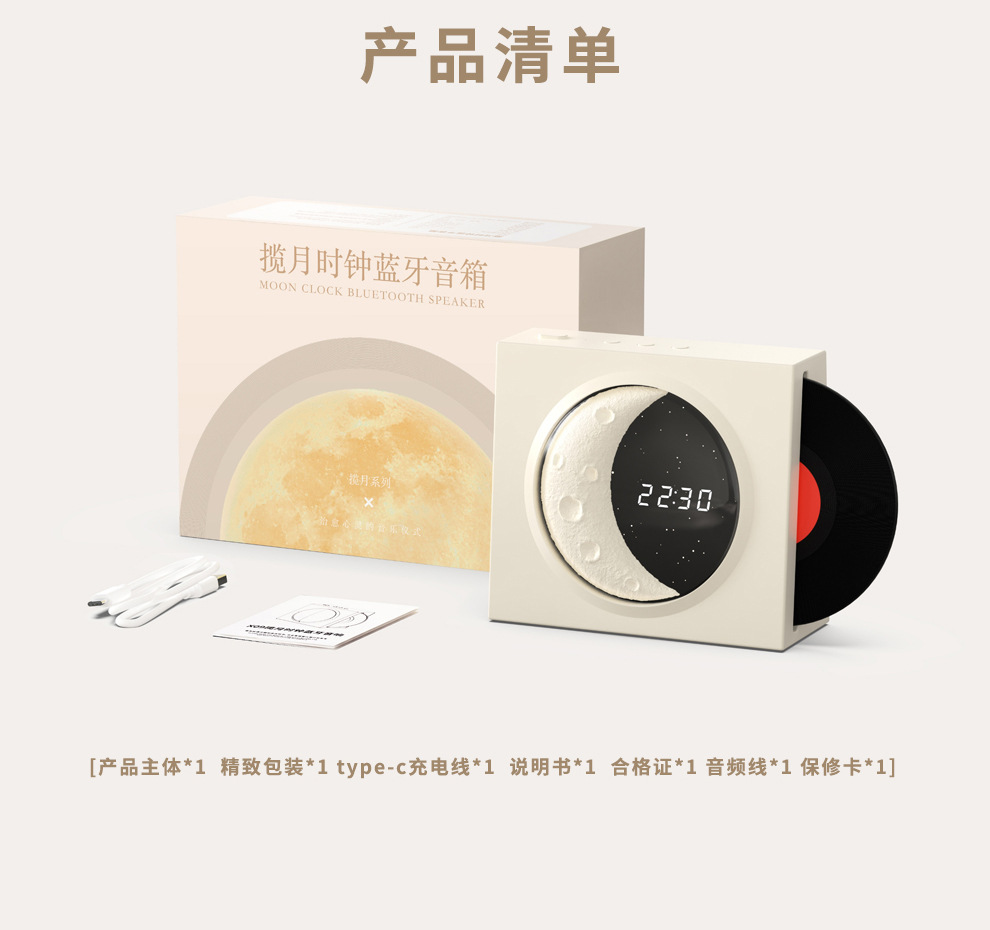 【复古黑胶唱片机】蓝牙音箱TF卡 音乐蓝牙音响 USB充电月亮时钟星空灯 七夕情人节礼物