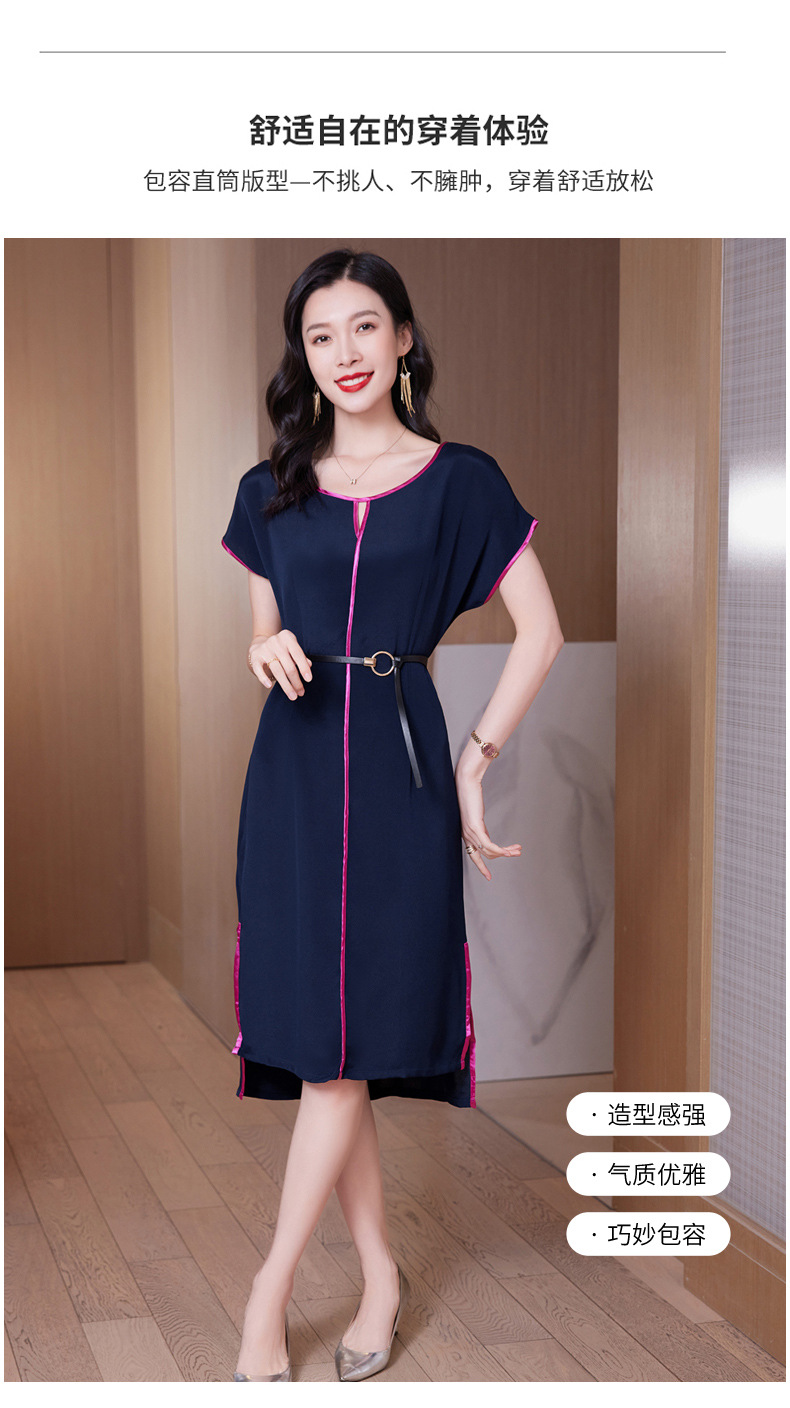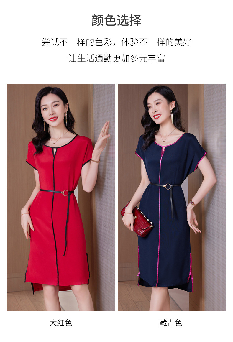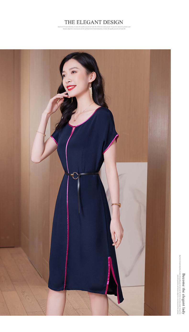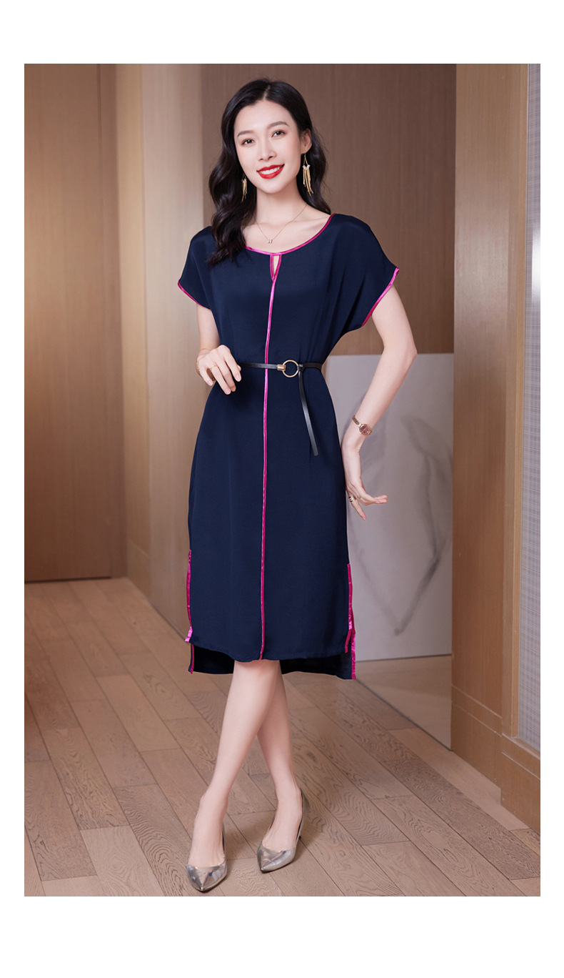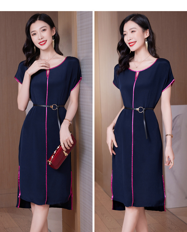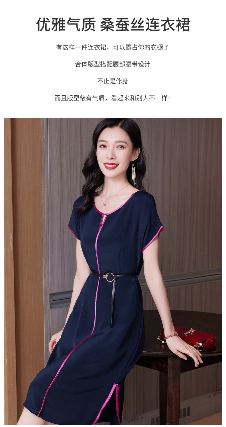 ASE 23035拼色桑蚕丝裙侧开叉修身真丝连衣裙