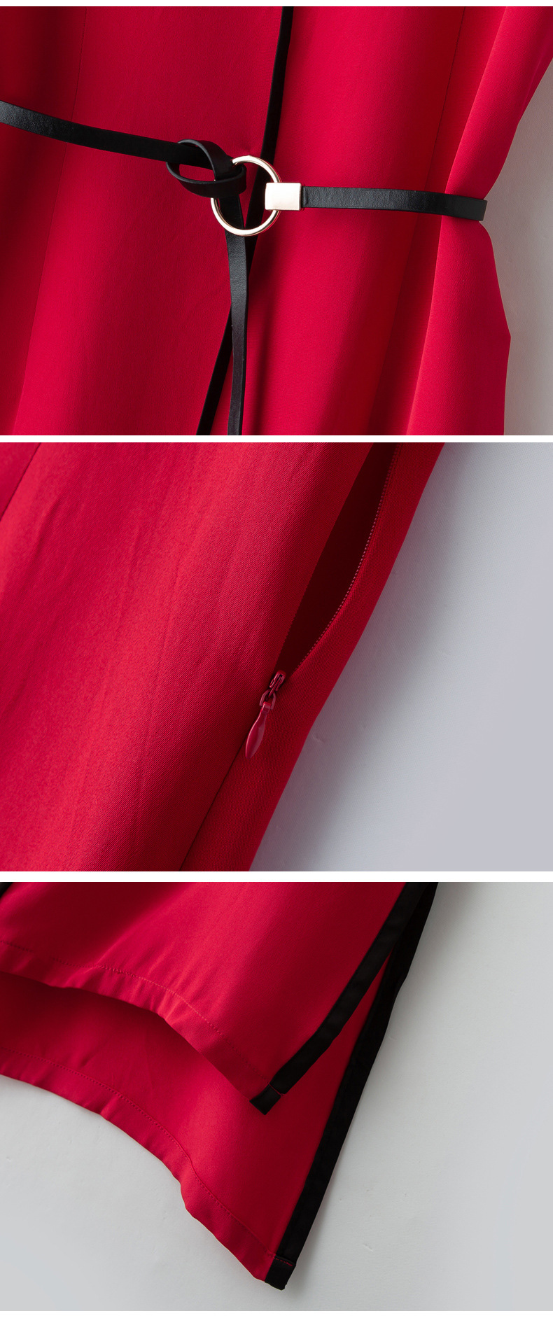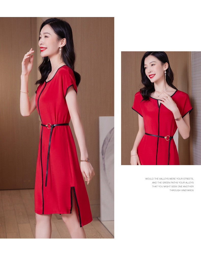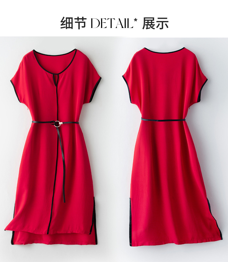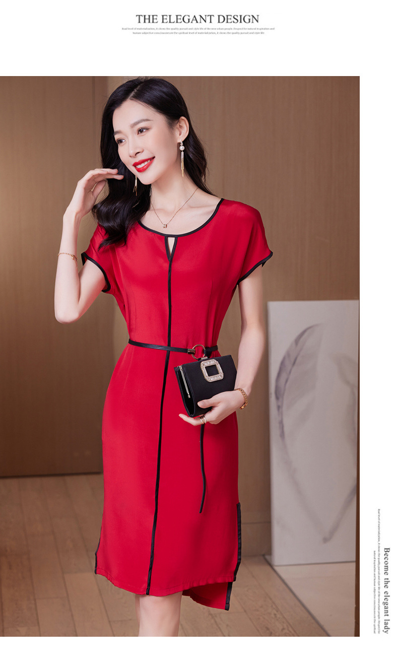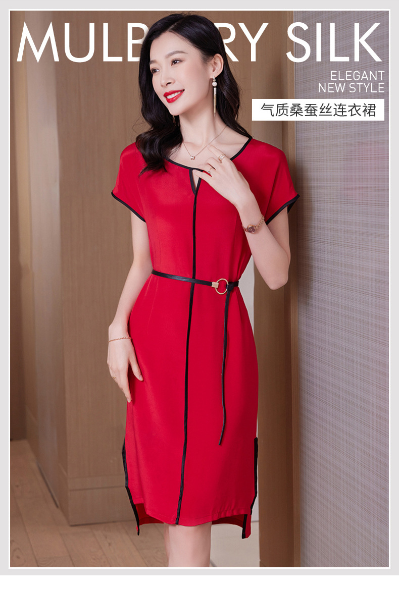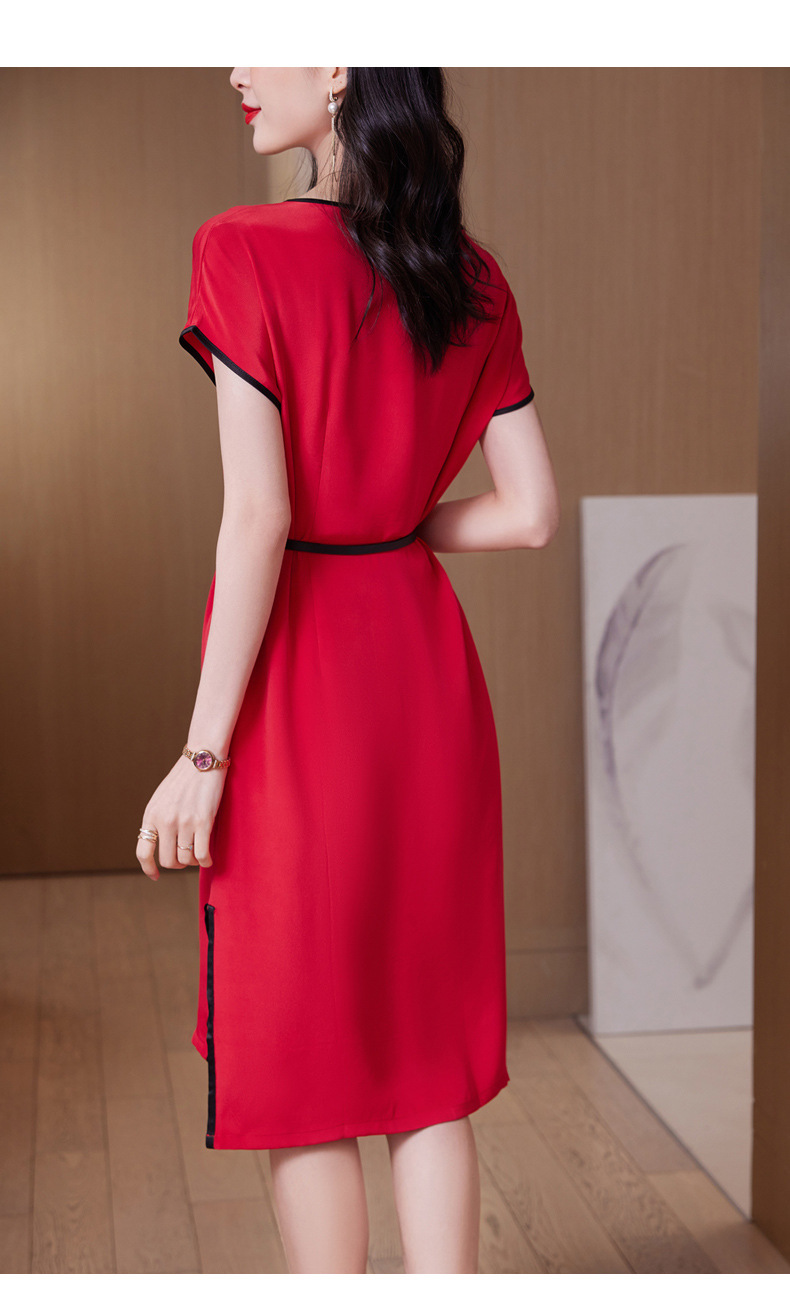 ASE 23035拼色桑蚕丝裙侧开叉修身真丝连衣裙