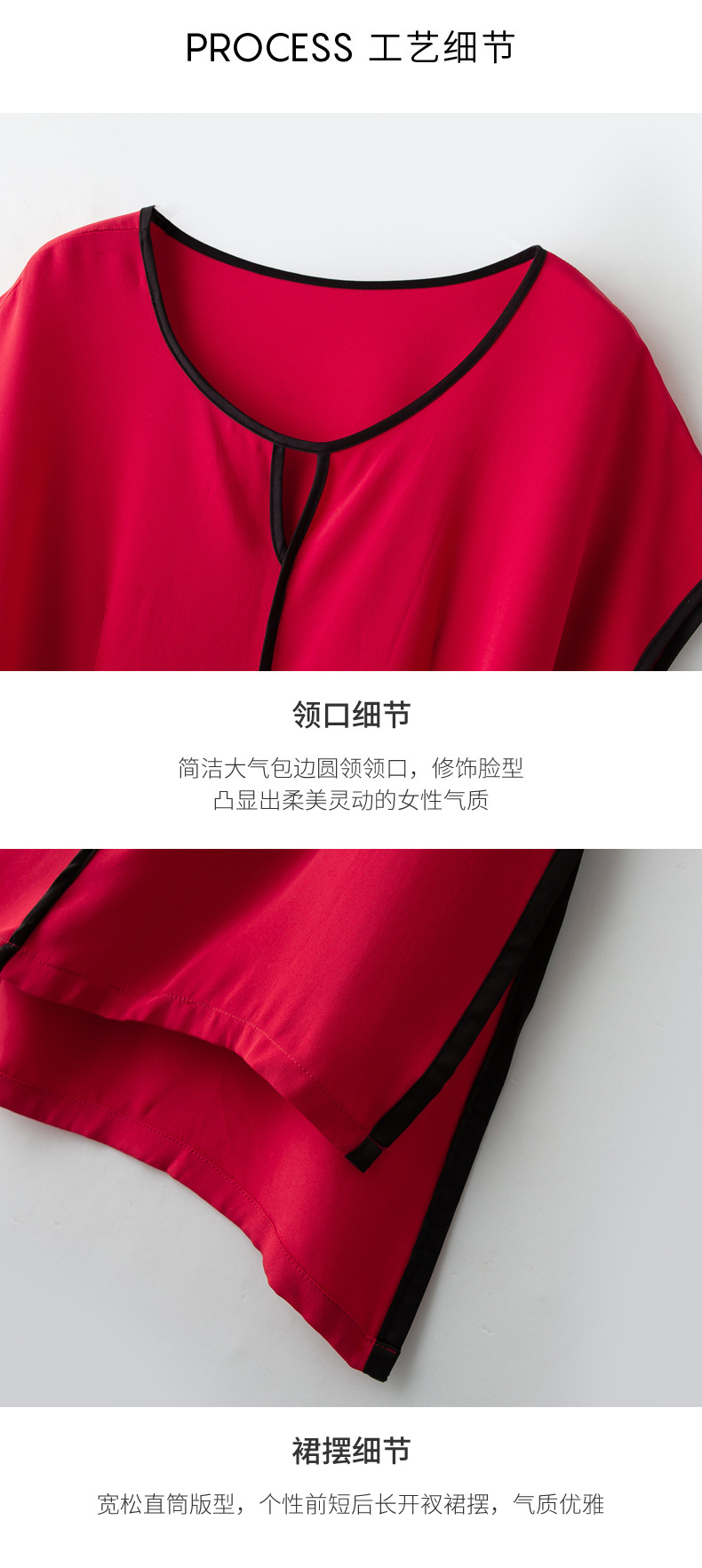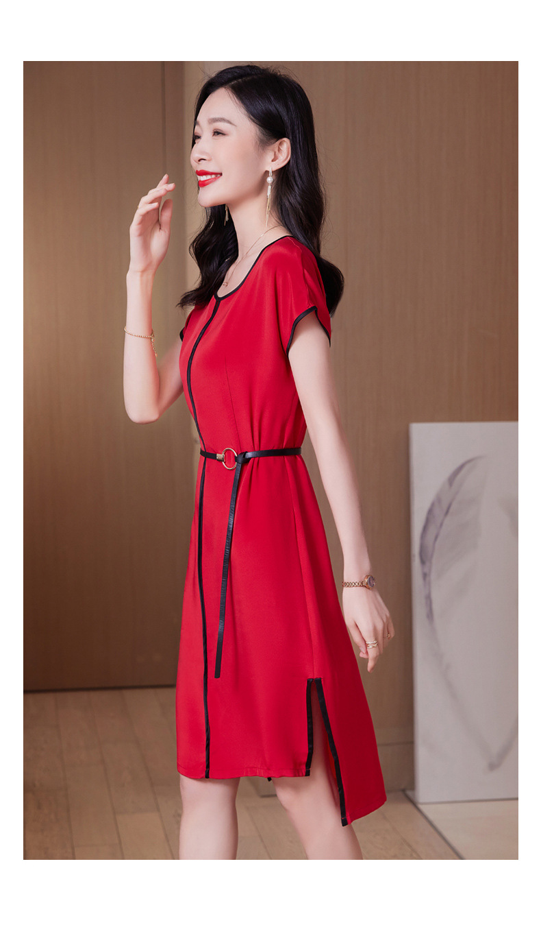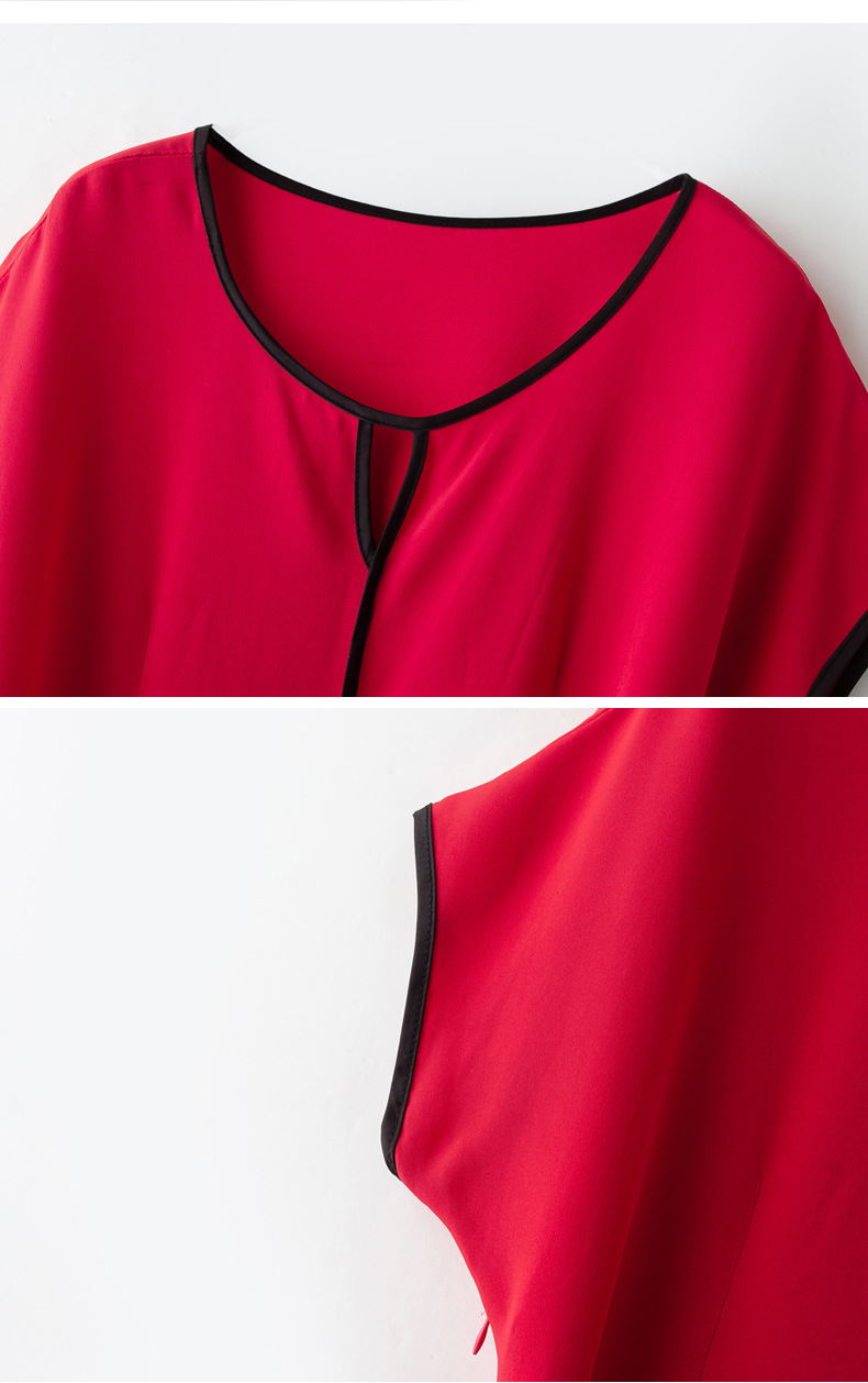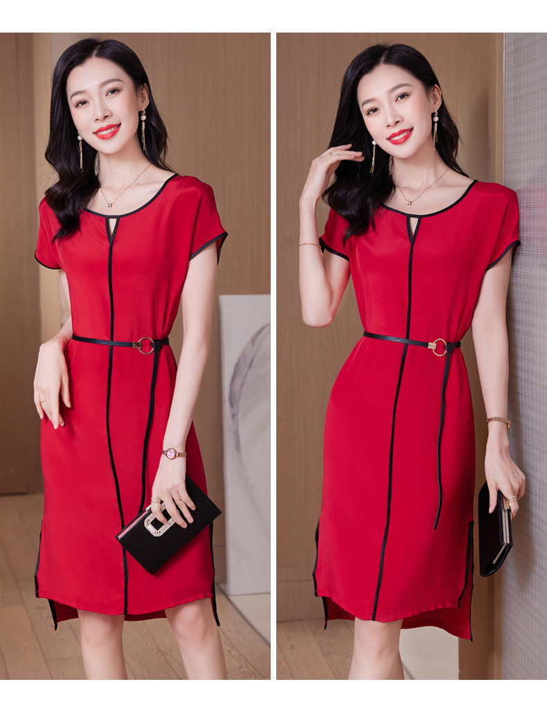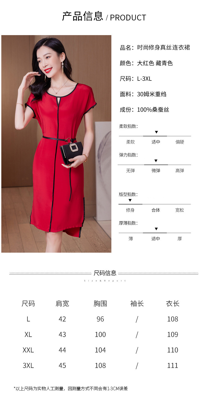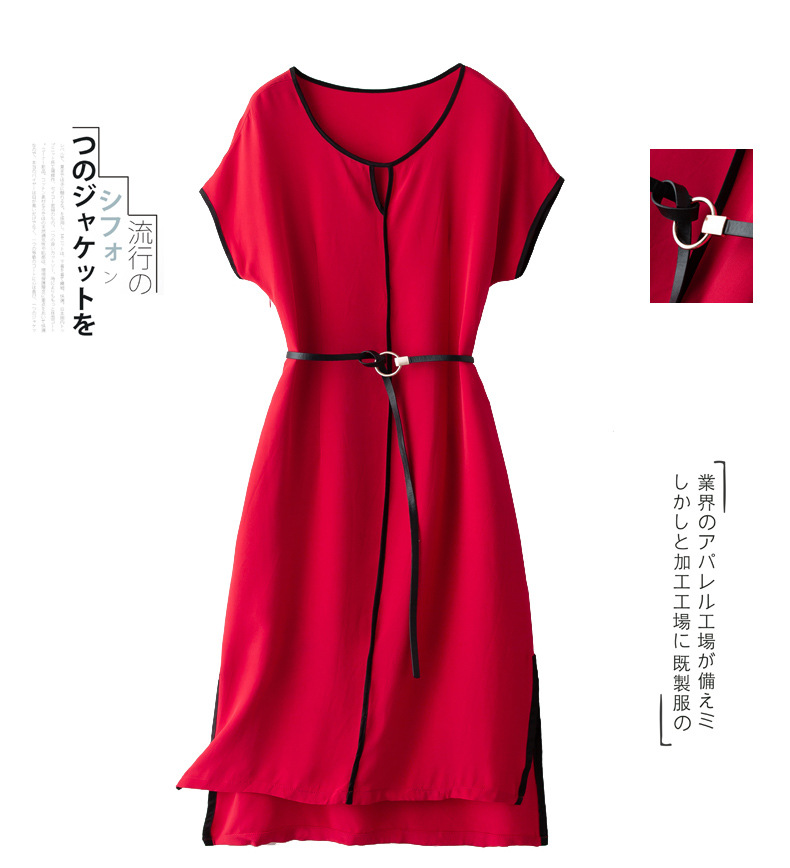 ASE 23035拼色桑蚕丝裙侧开叉修身真丝连衣裙
