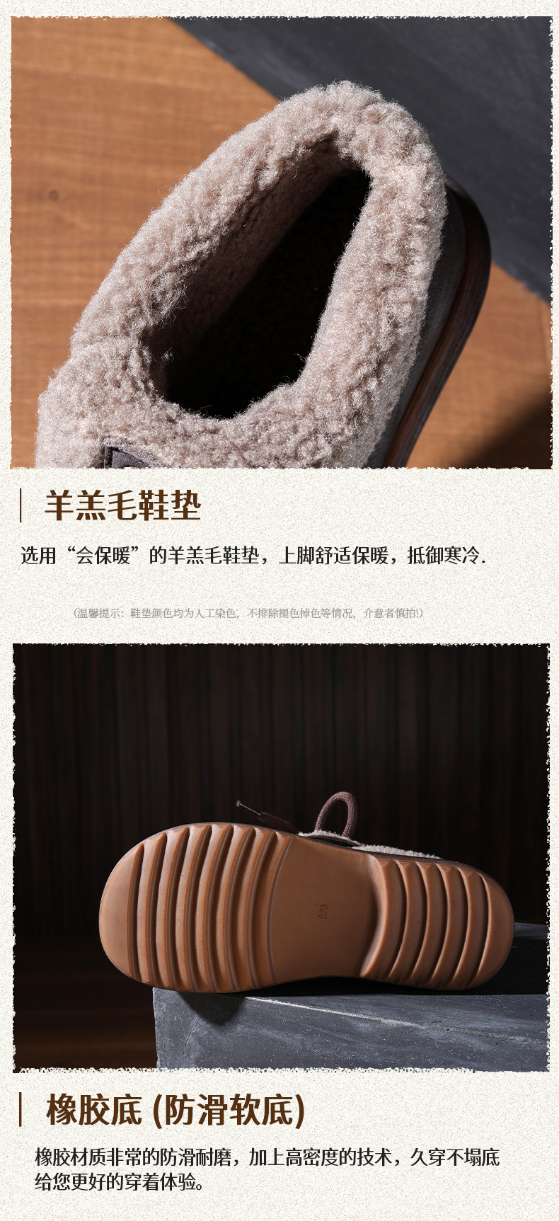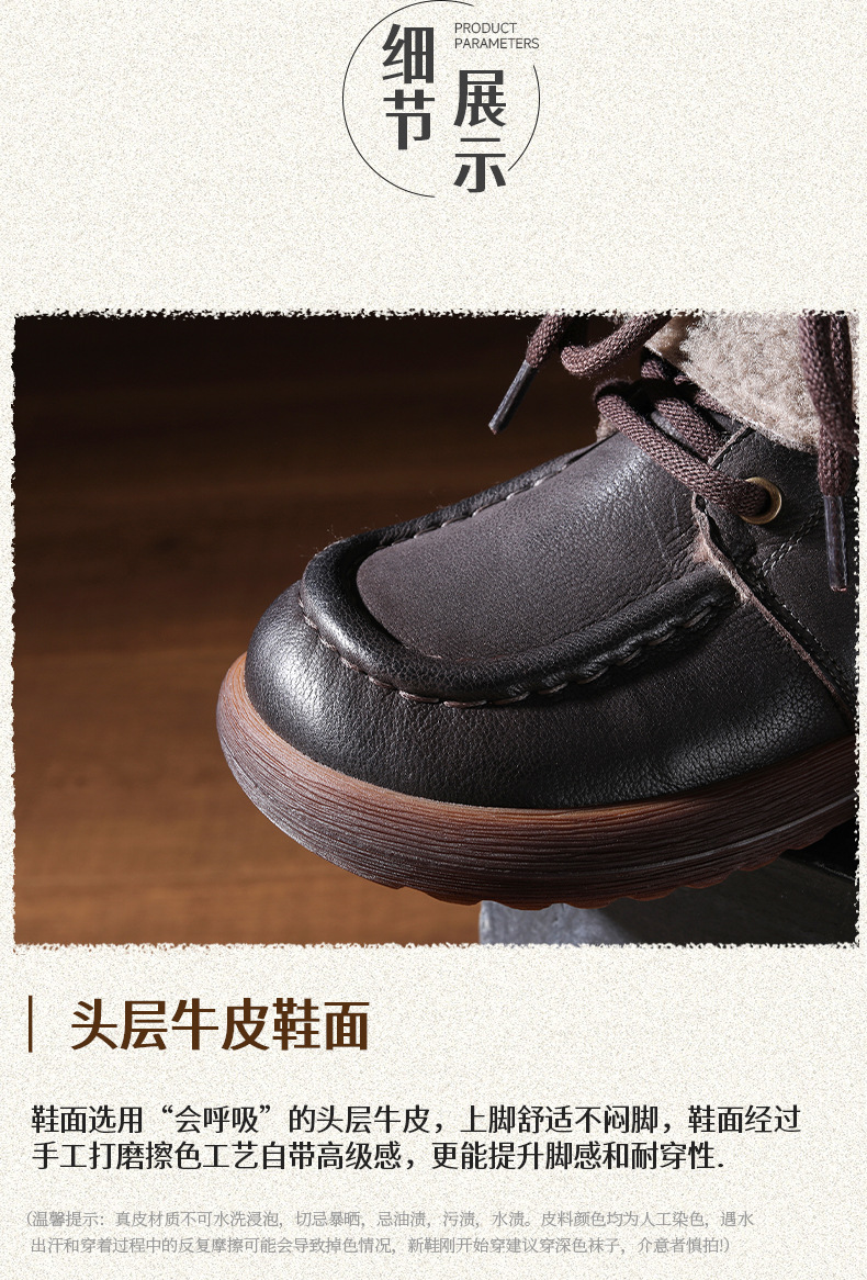 FR 85803头层牛皮雪地靴保暖防滑羊羔毛两穿复古短靴 商品图3