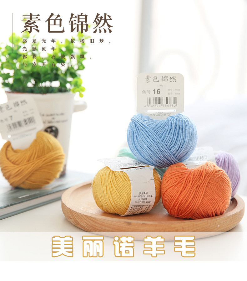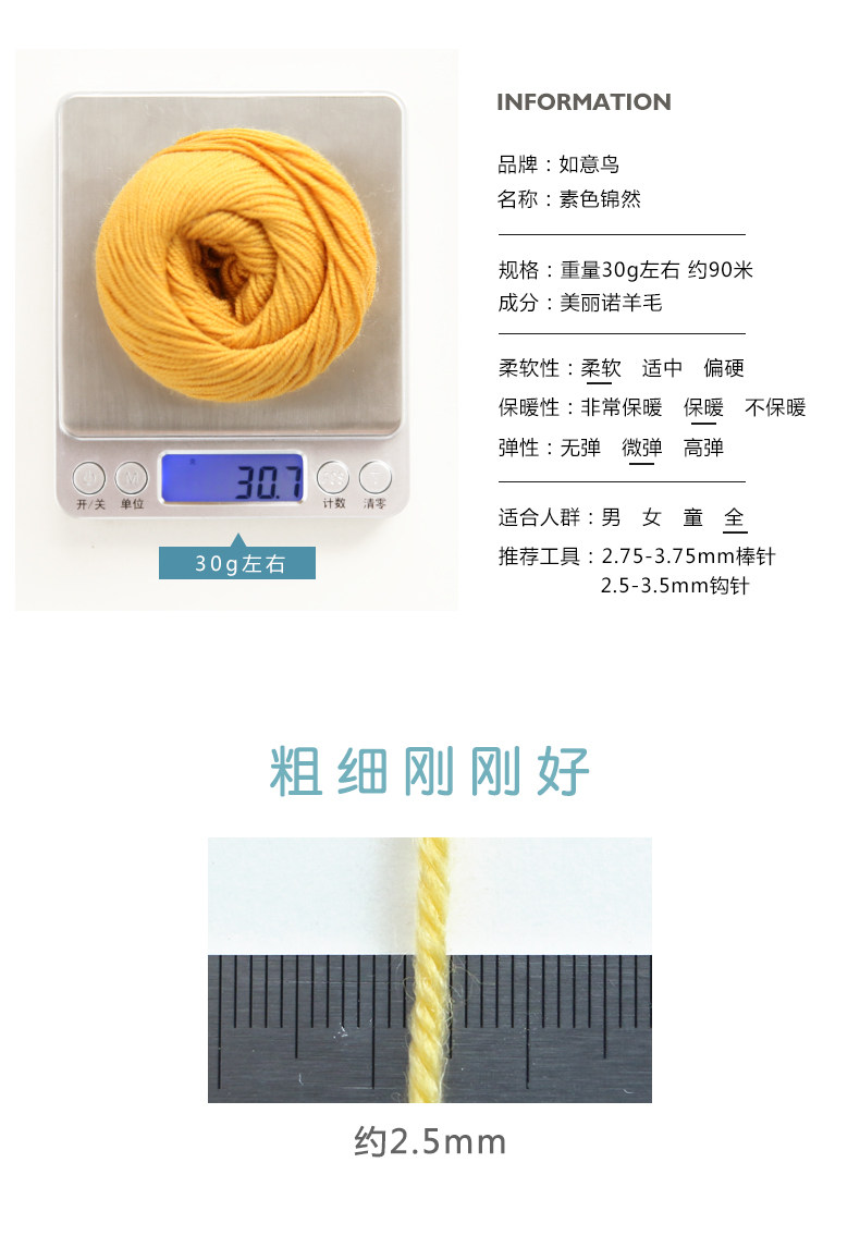 如意鸟 素色锦然美丽诺羊毛线手工diy编织毛线