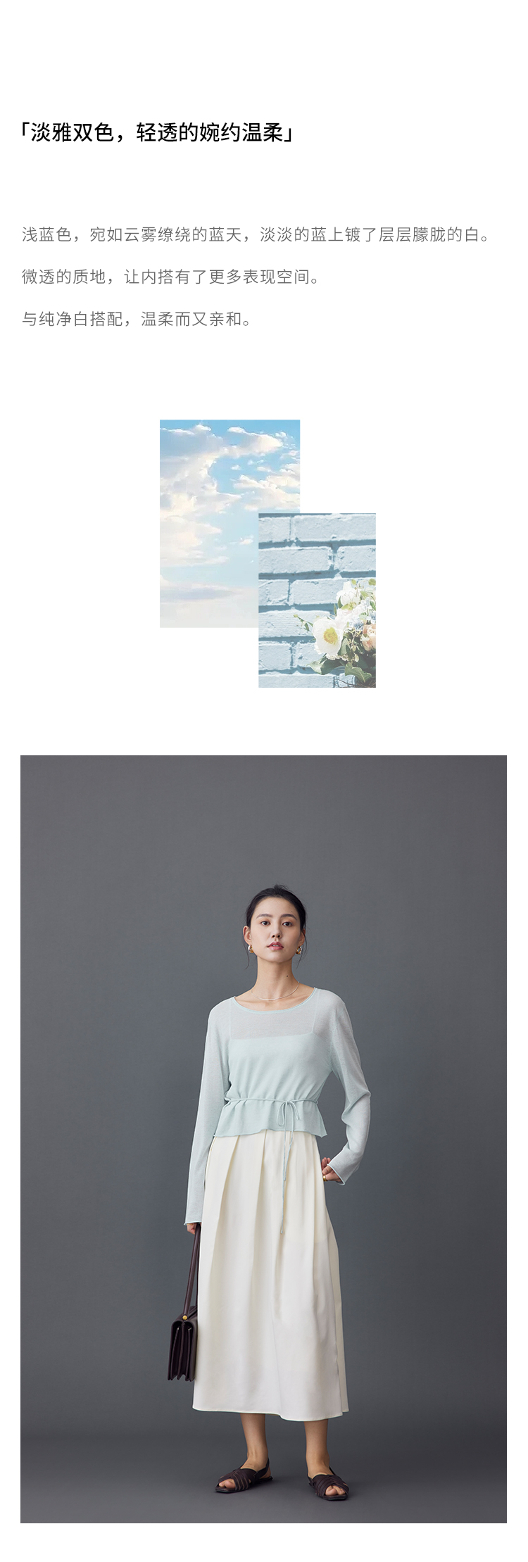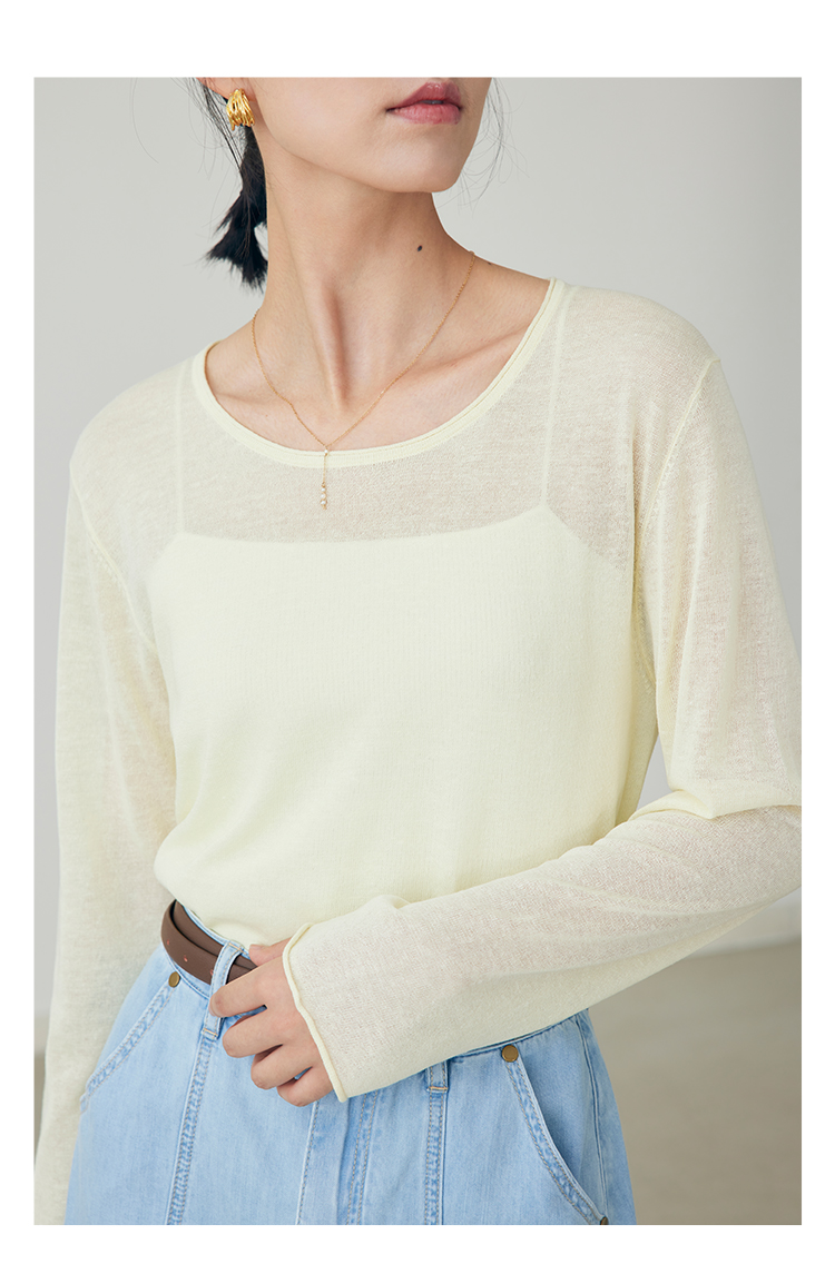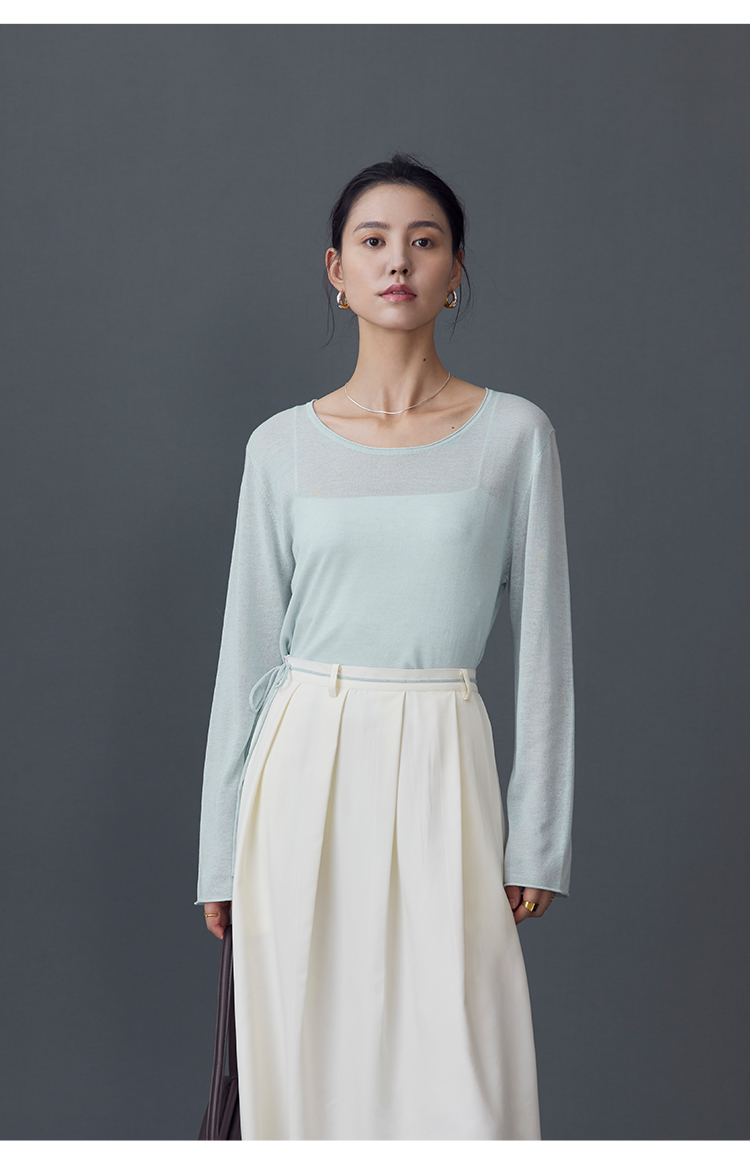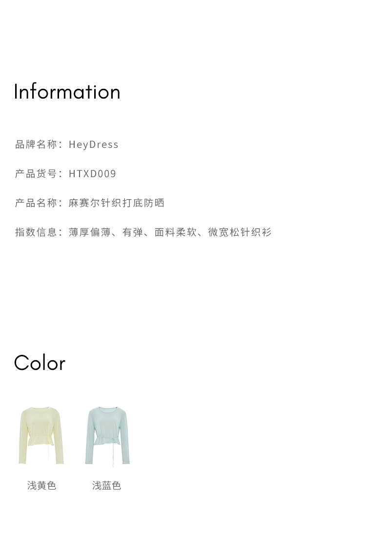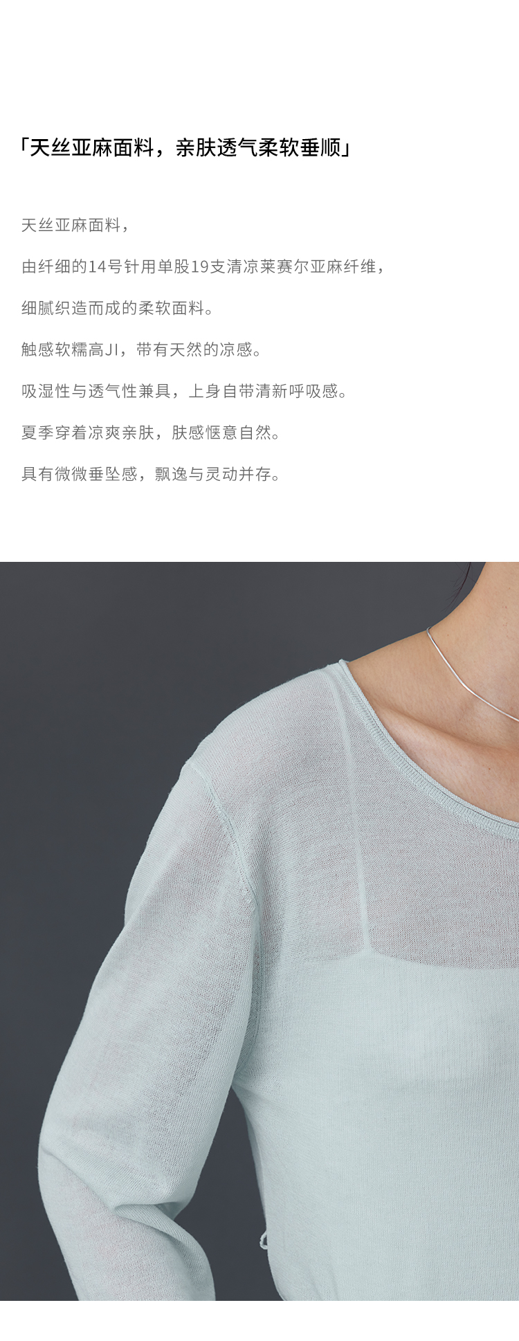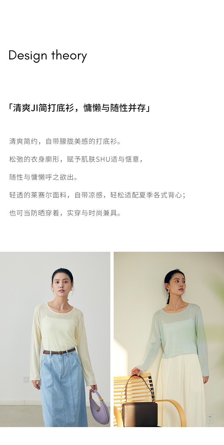 HeyDress天丝针织防晒衫女夏季法式圆领打底罩衫收腰设计感上衣