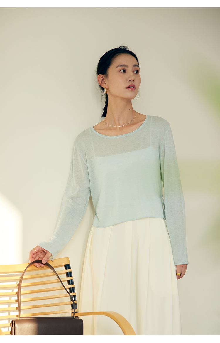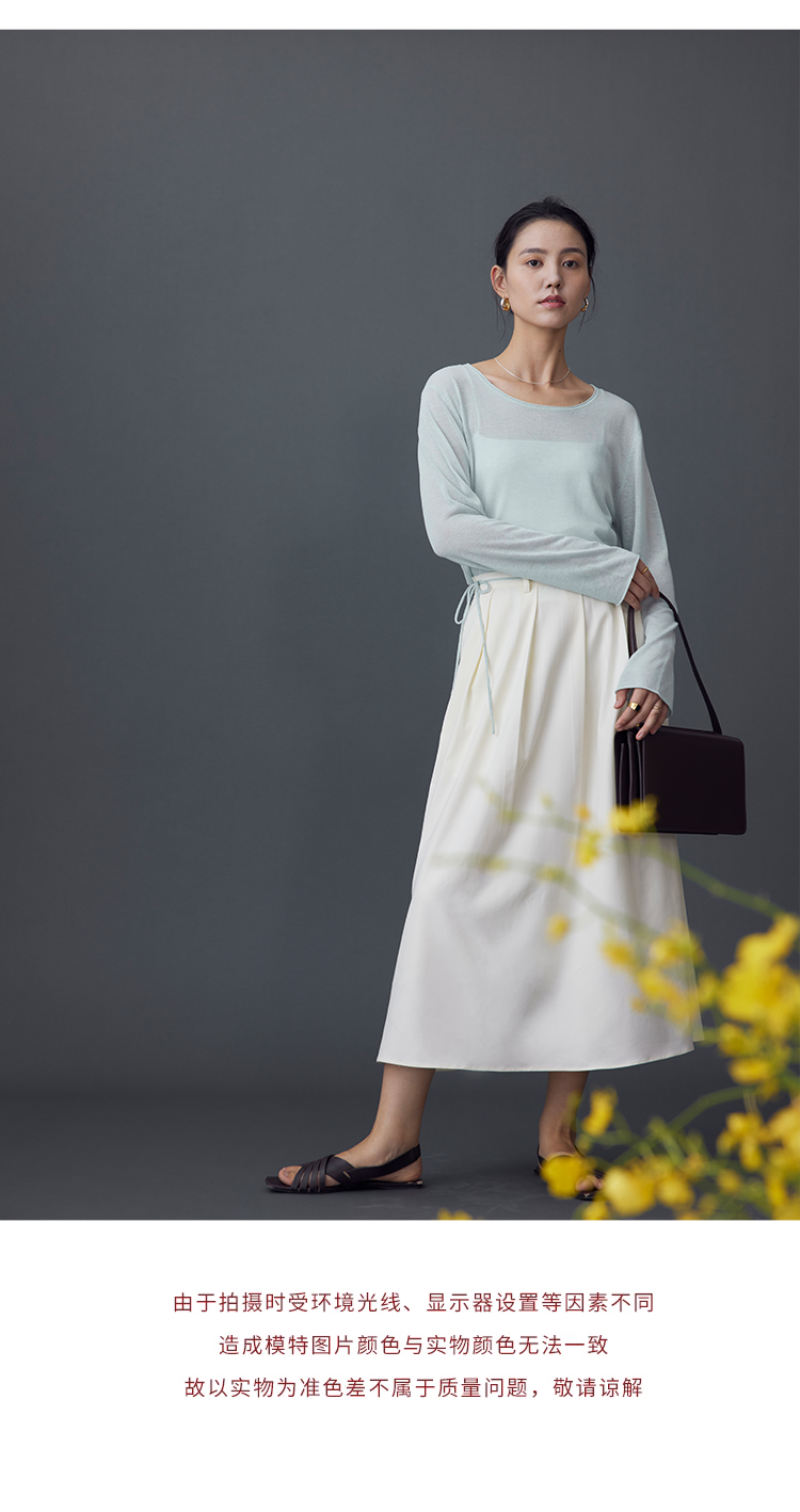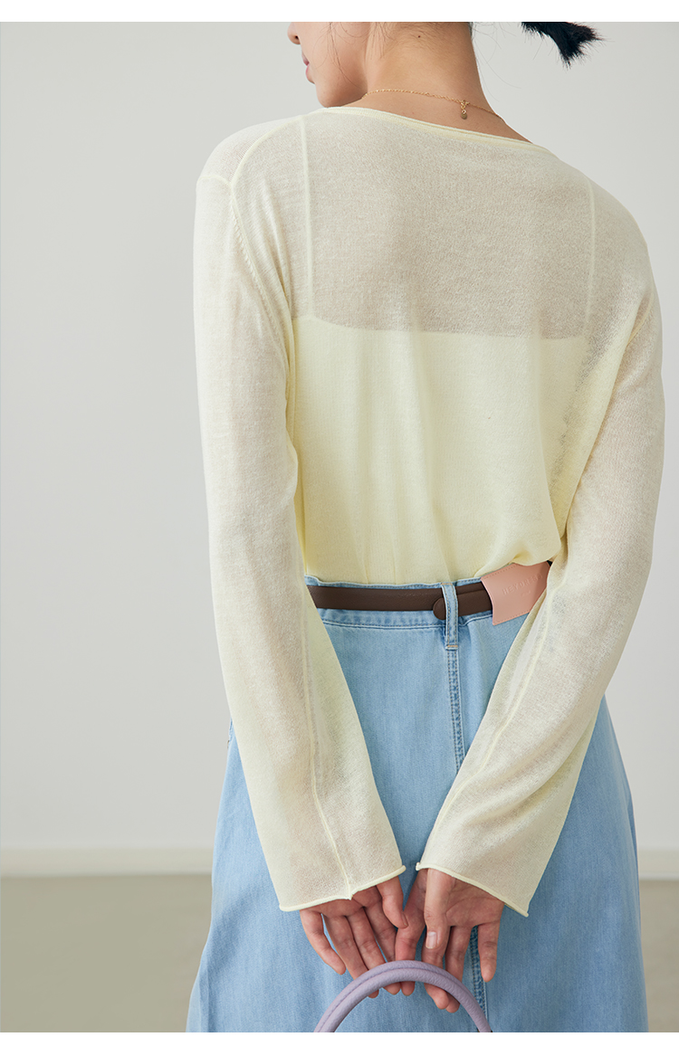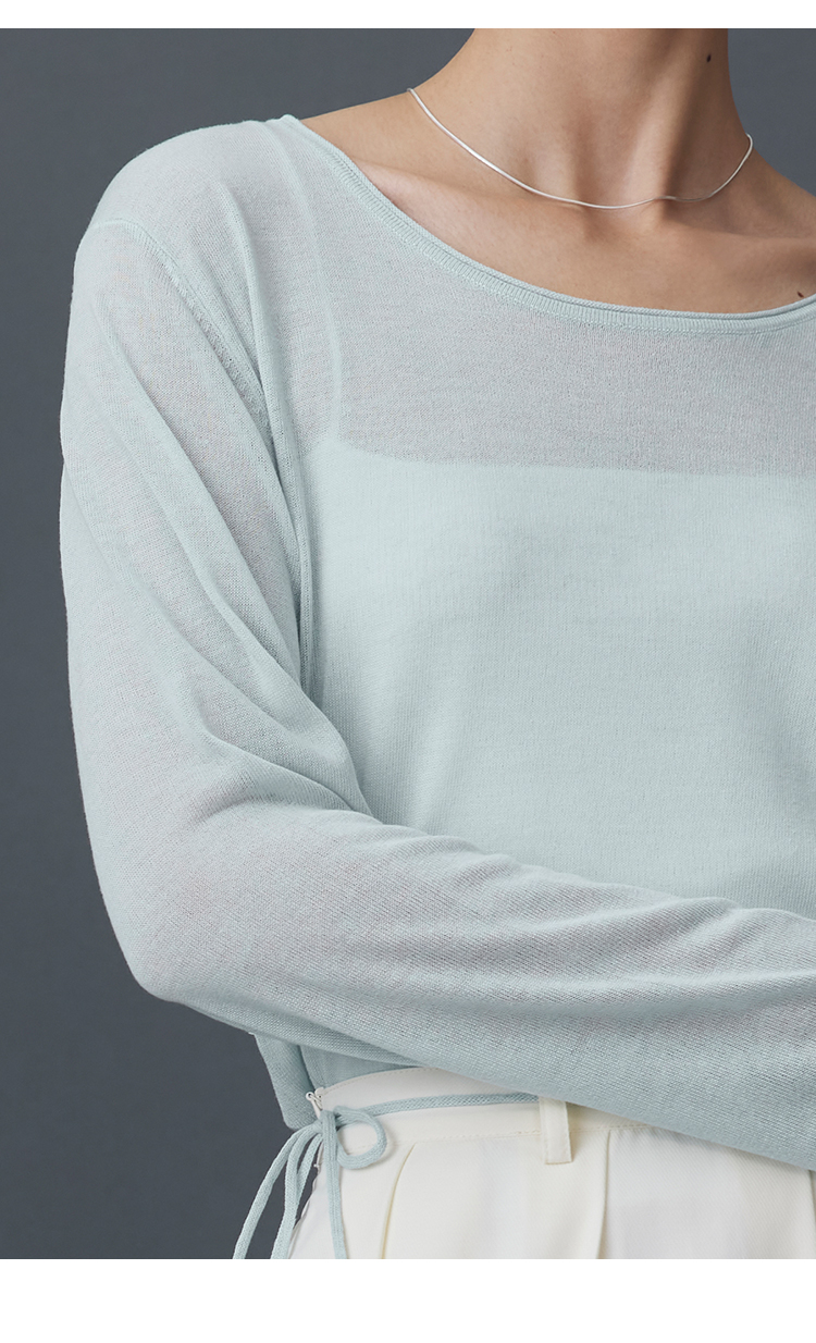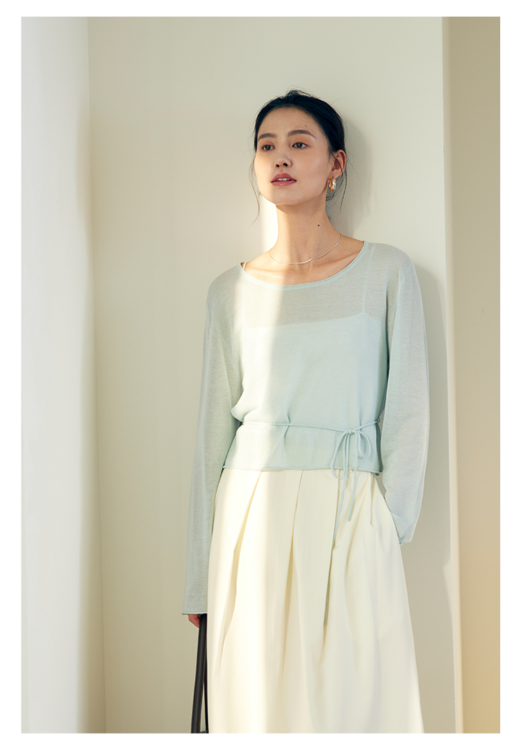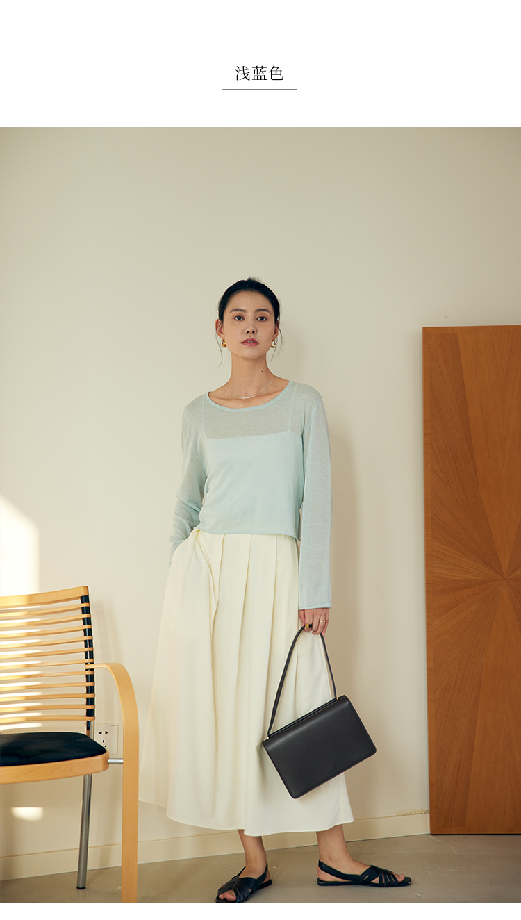 HeyDress天丝针织防晒衫女夏季法式圆领打底罩衫收腰设计感上衣