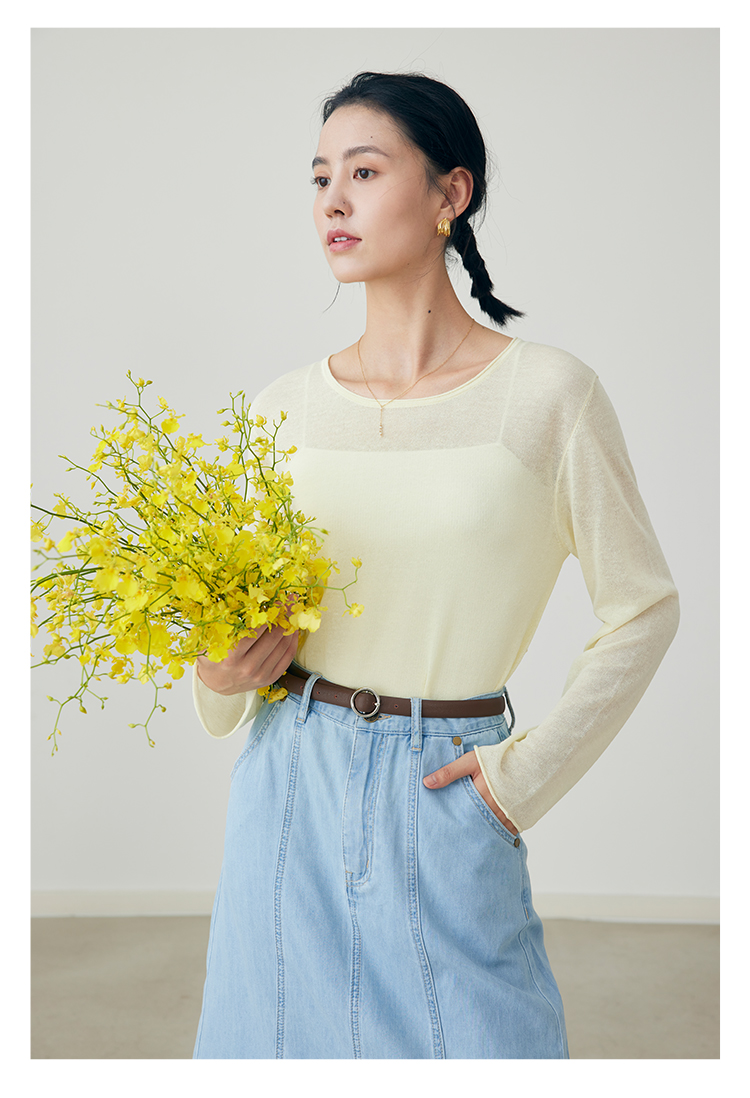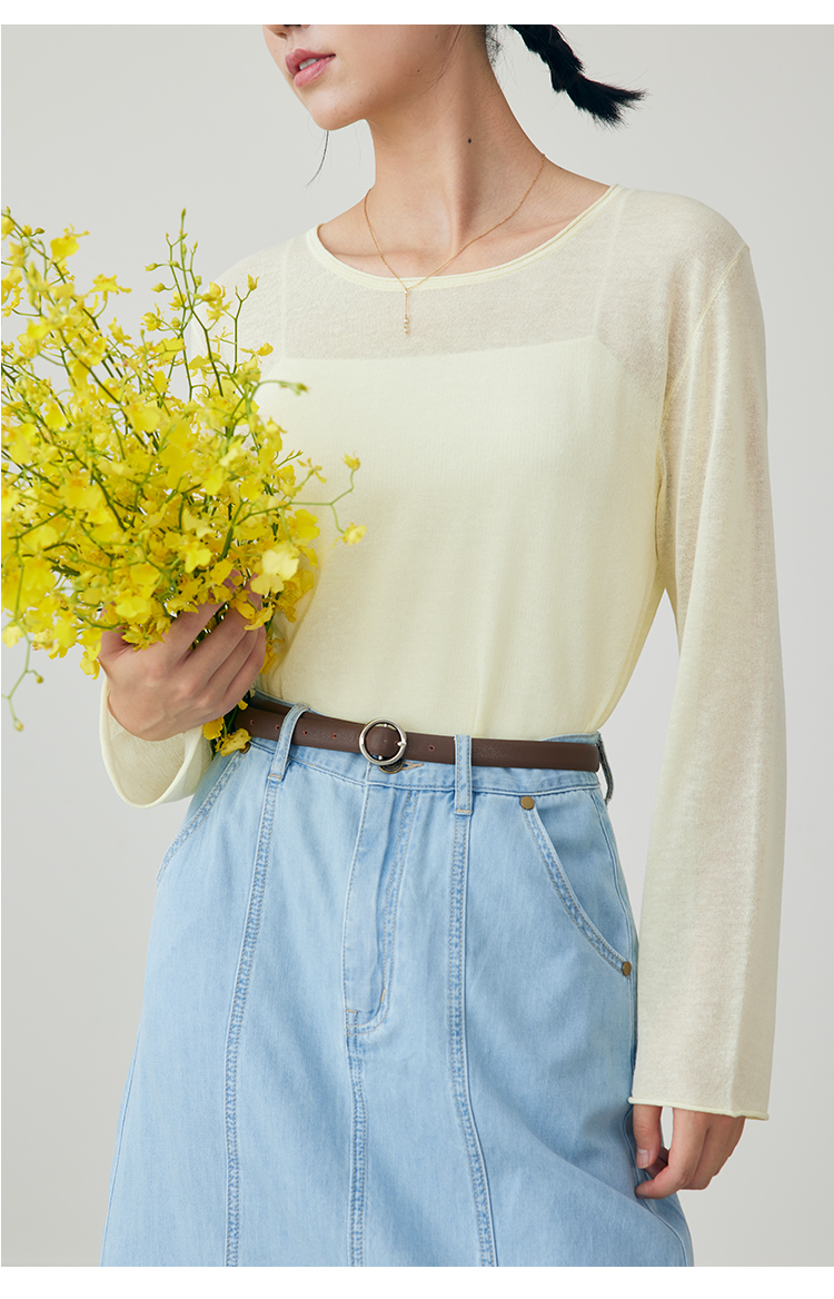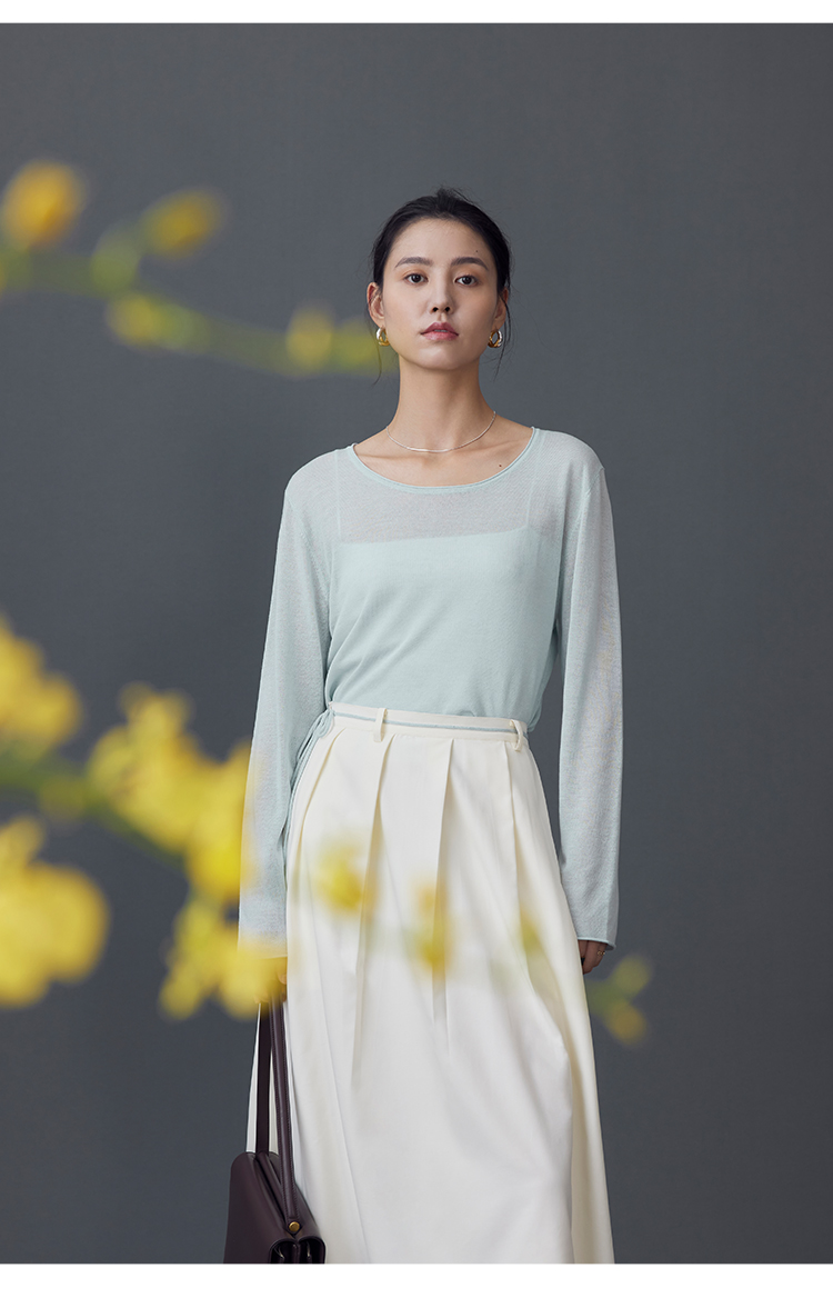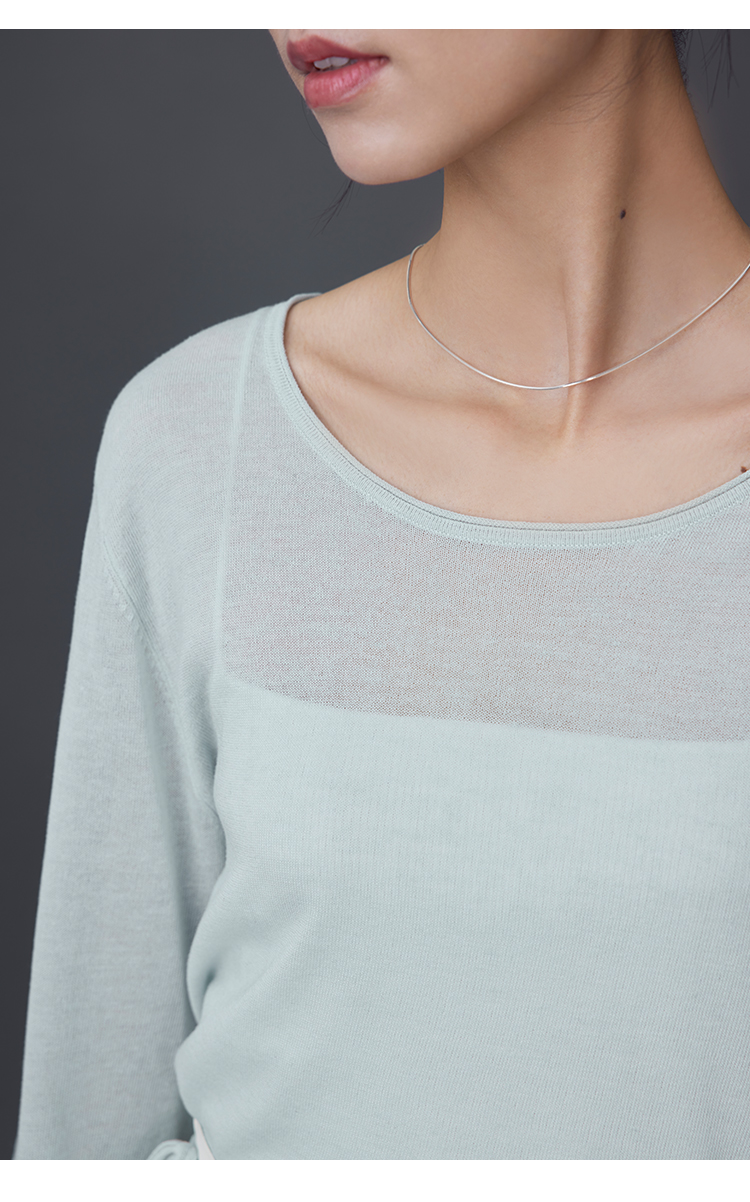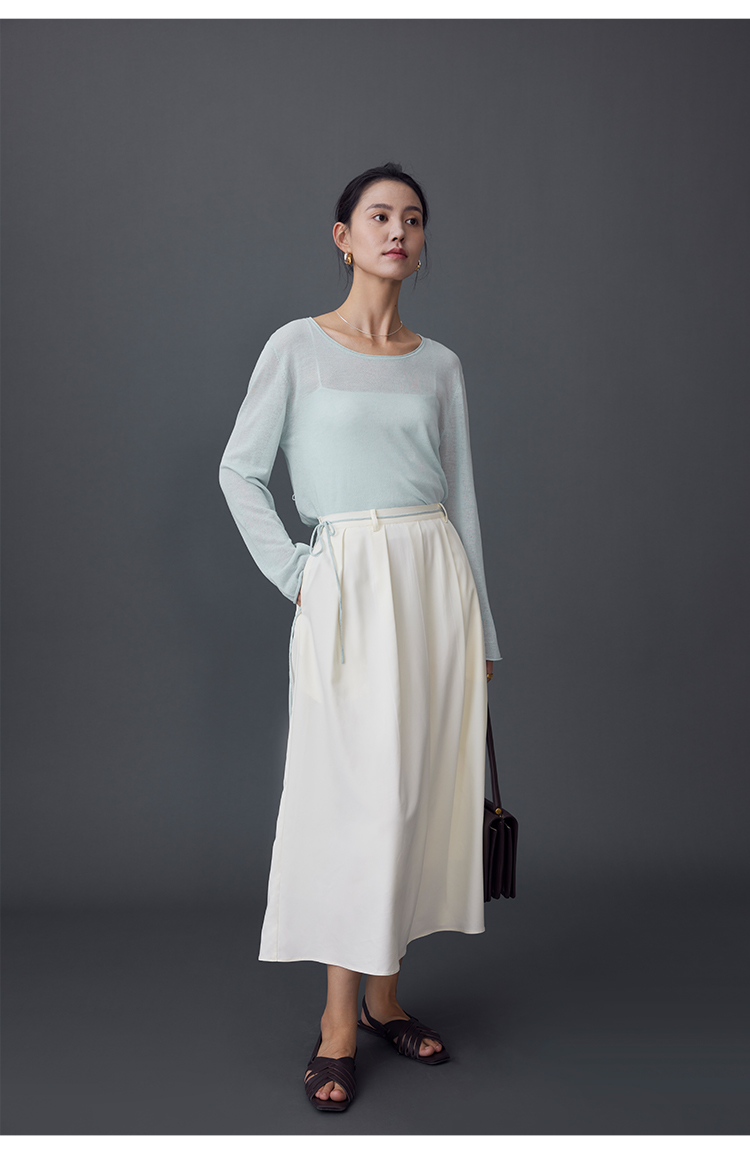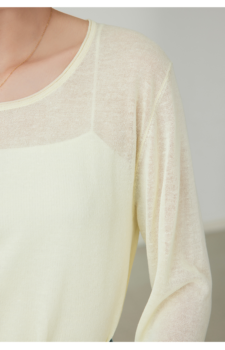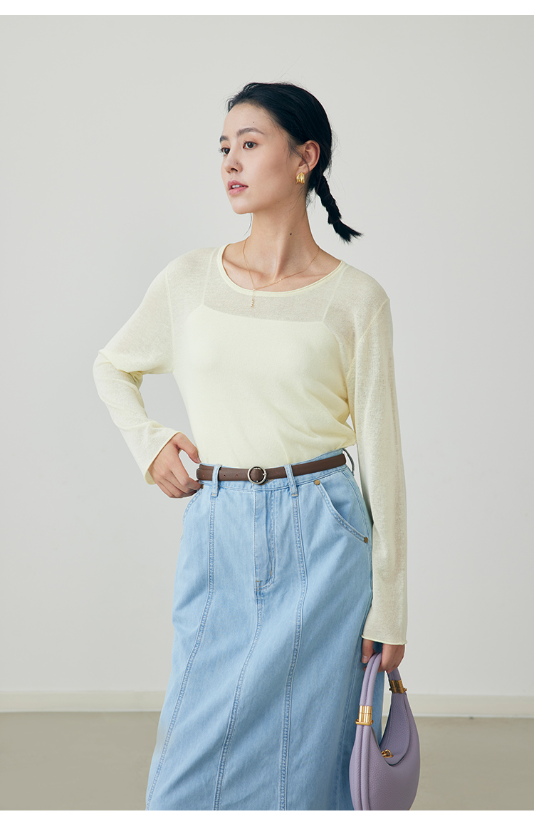 HeyDress天丝针织防晒衫女夏季法式圆领打底罩衫收腰设计感上衣
