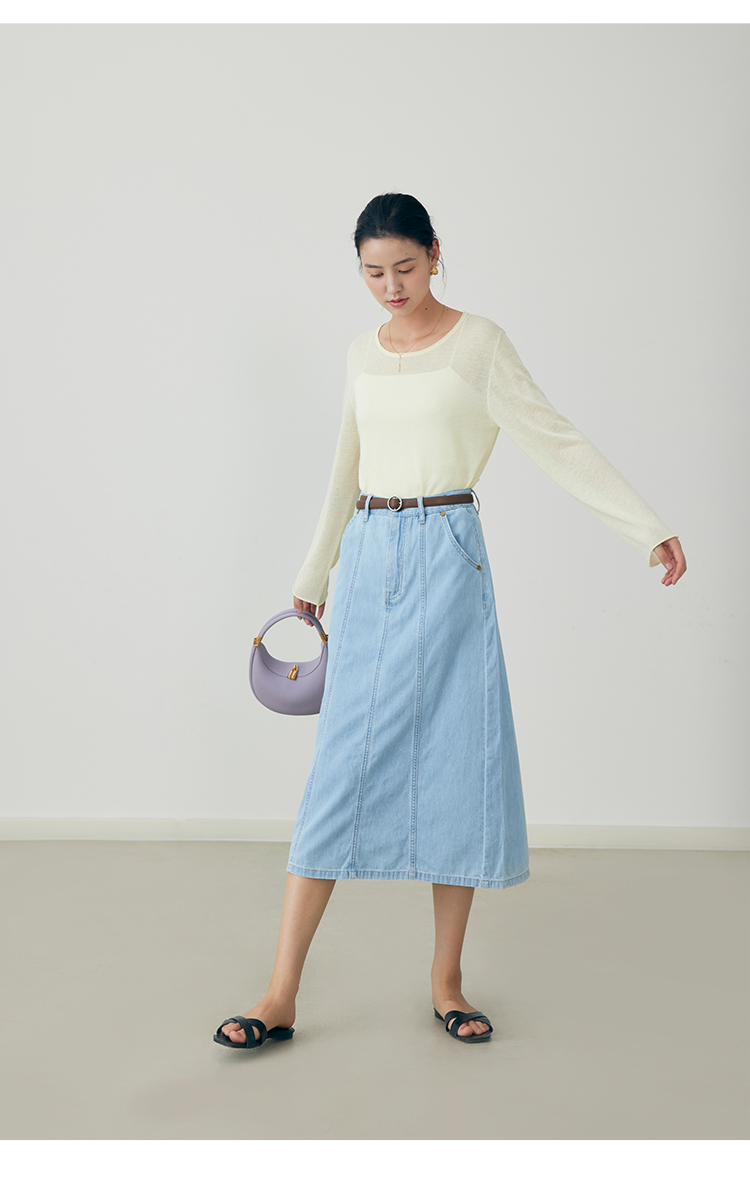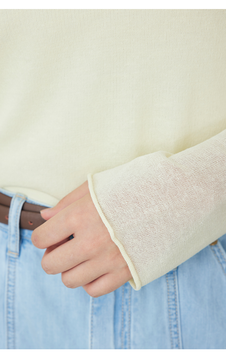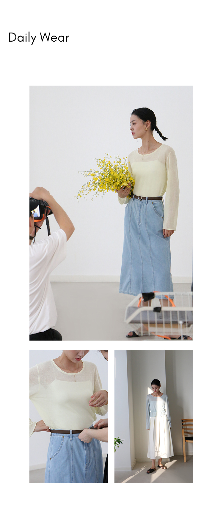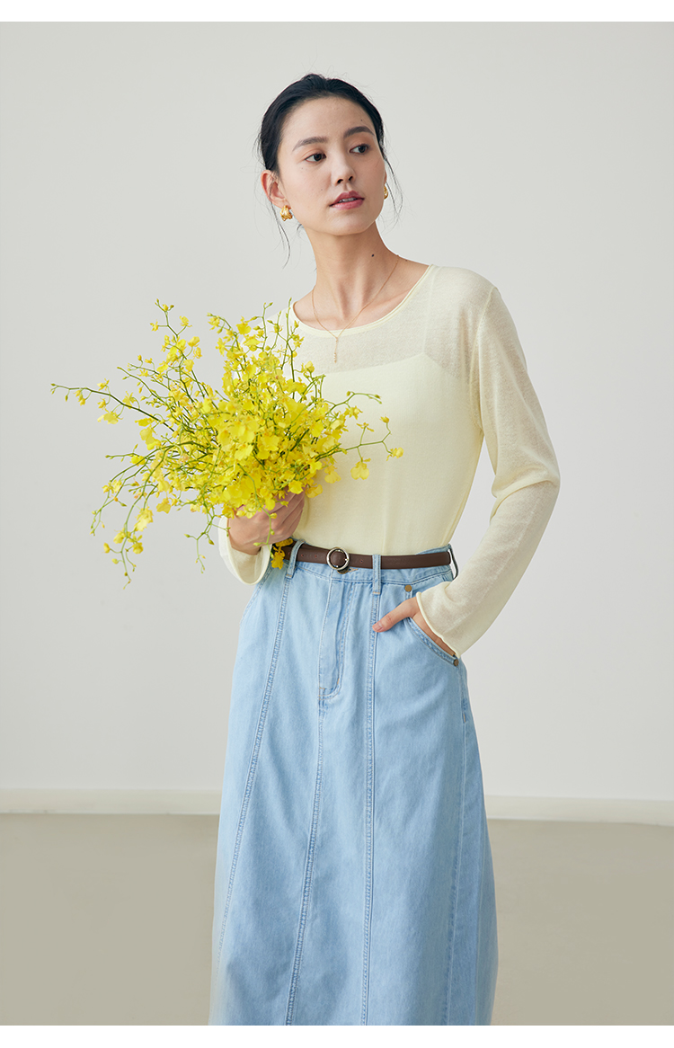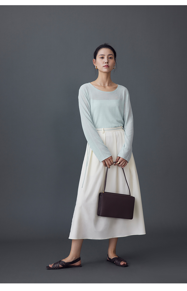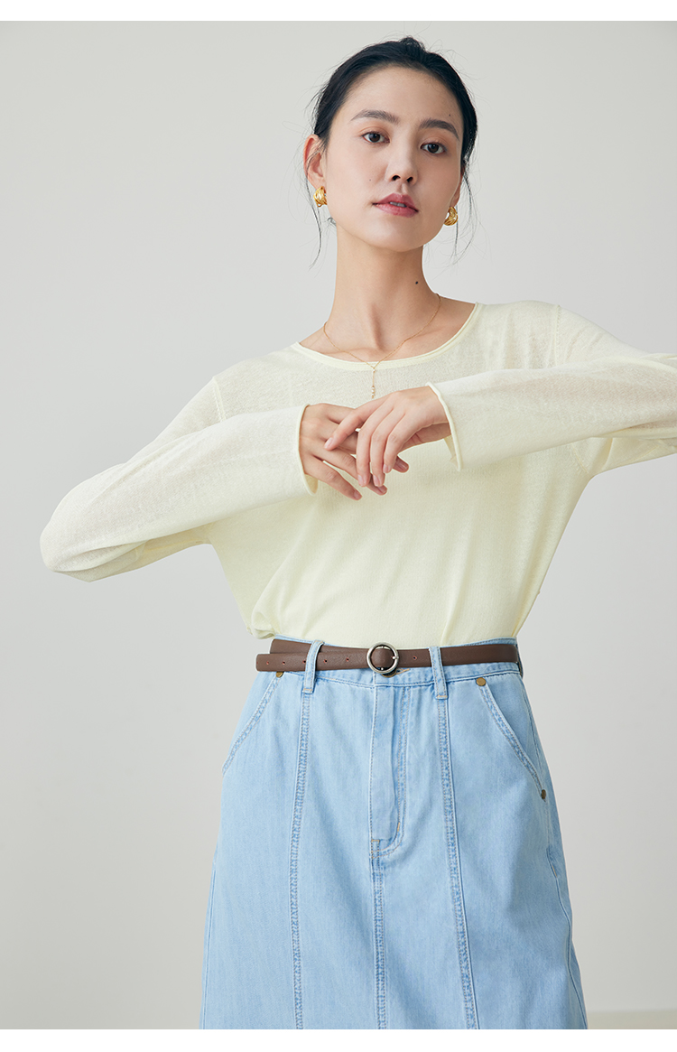 HeyDress天丝针织防晒衫女夏季法式圆领打底罩衫收腰设计感上衣