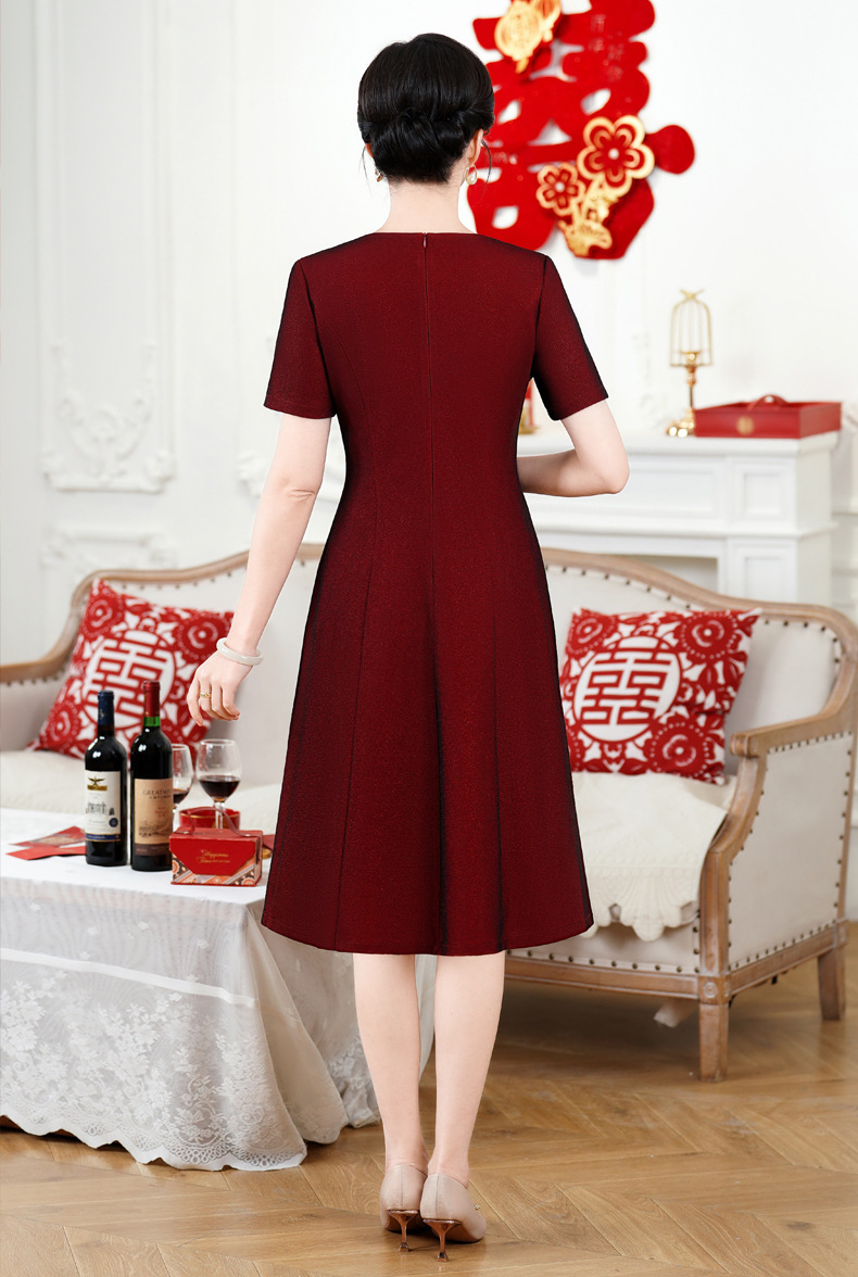 TQ8857 2025春新款妈妈装 腰部压褶钉珠酒红喜婆婆婚庆婚宴礼服 商品图0