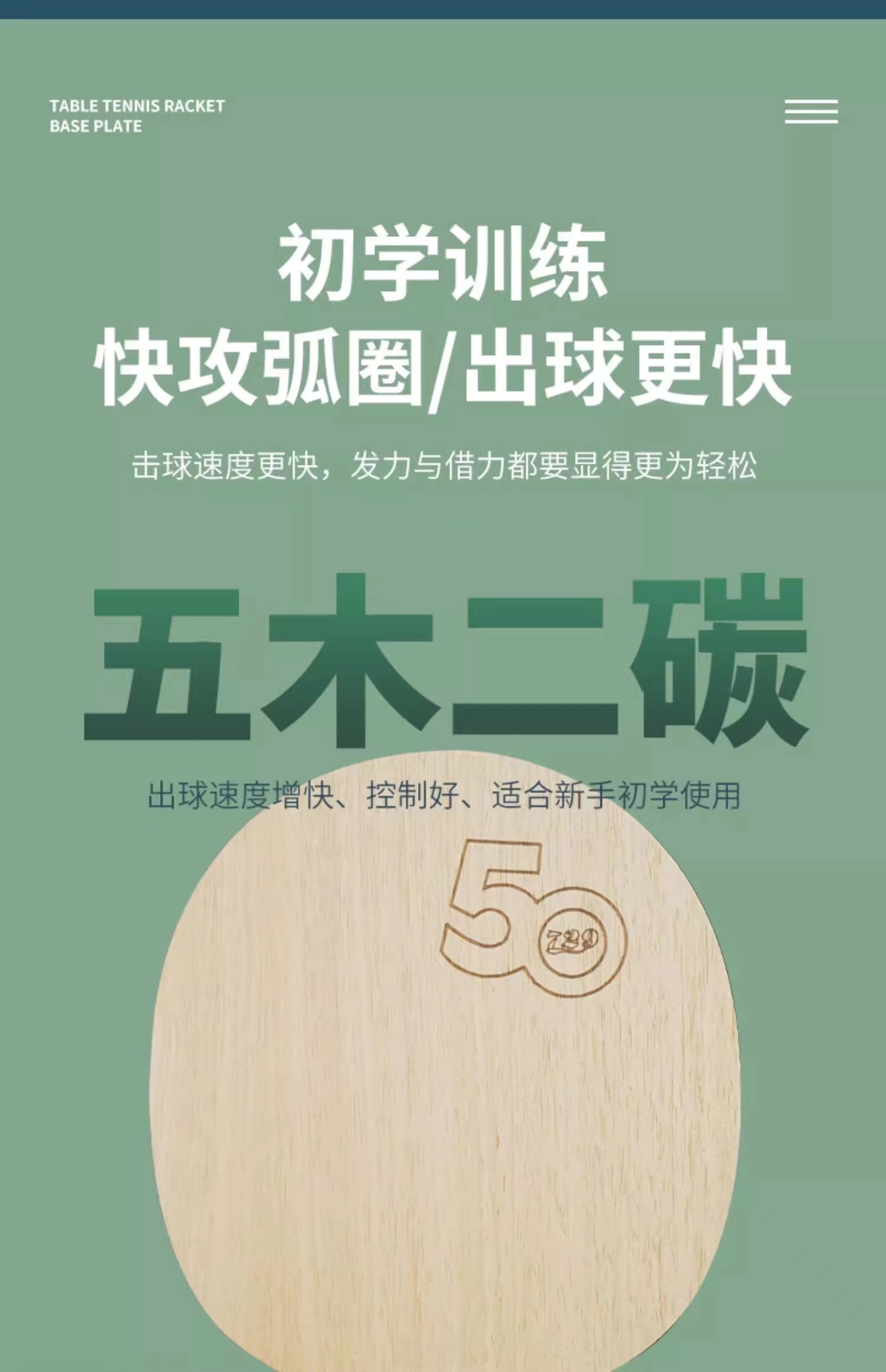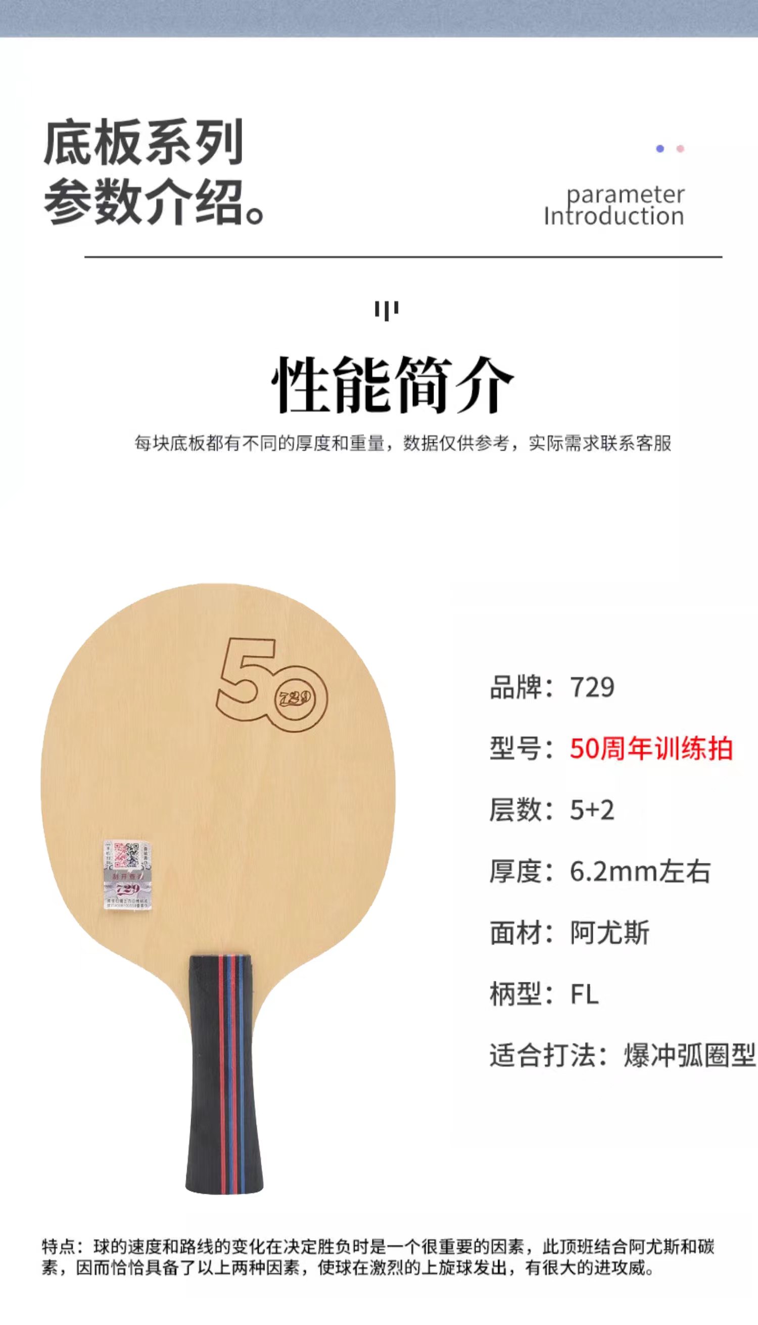 友谊729 少训50周年7层碳素兵乓球底板直横