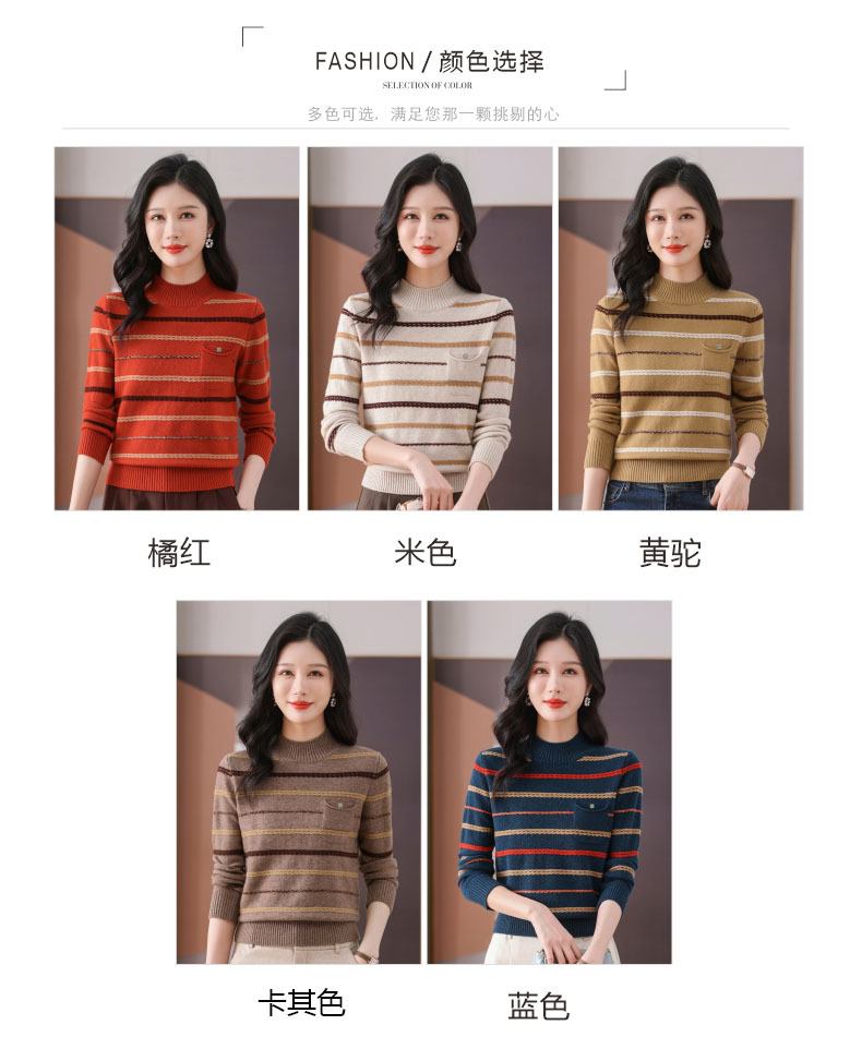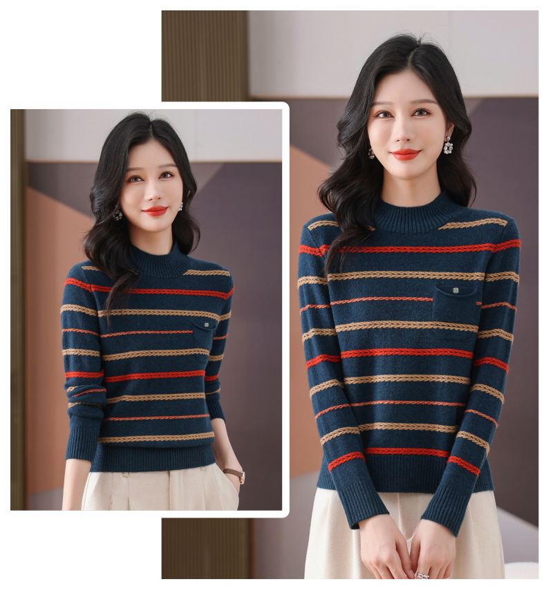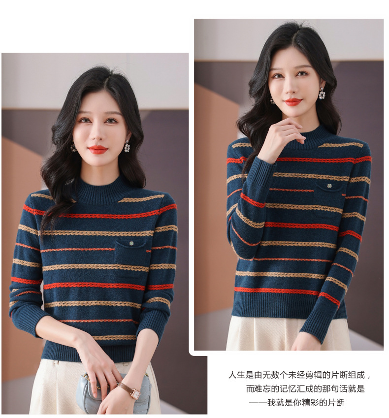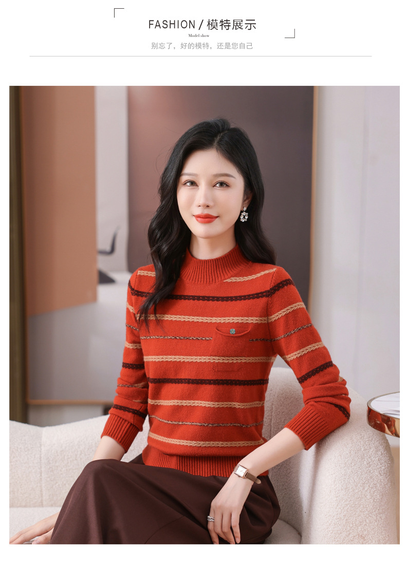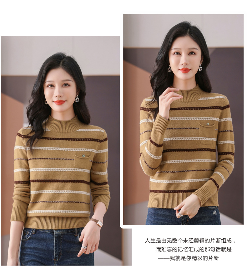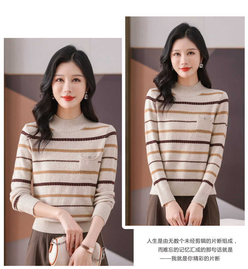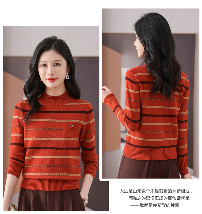 CC-101-59053半高领条纹打底女秋冬新款洋气羊毛针织内搭小上衣厚款短款毛衣女