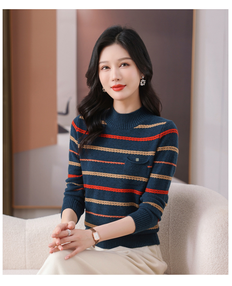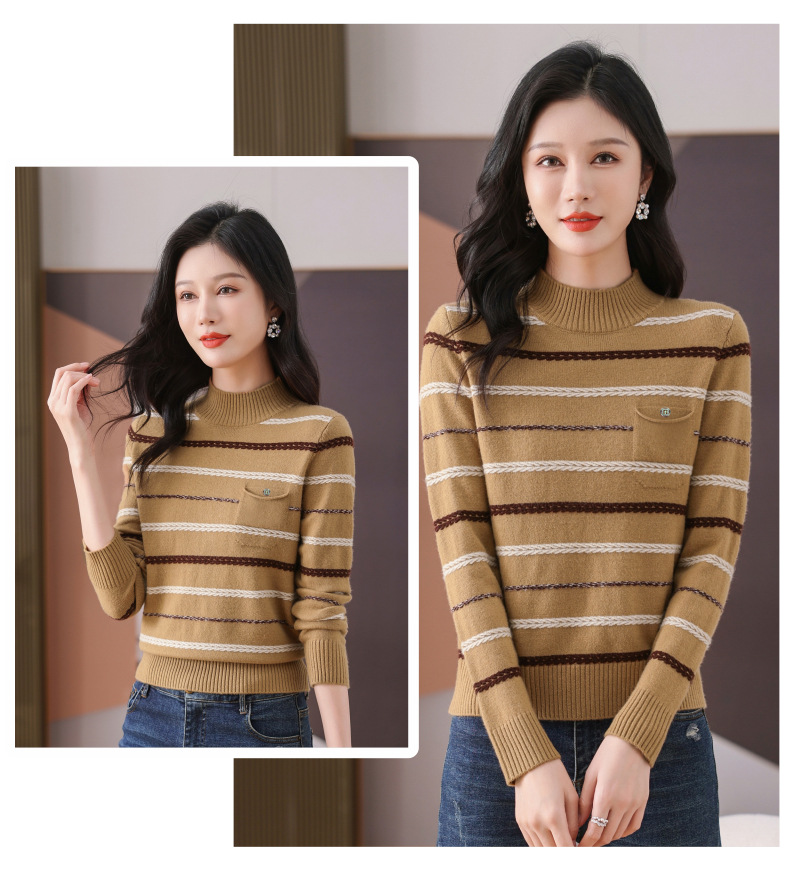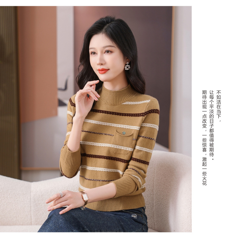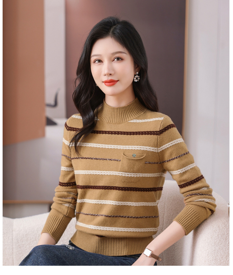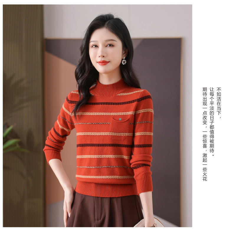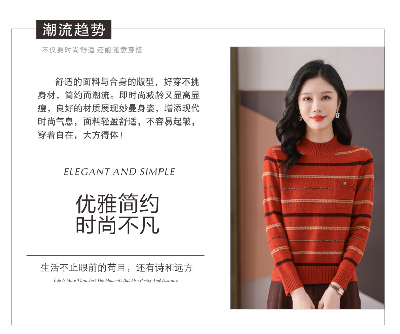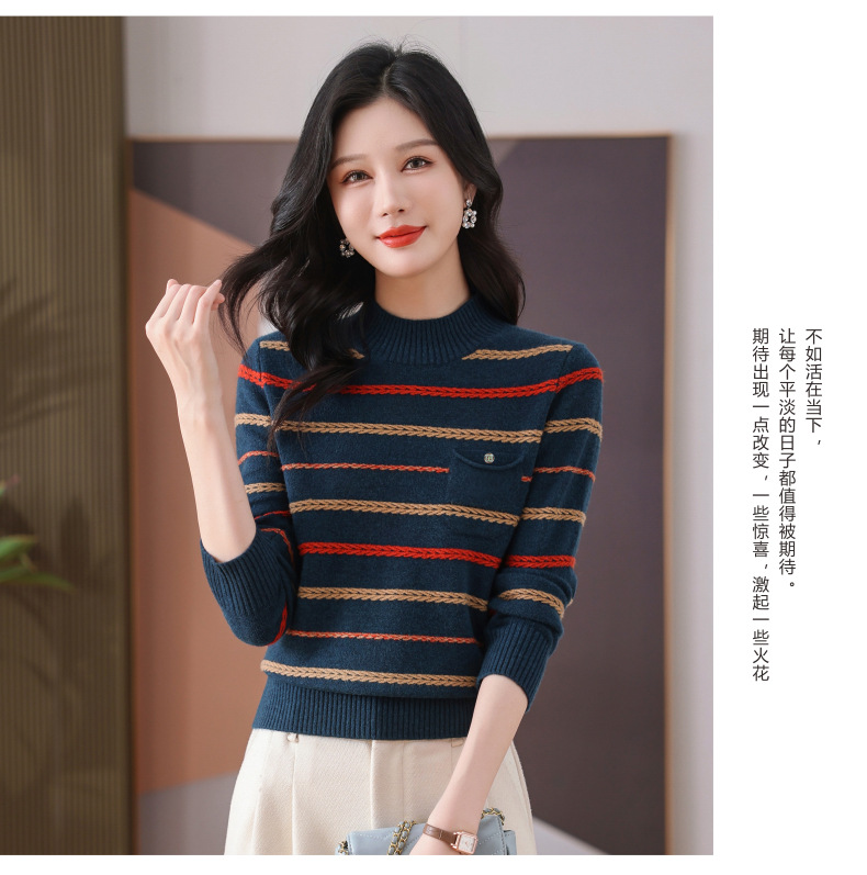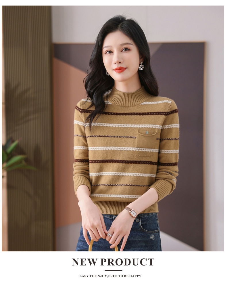 CC-101-59053半高领条纹打底女秋冬新款洋气羊毛针织内搭小上衣厚款短款毛衣女