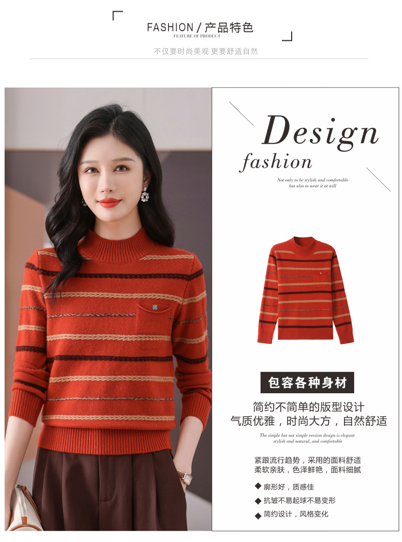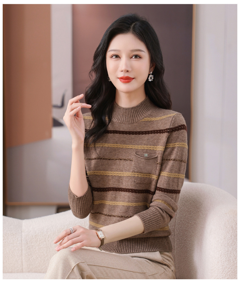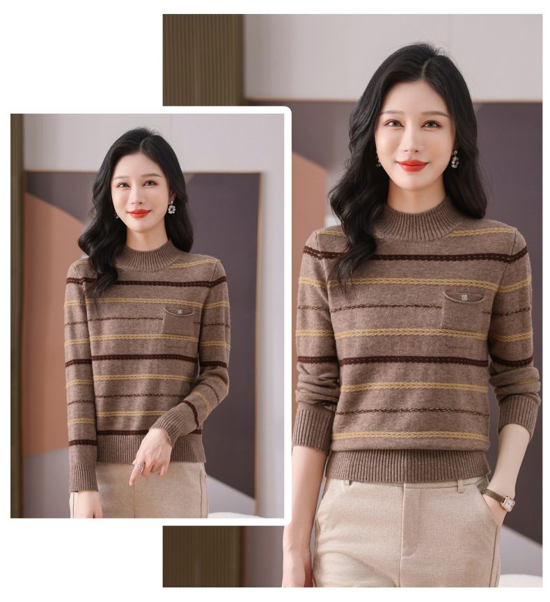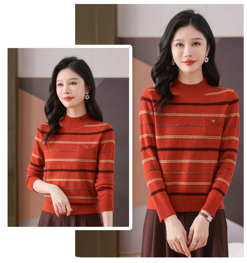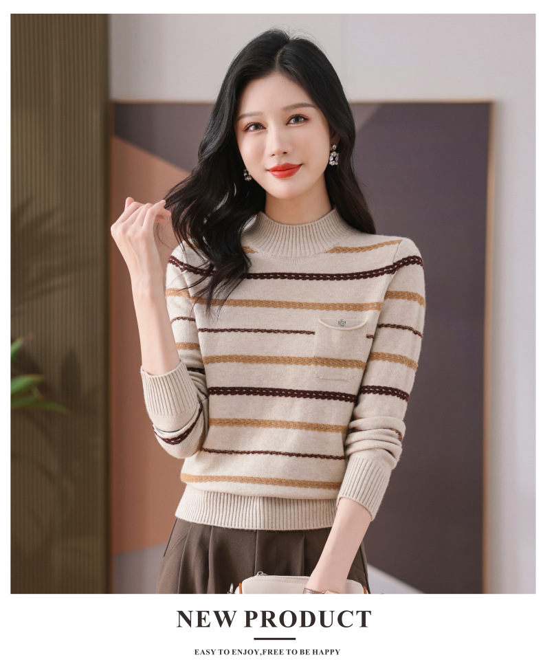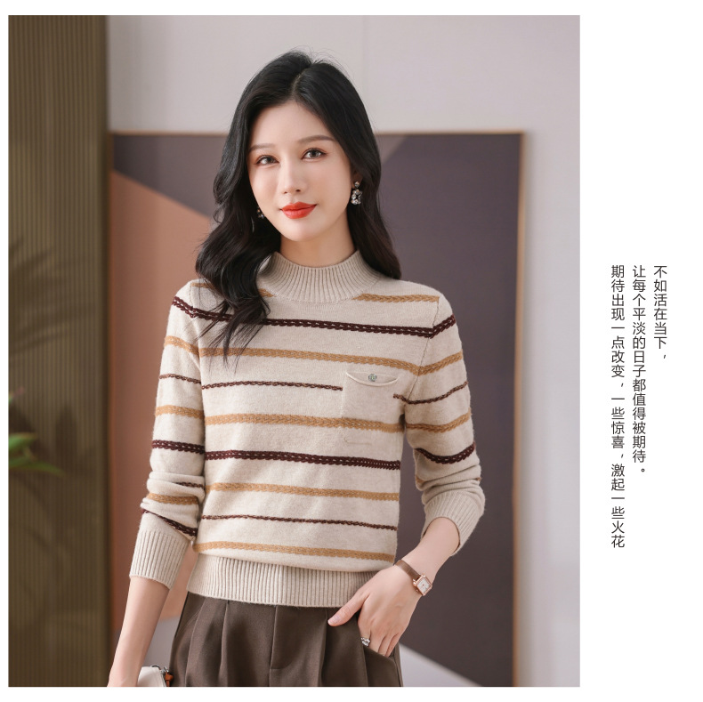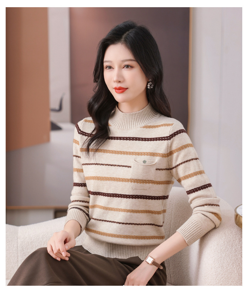 CC-101-59053半高领条纹打底女秋冬新款洋气羊毛针织内搭小上衣厚款短款毛衣女