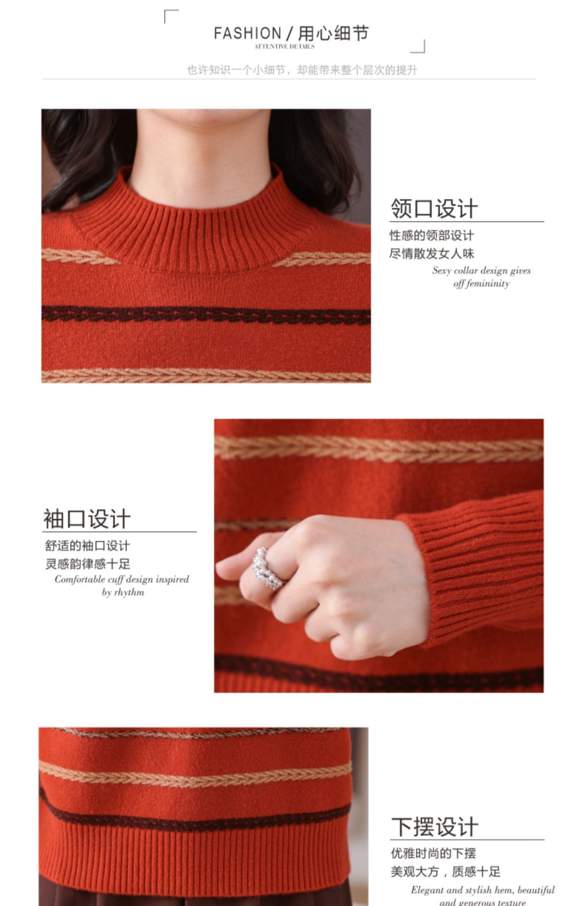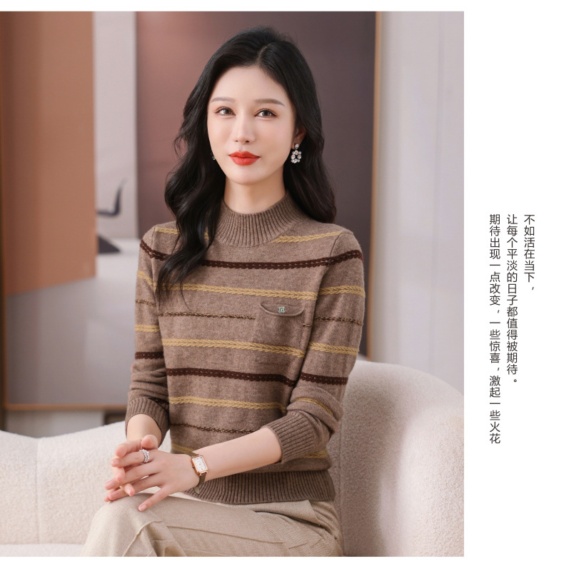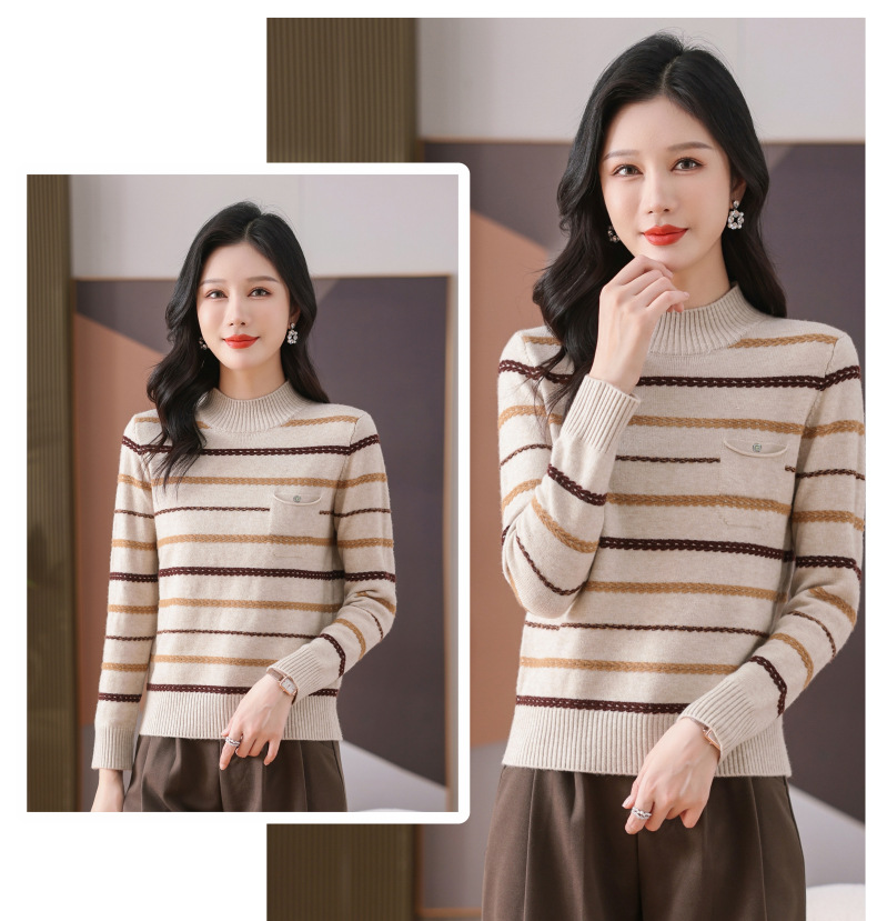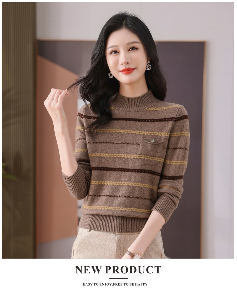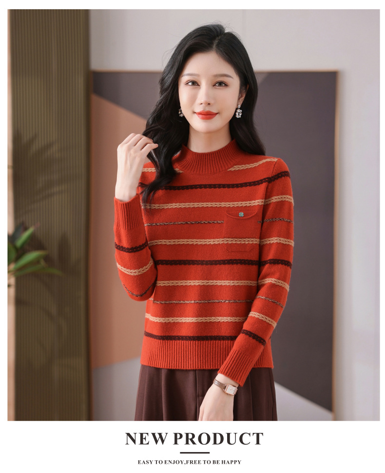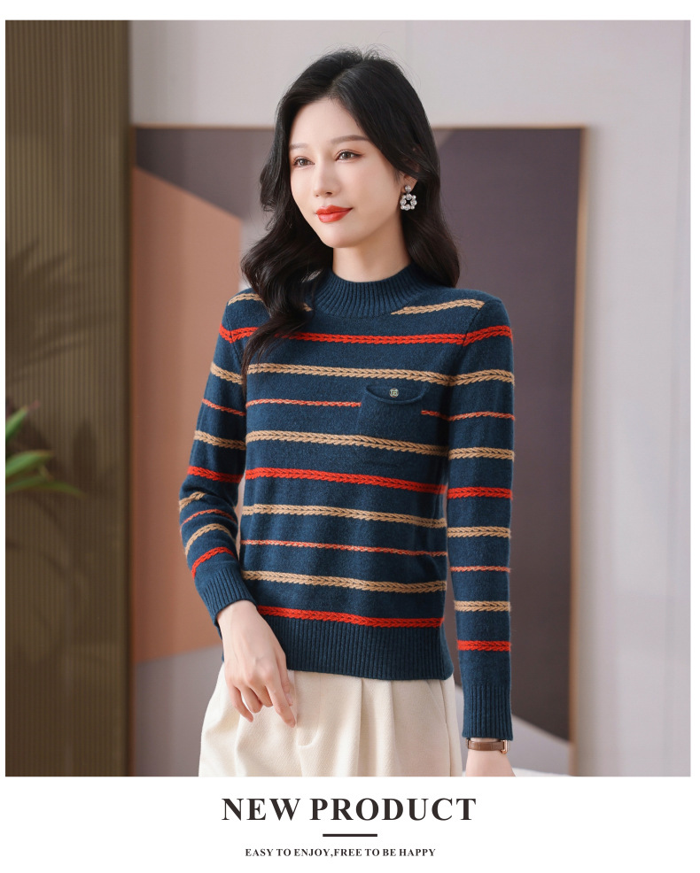 CC-101-59053半高领条纹打底女秋冬新款洋气羊毛针织内搭小上衣厚款短款毛衣女