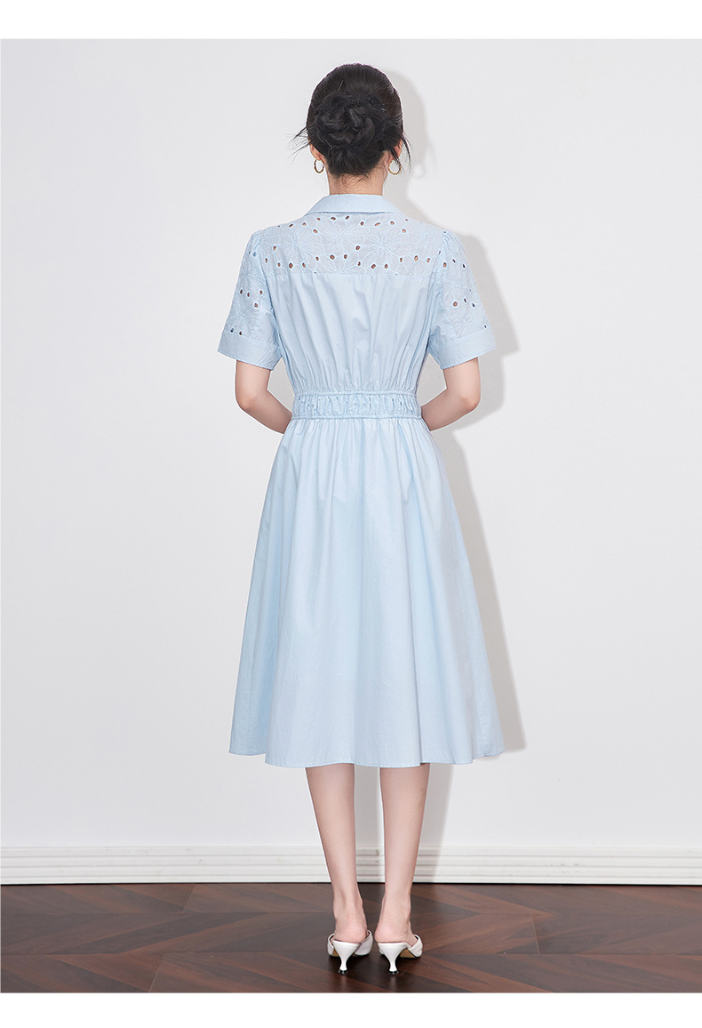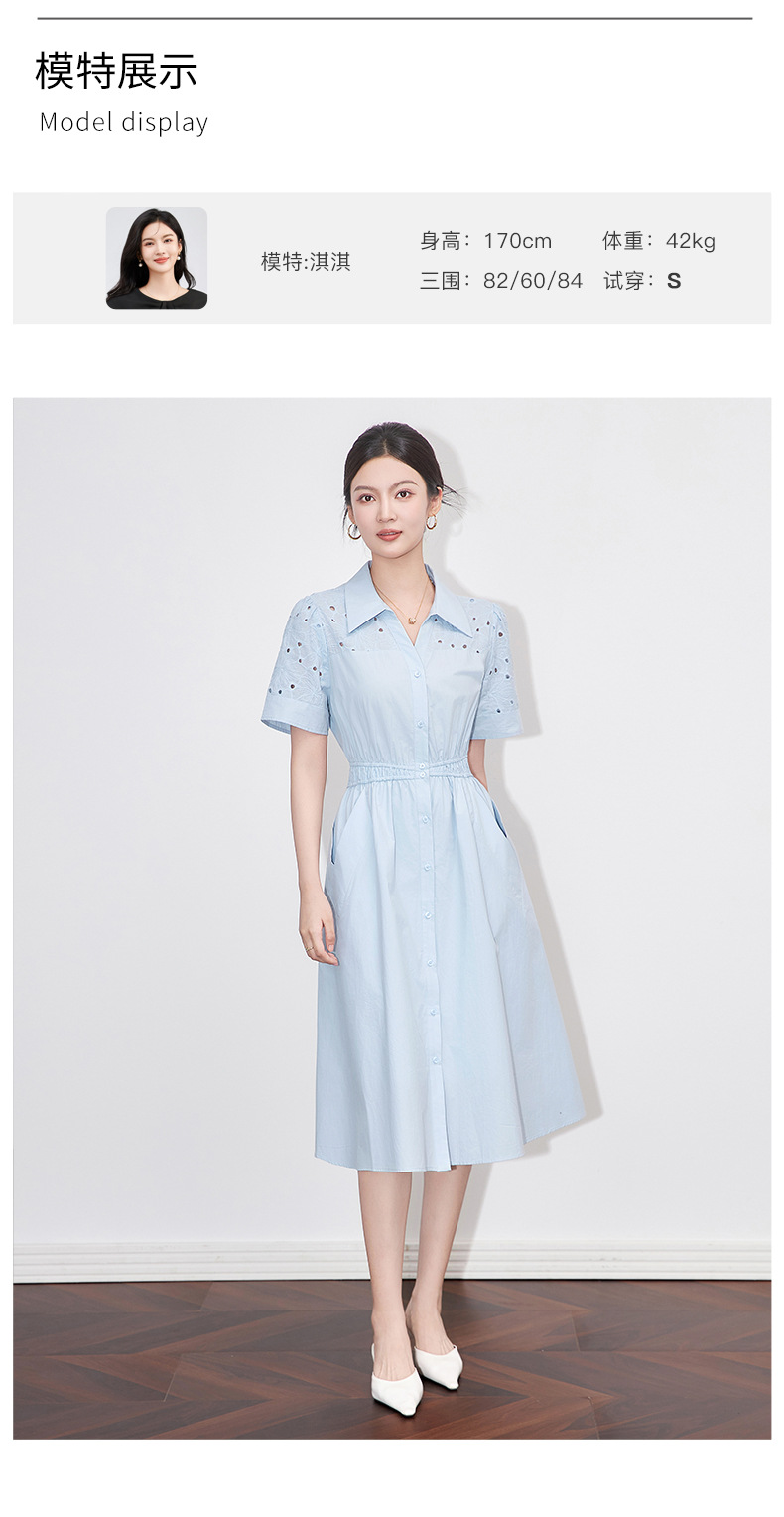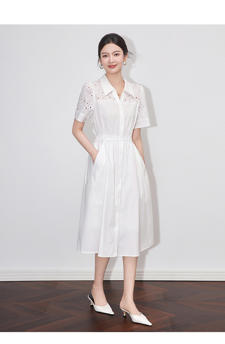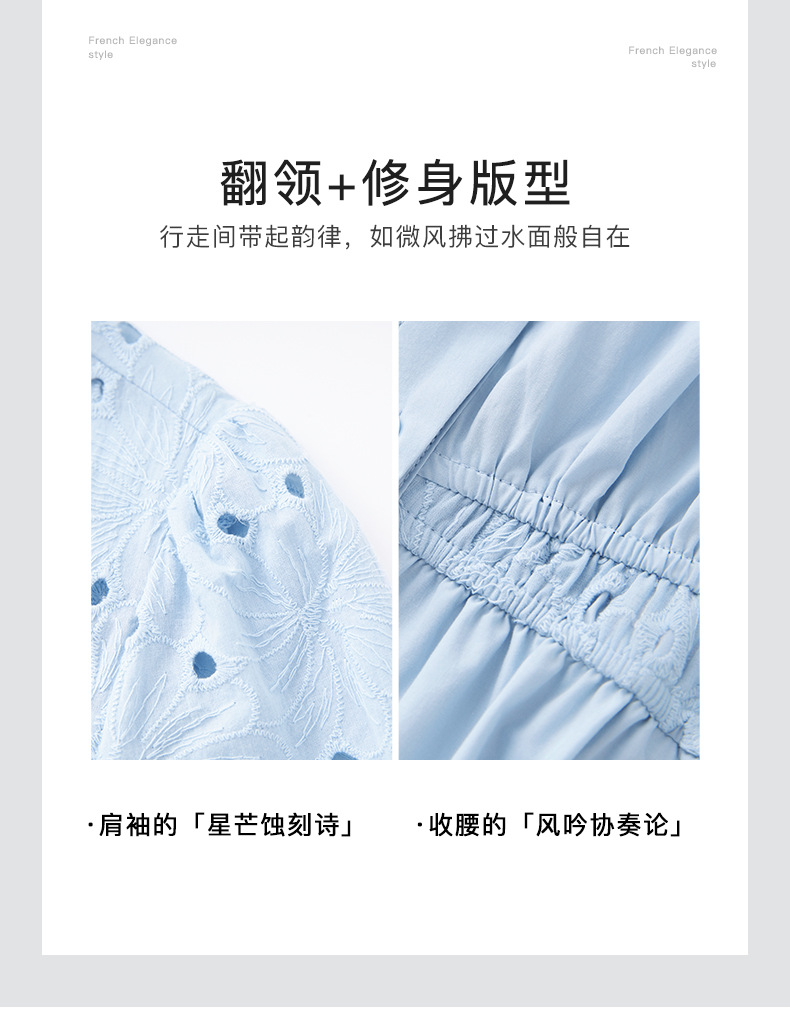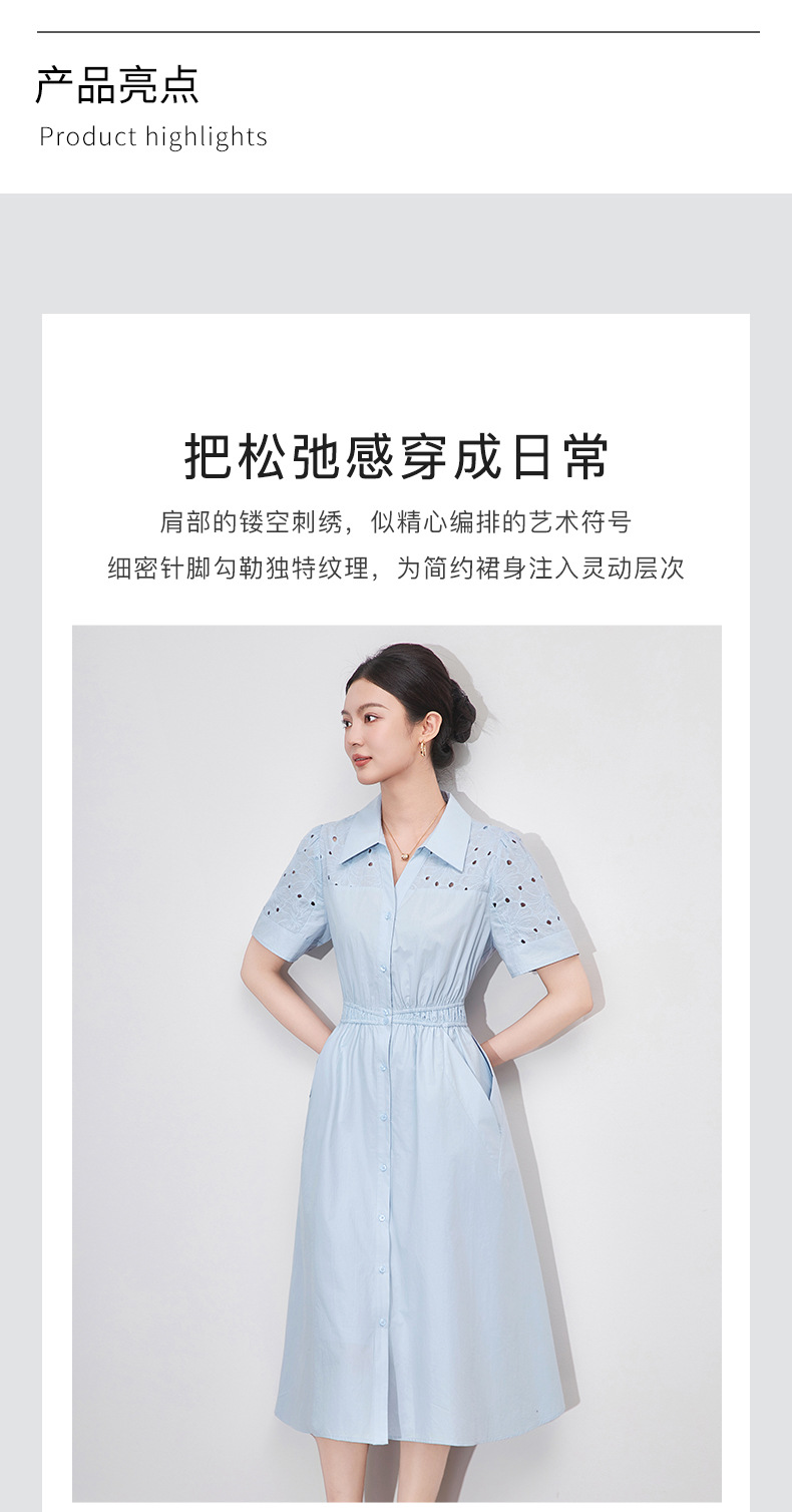 「高货wl」【铂金会员358/天猫479/差价121】(05707)洛诗琳气质翻领镂空刺绣连衣裙2025夏季简约优雅A字裙女