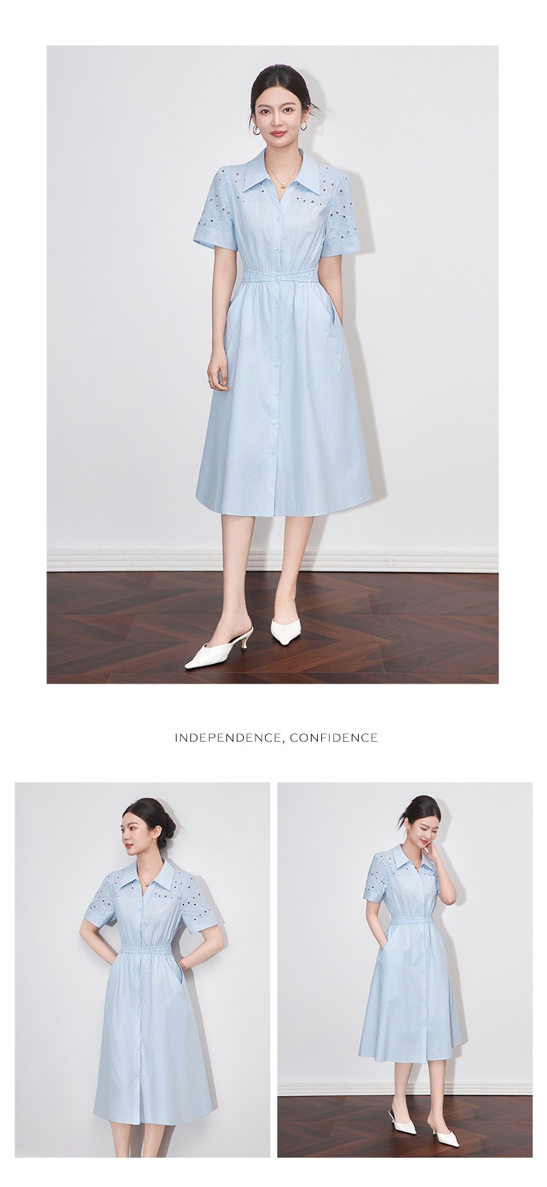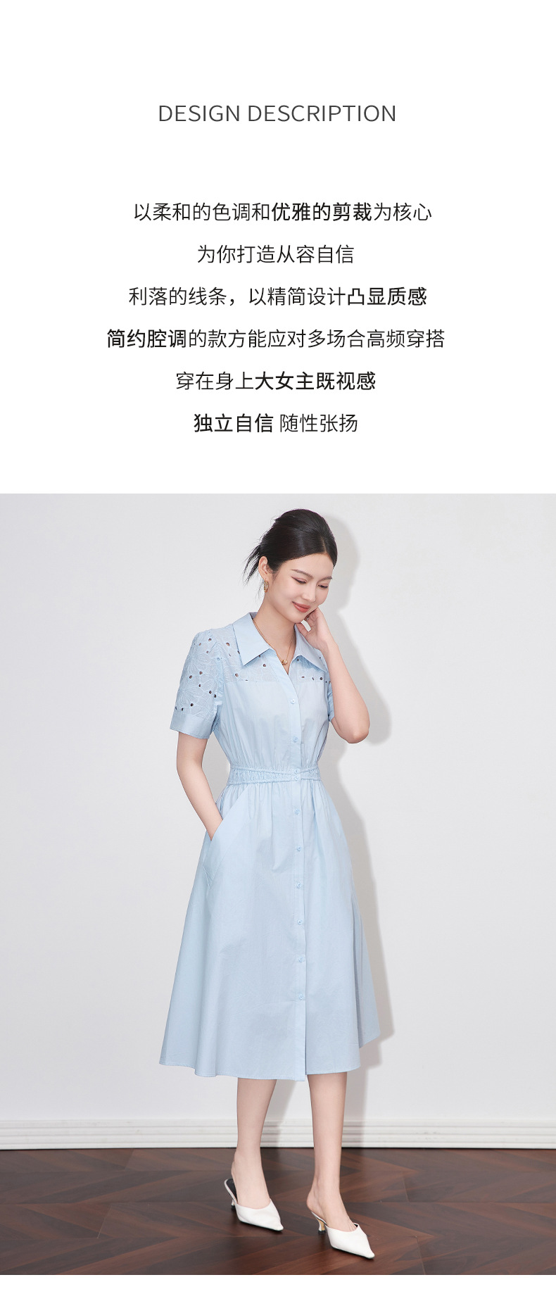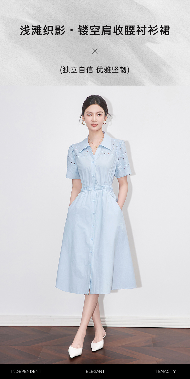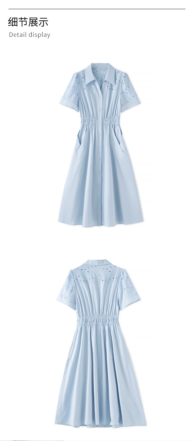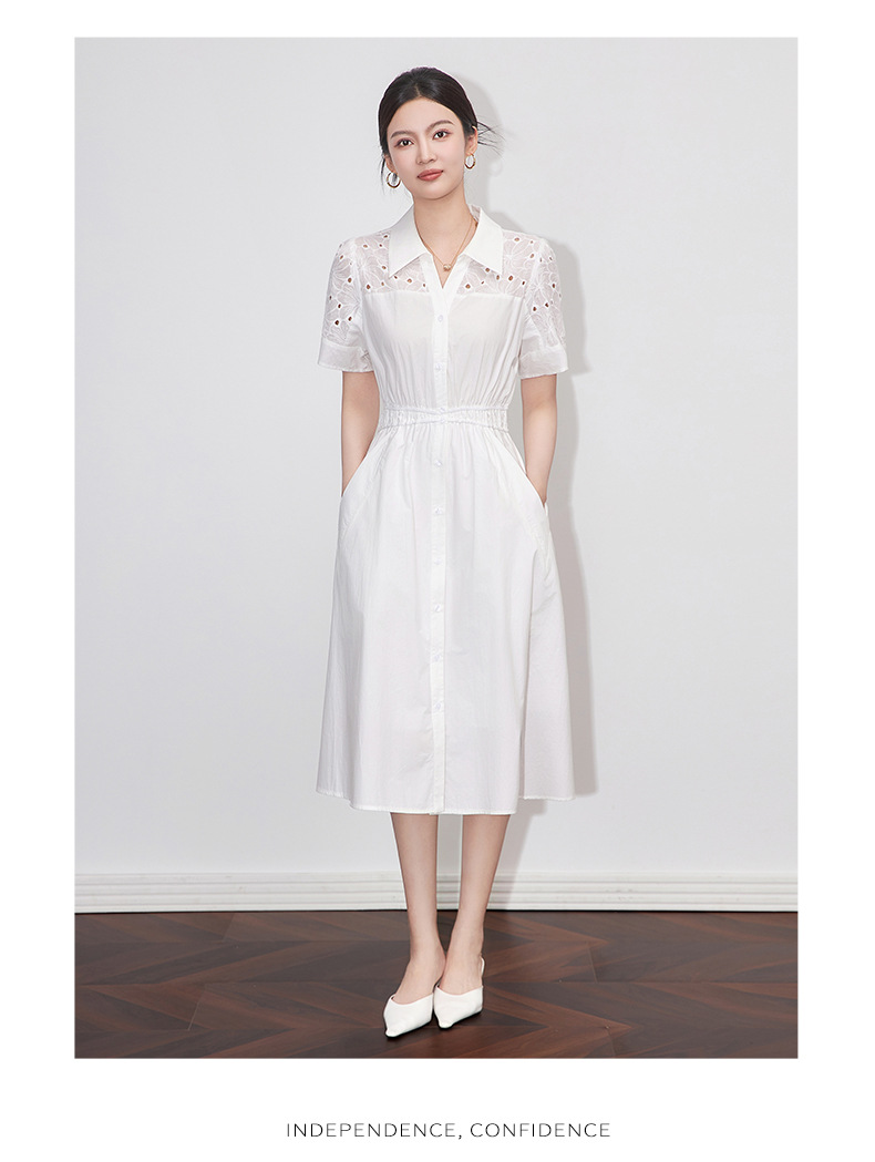 「高货wl」【铂金会员358/天猫479/差价121】(05707)洛诗琳气质翻领镂空刺绣连衣裙2025夏季简约优雅A字裙女
