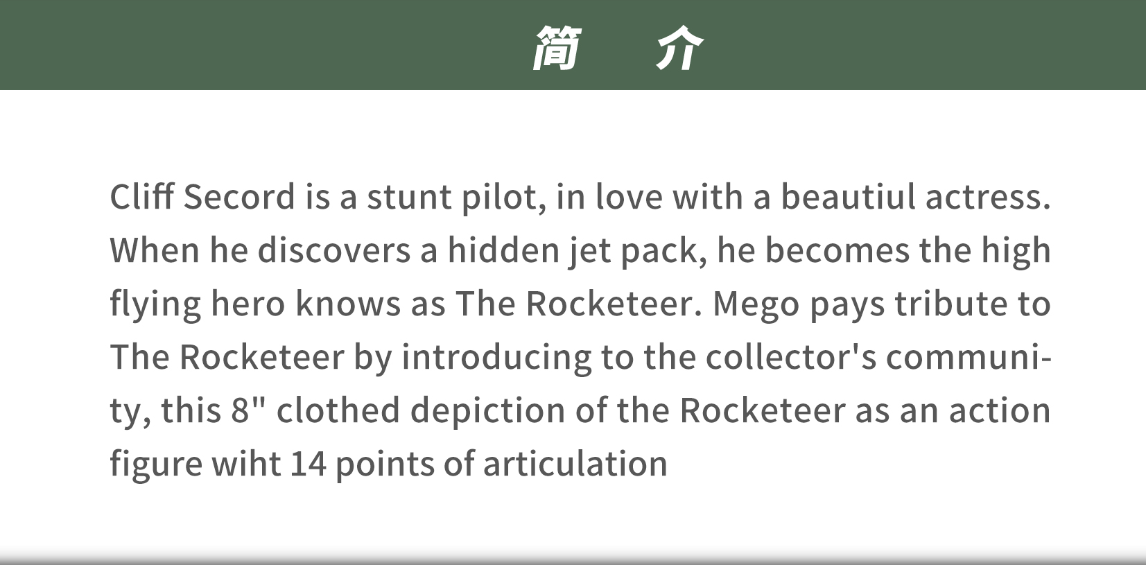现货 Mego 火箭手 Rocketeer 可动 挂卡 8英寸