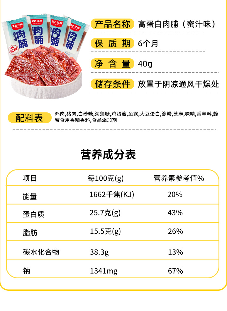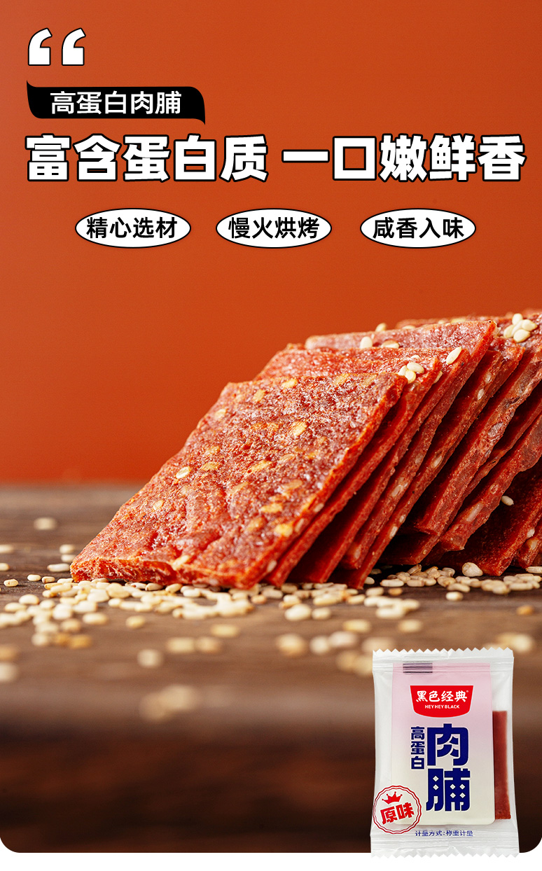 黑色经典简装高蛋白猪肉脯40g/袋 追剧解馋小零食 富含高蛋白