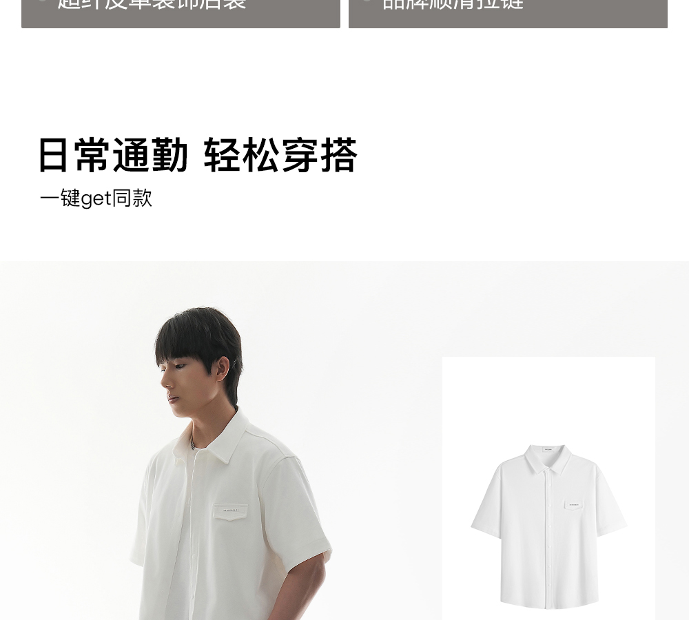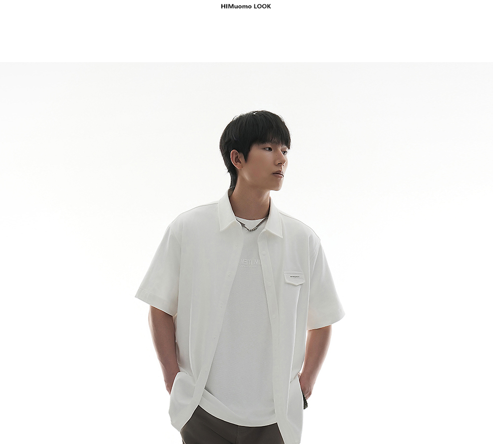 HIM漢崇 时尚休闲短袖卫衣男复古牛仔袋盖装饰翻领上衣 2026春季