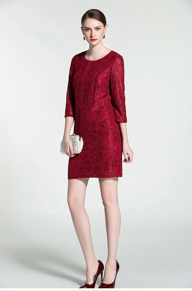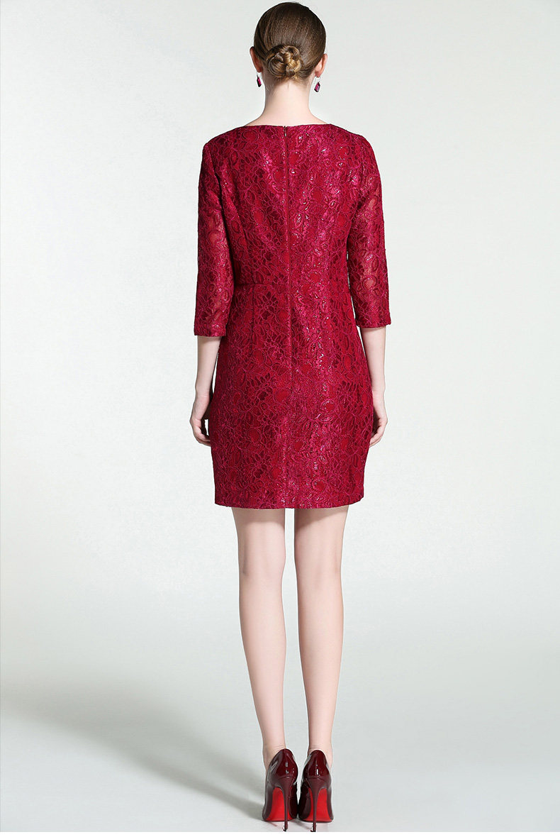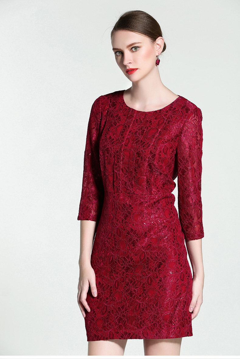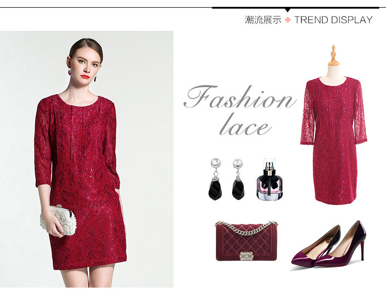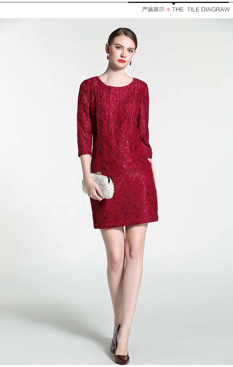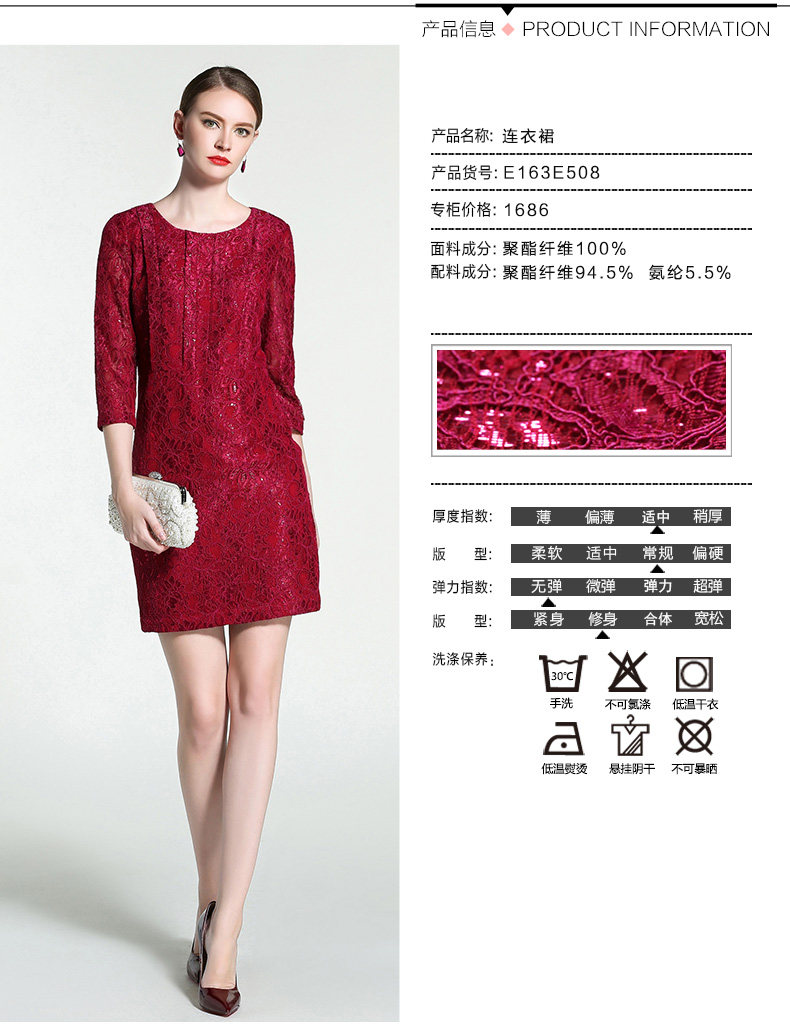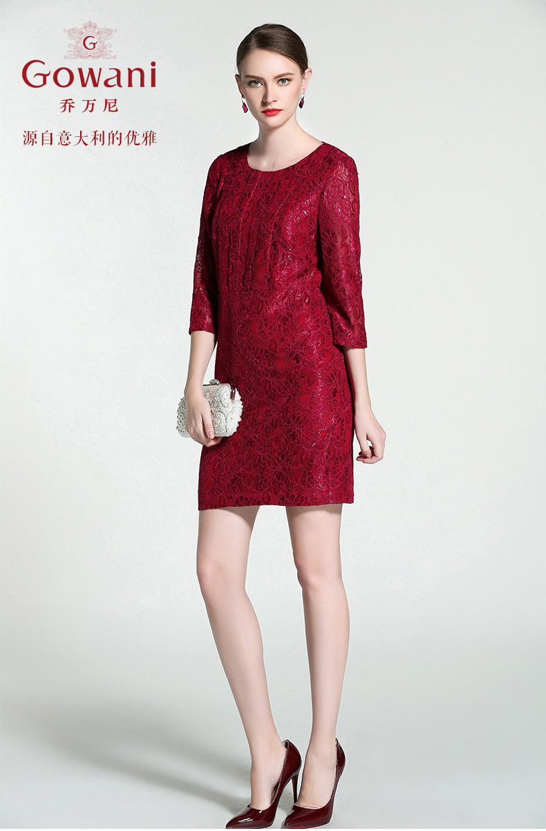 乔万尼春季彩葱蕾丝防勾丝红宴装连衣裙EB3E316