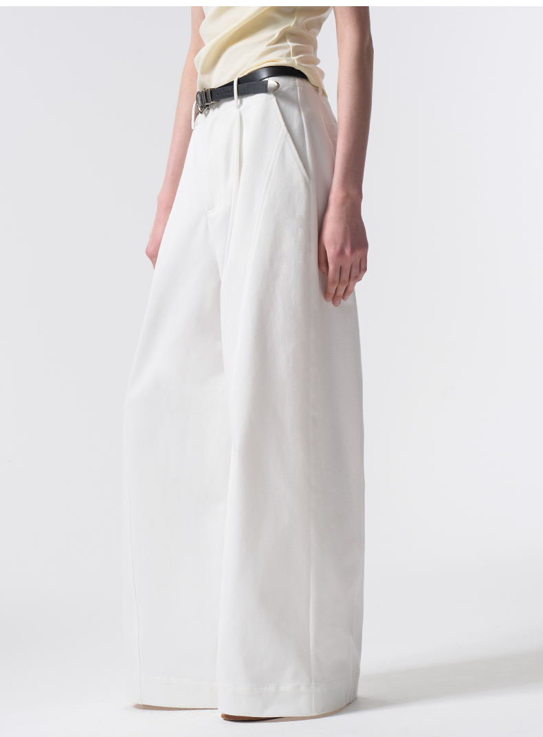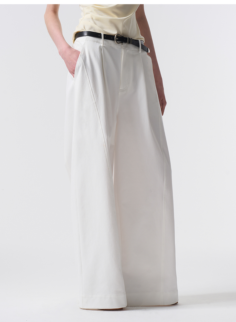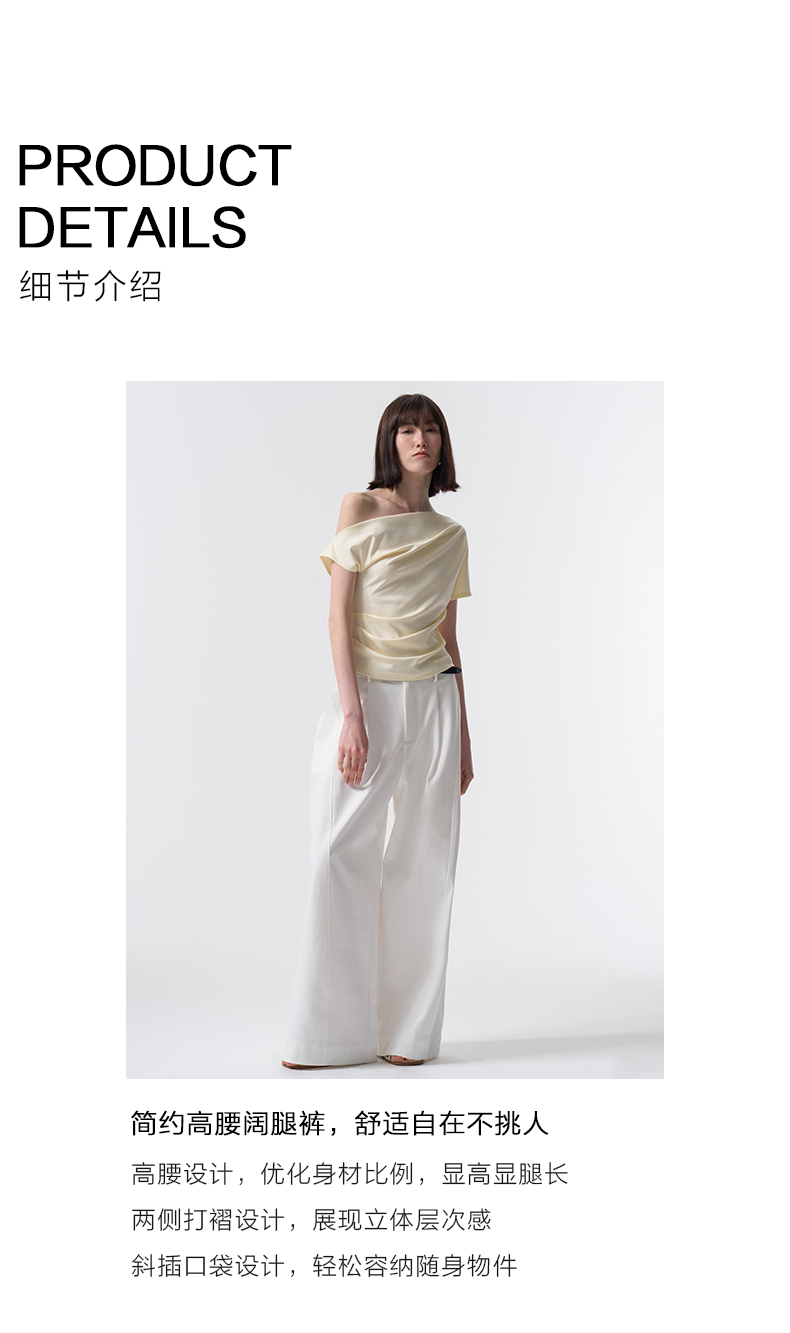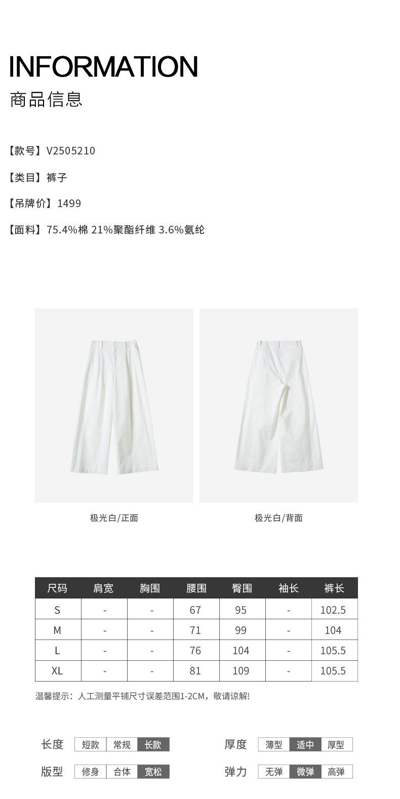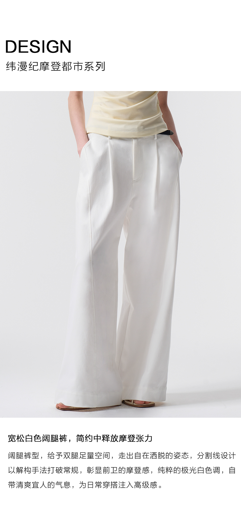 VIMAGE纬漫纪白色百搭阔腿遮肉高腰休闲裤长裤女2026春季新款V2505210