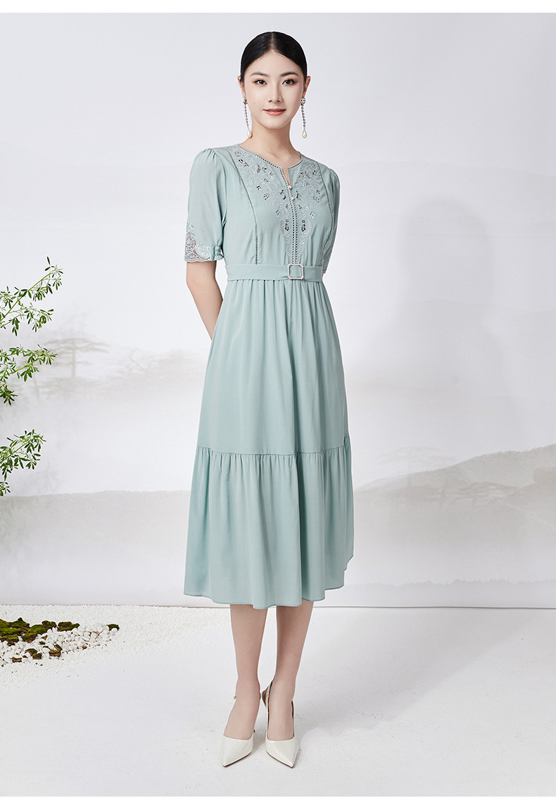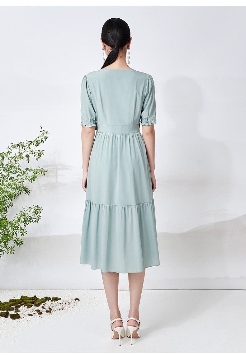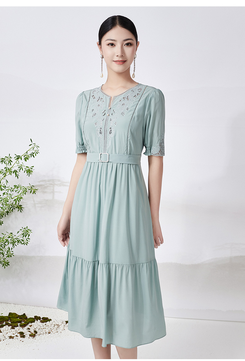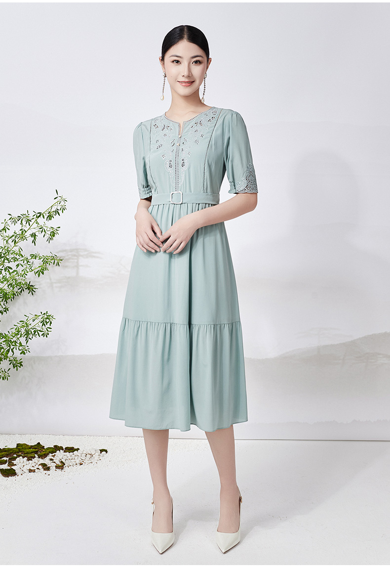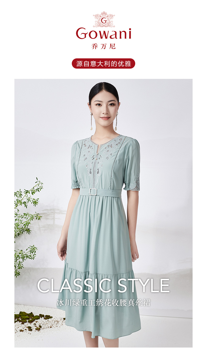 乔万尼真丝连衣裙法式收腰重工绣花ET2E285