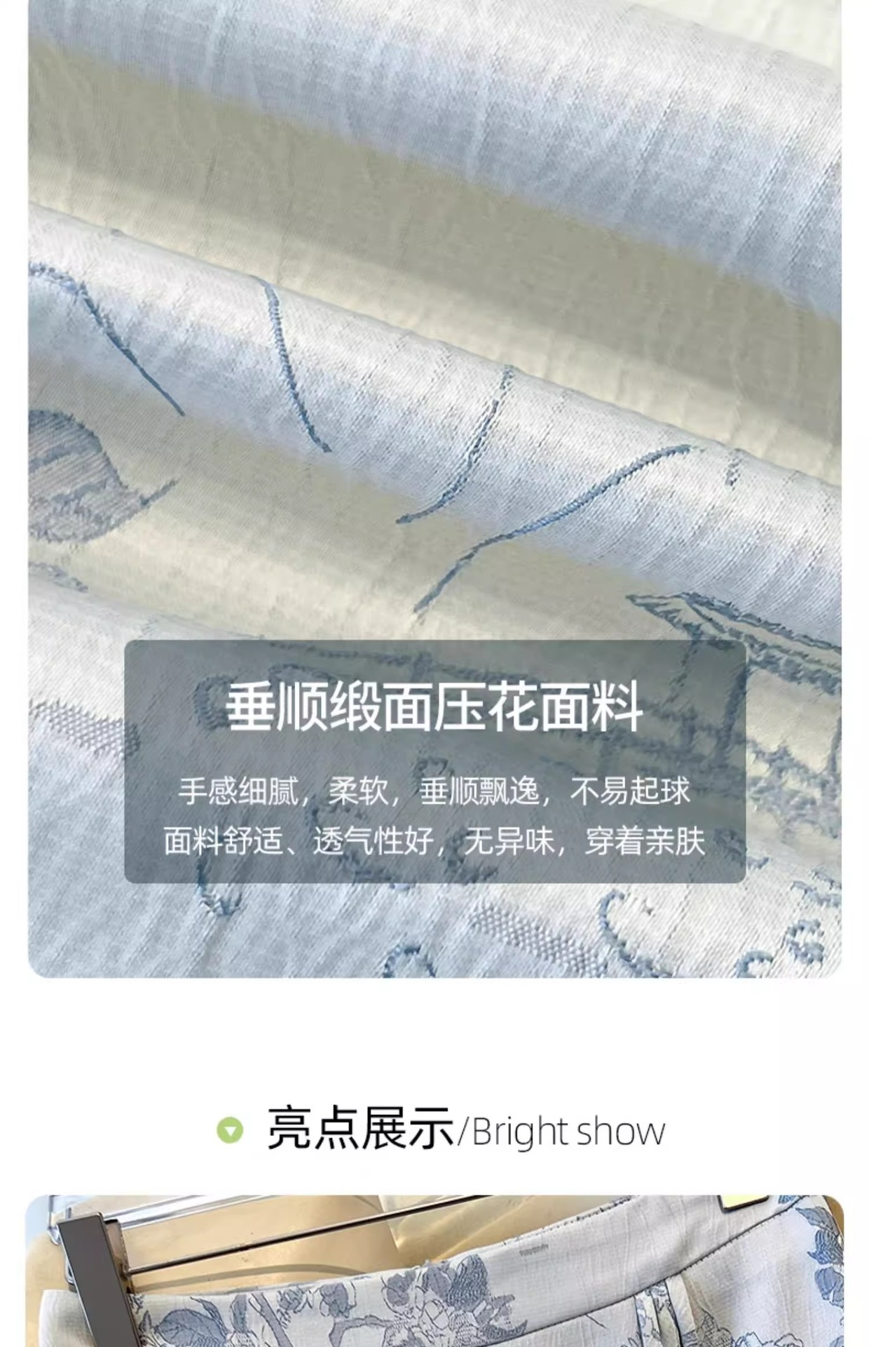 面料:垂顺缎面压花面料