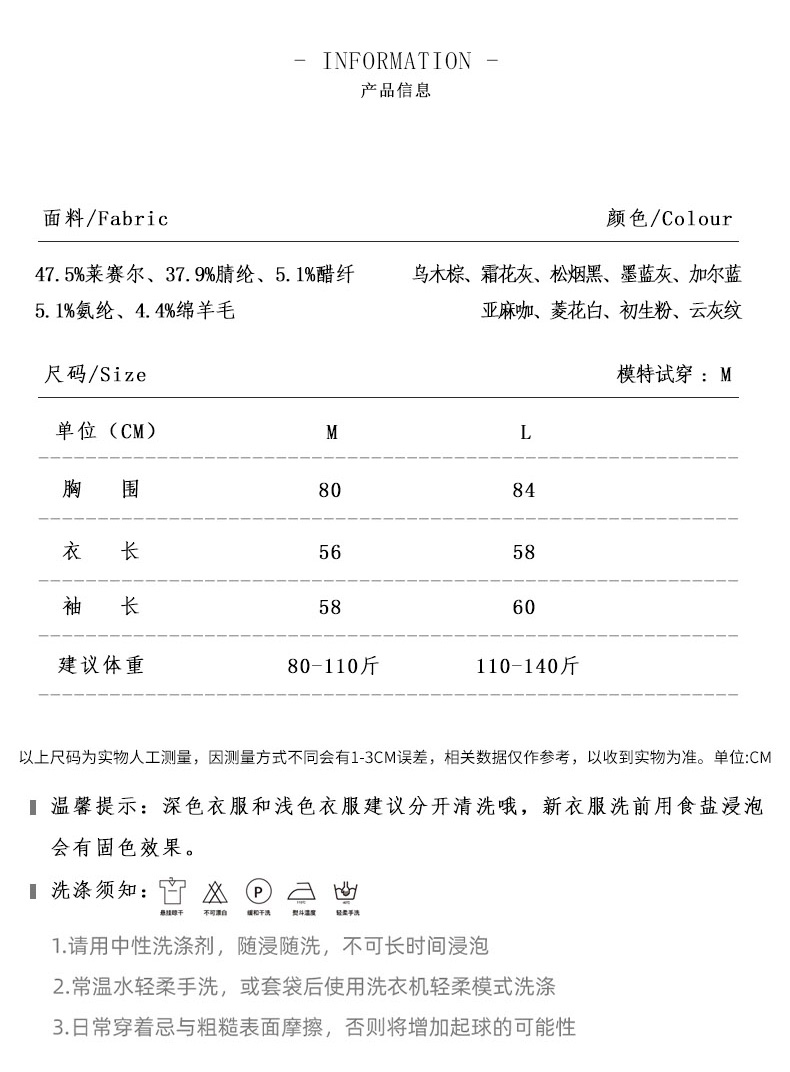 【软糯纸片人】baozro天丝羊毛秋季打底衫WJ-9936