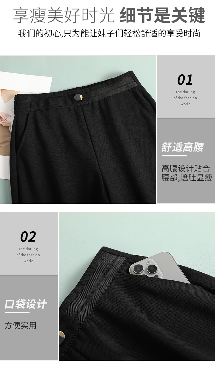 QYM 2582-Y窄版直筒阔腿裤高腰休闲裤 商品图3