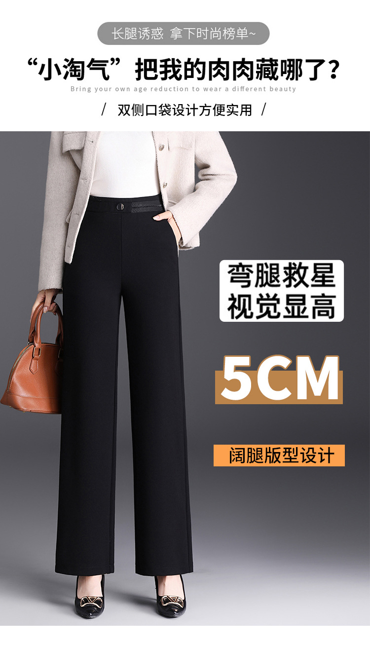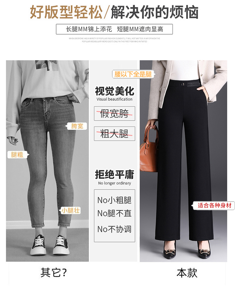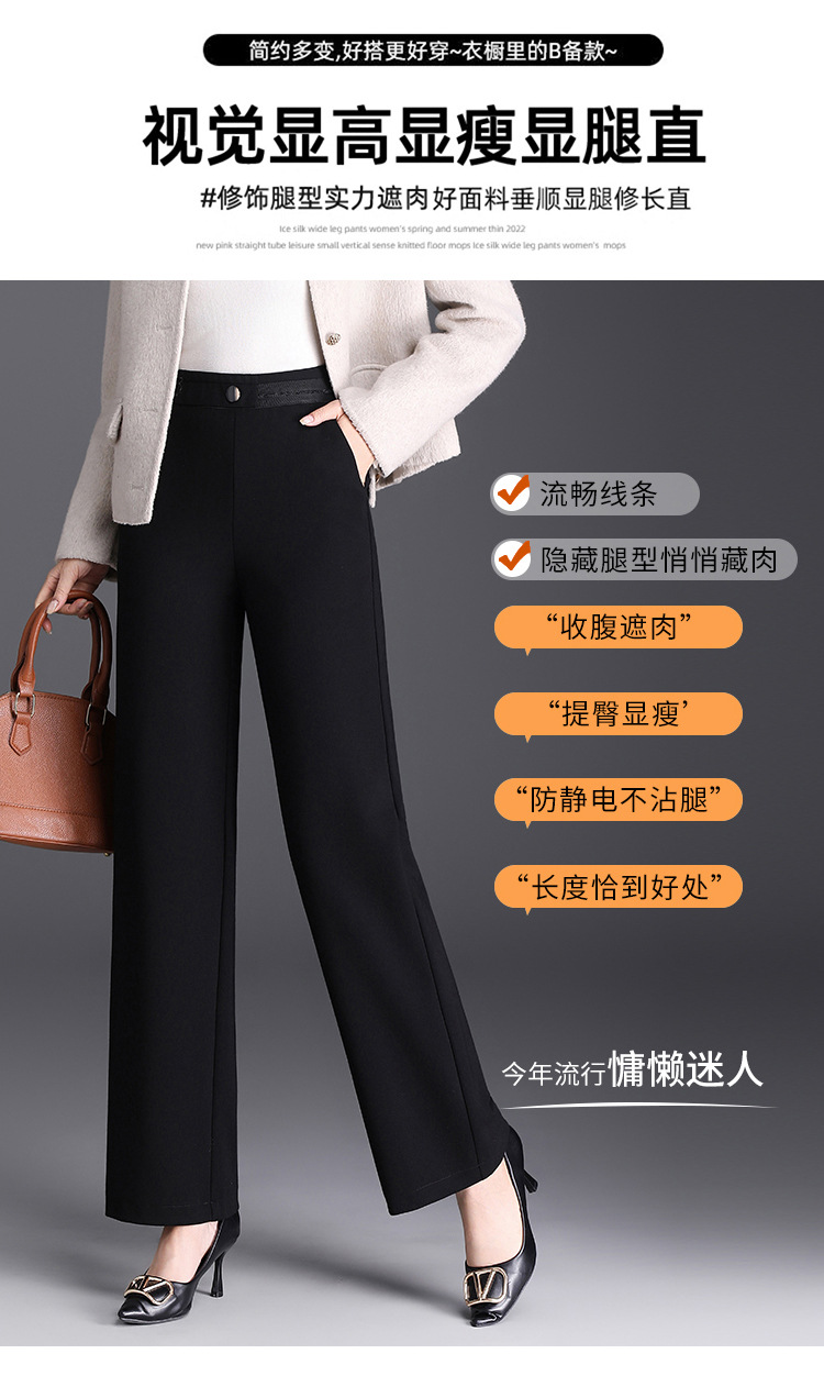 QYM 2582-Y窄版直筒阔腿裤高腰休闲裤 商品图1