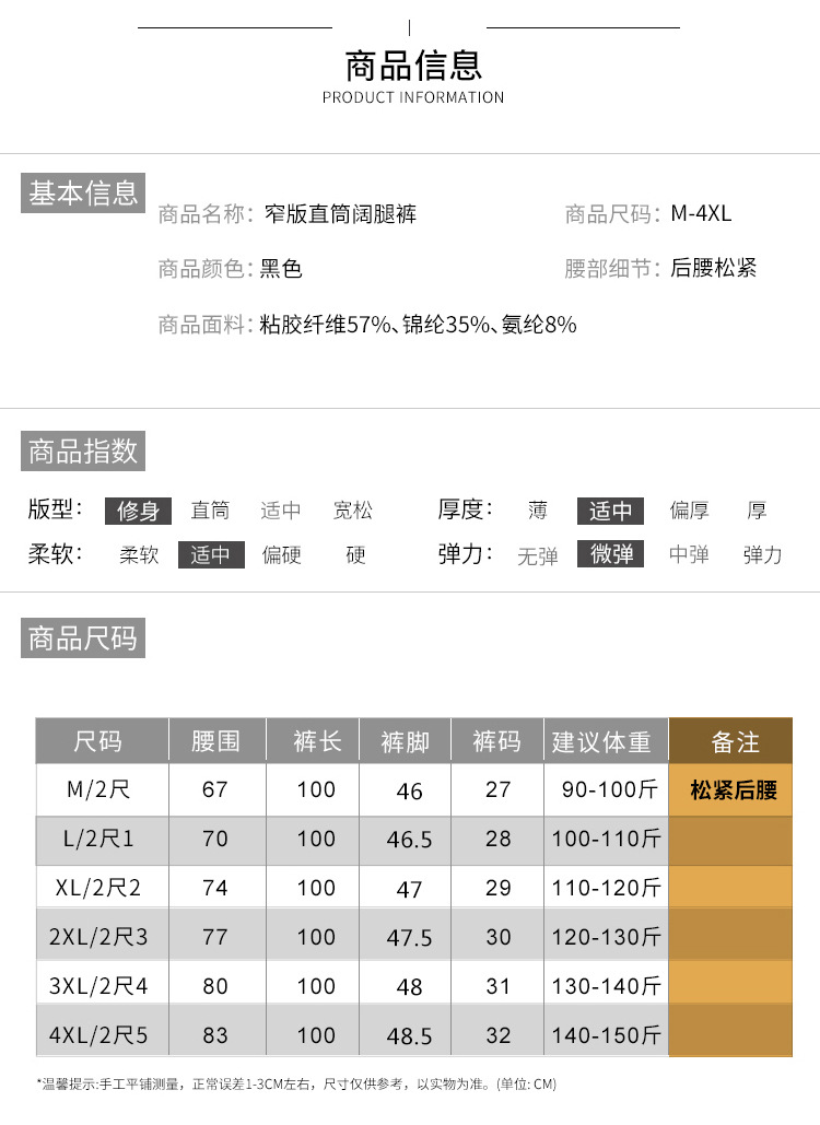 QYM 2582-Y窄版直筒阔腿裤高腰休闲裤 商品图4