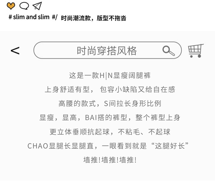 QYM 2582-Y窄版直筒阔腿裤高腰休闲裤 商品图2