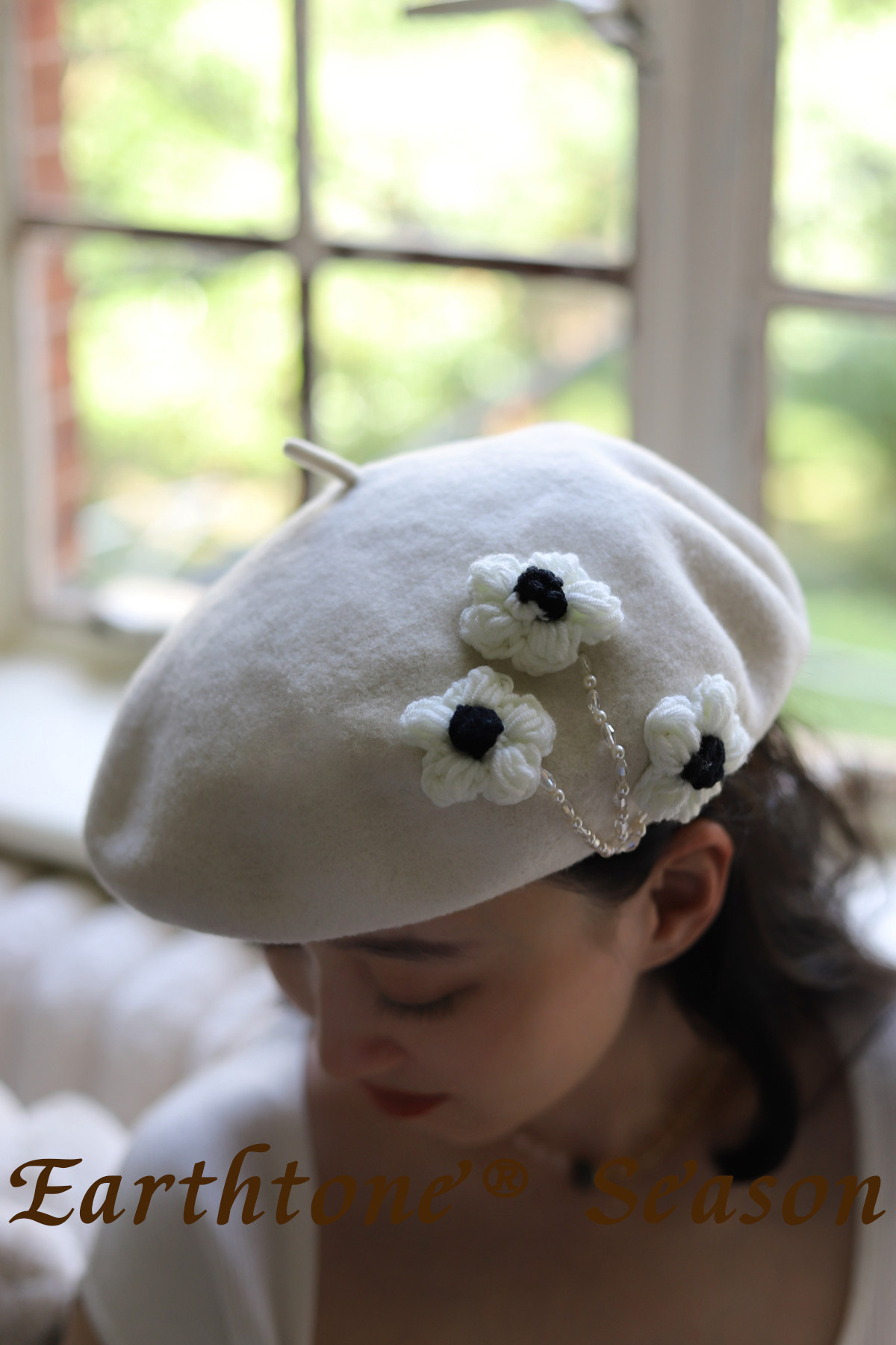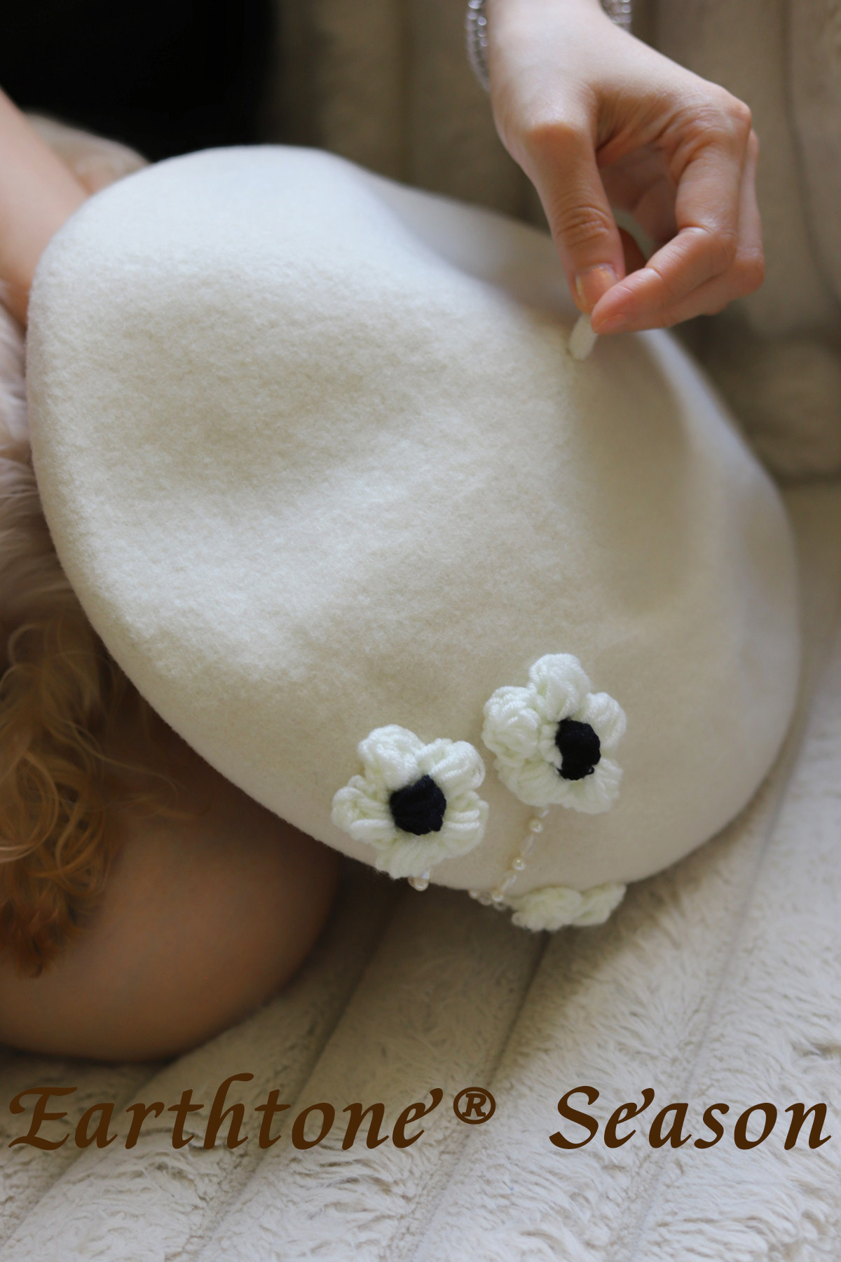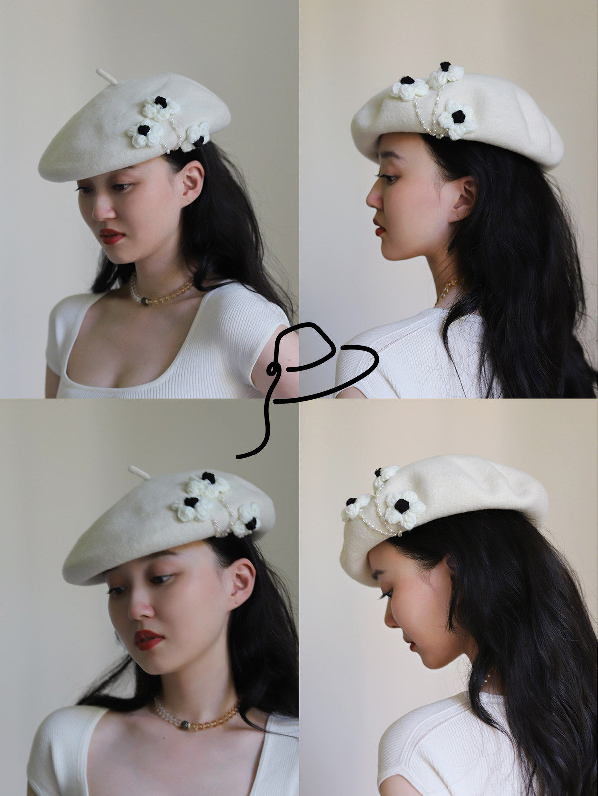 新款韩版花朵羊毛帽保暖贝雷帽显脸小女帽子毛呢画家帽